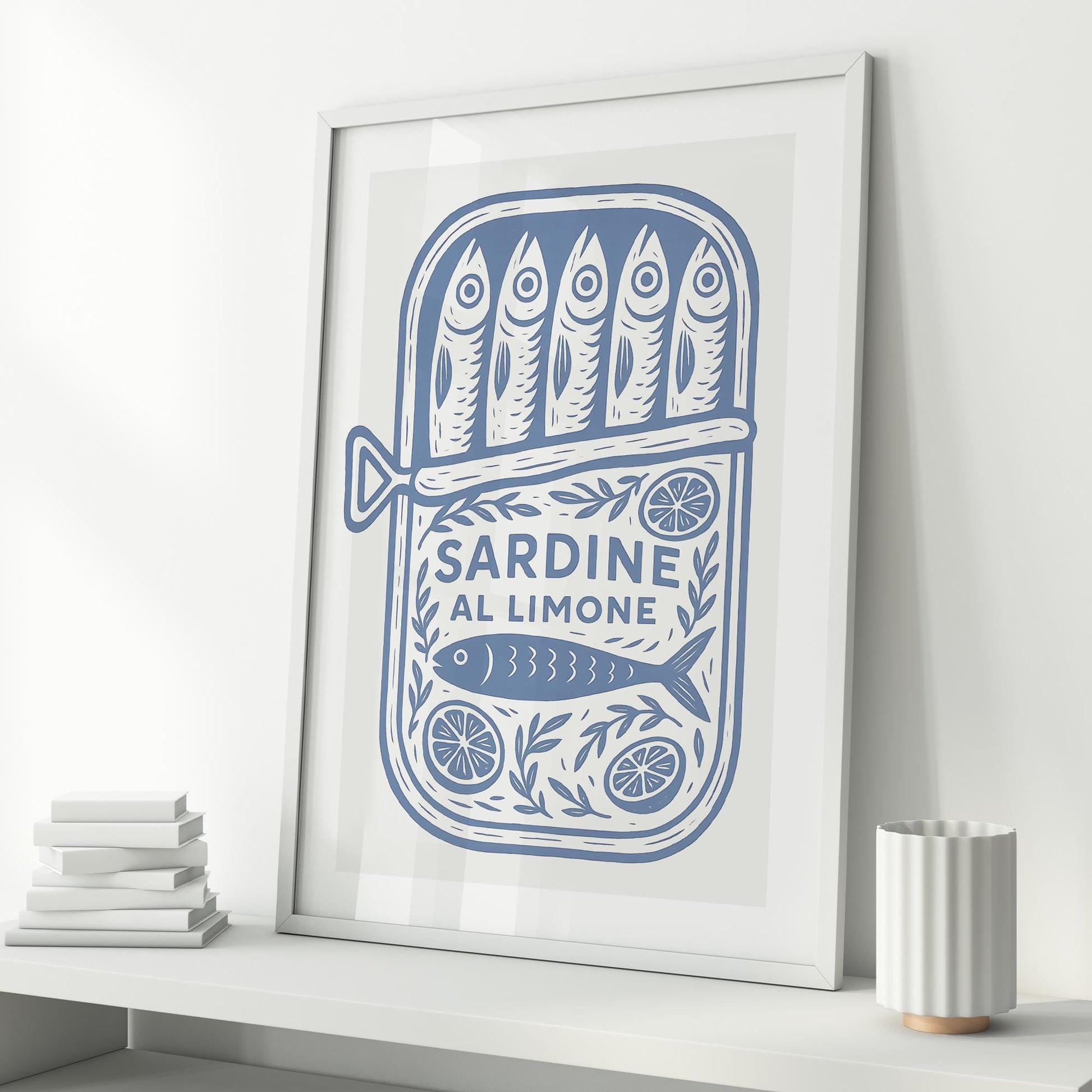 Add a splash of coastal charm to your home with this striking blue “Sardine al Limone poster. Designed in a bold illustrative style, it features a vintage-style sardine tin bursting with fish, lemon slices, and leafy details. Perfect for food lovers, kitchen walls, or fans of quirky Mediterranean décor.