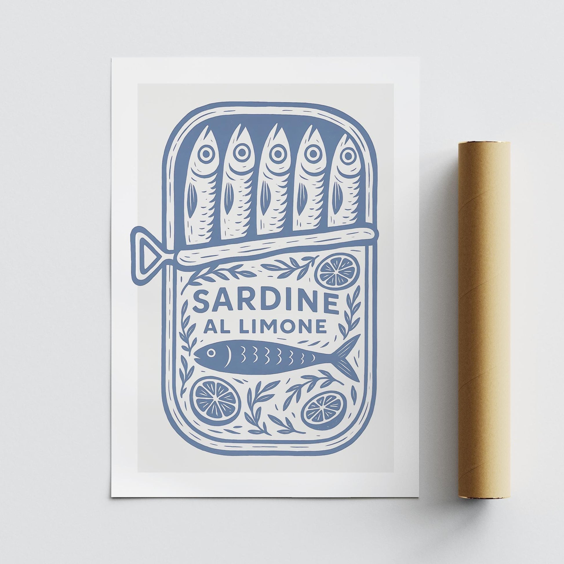 Sardine Tin - Classic Print: Sardine al Limone Poster Blue Vintage Illustration Kitchen Wall Art Retro Mediterranean Aesthetic