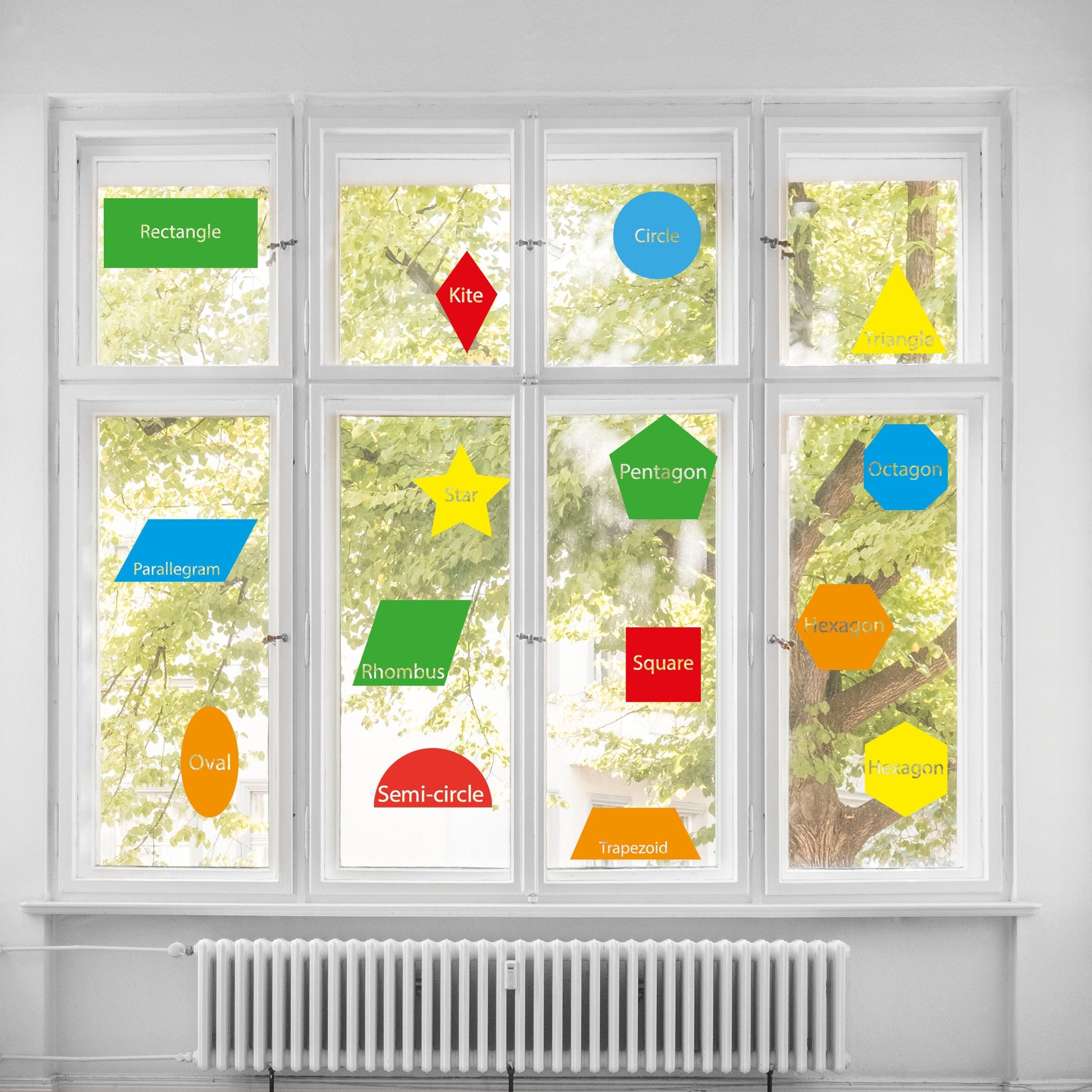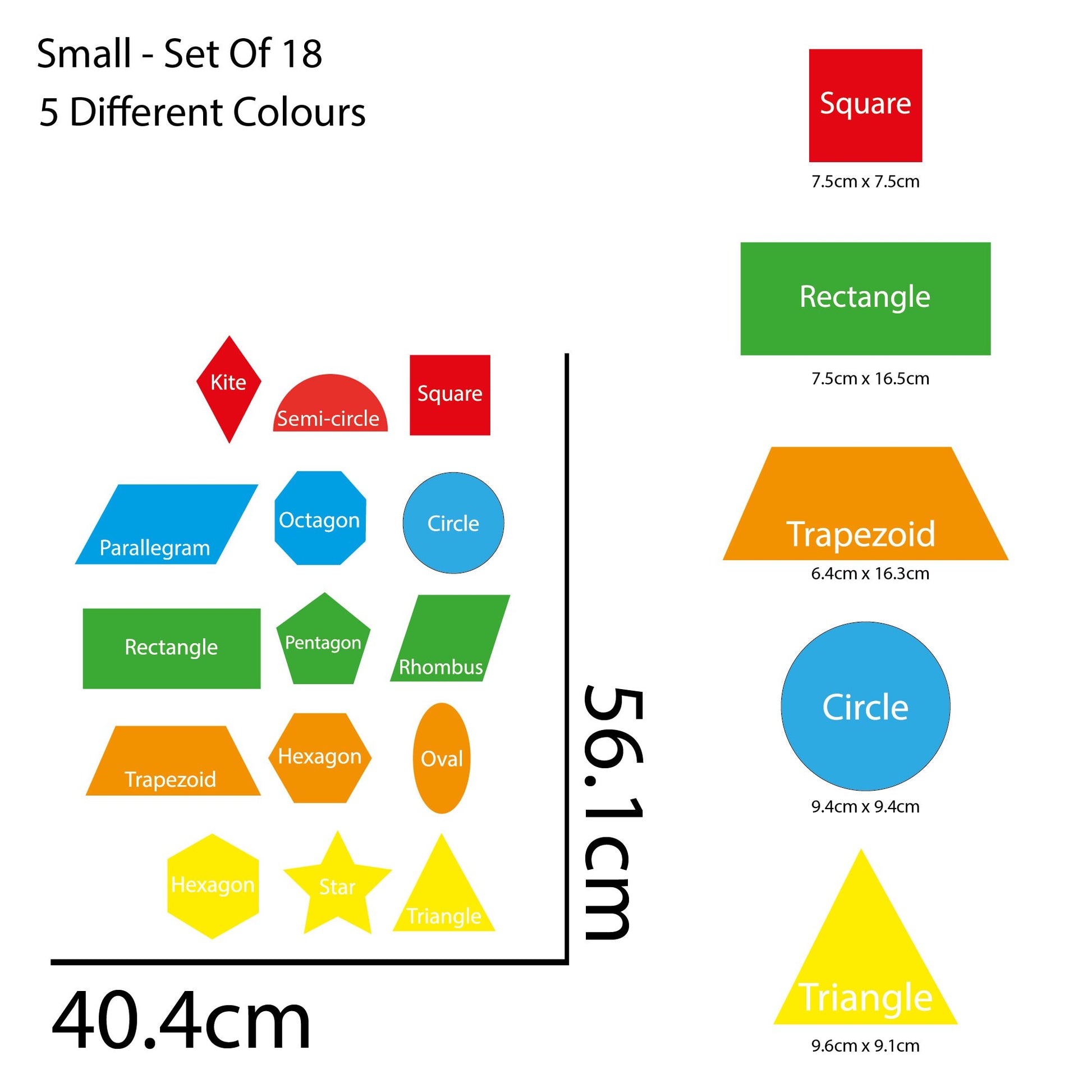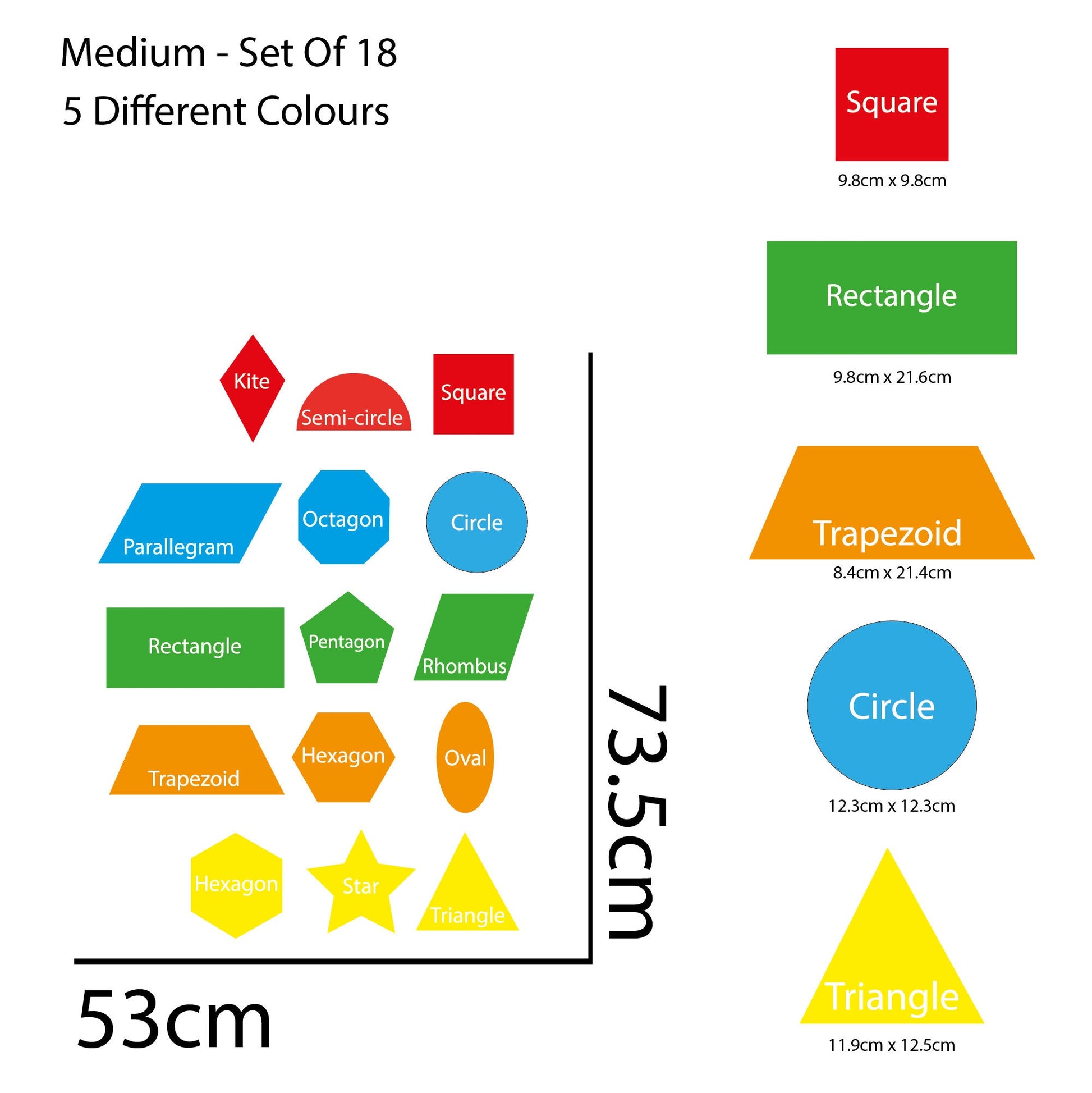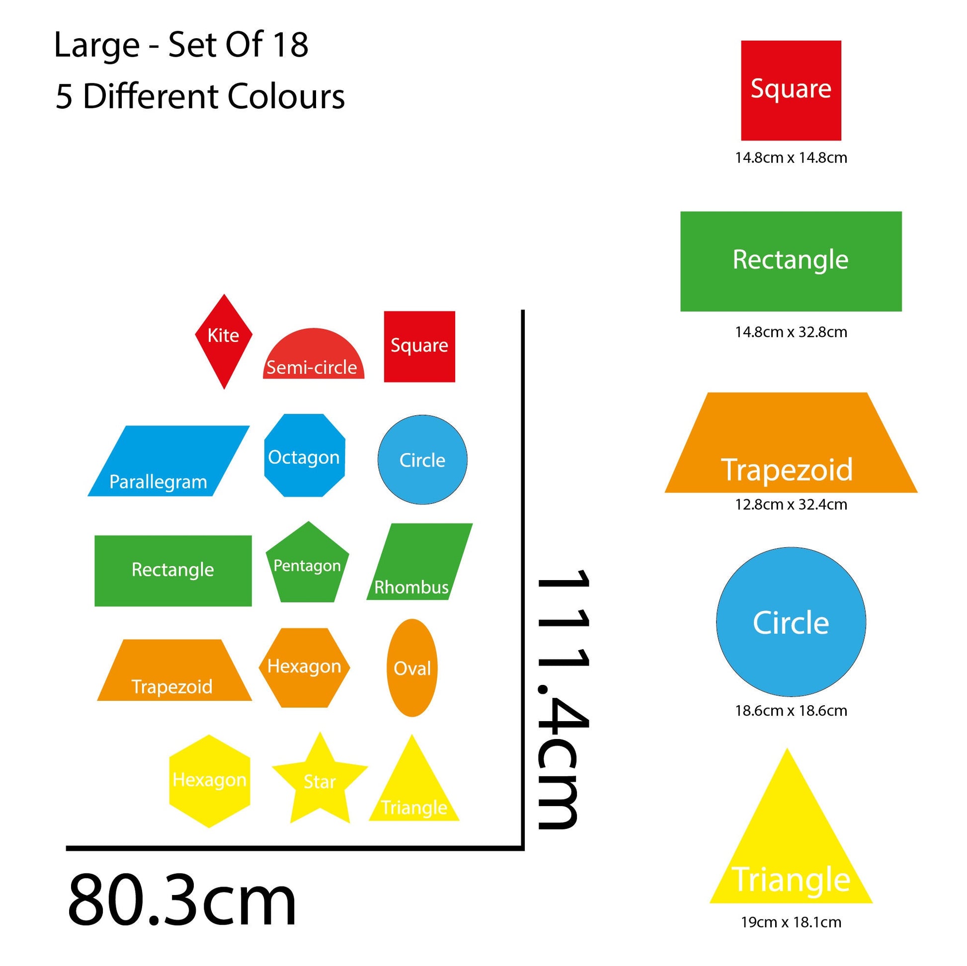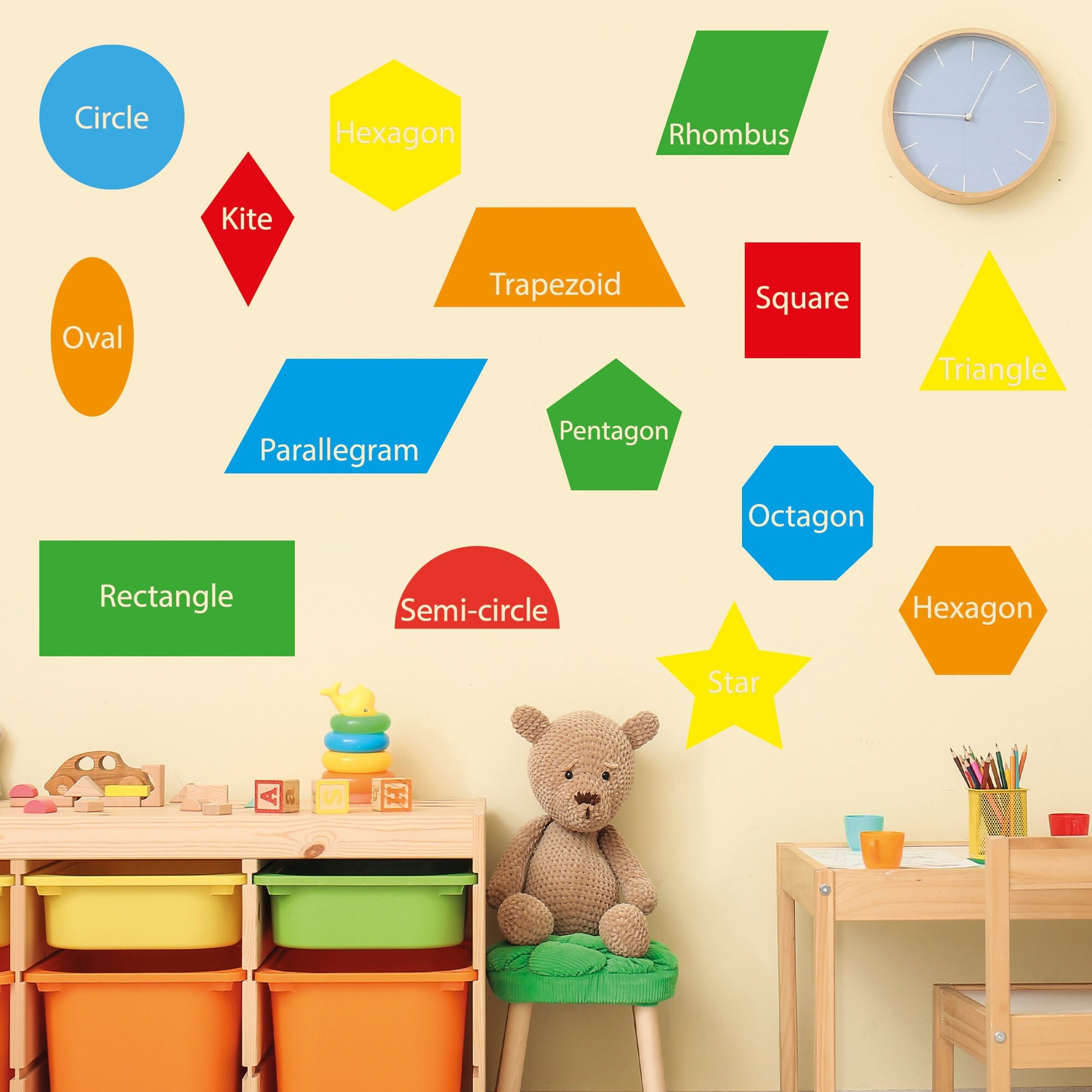 Set of 18 Shape Name School Stickers - Educational Stickers for Kids - 3 Sizes Available - Classroom, Bedroom, Playroom Decor