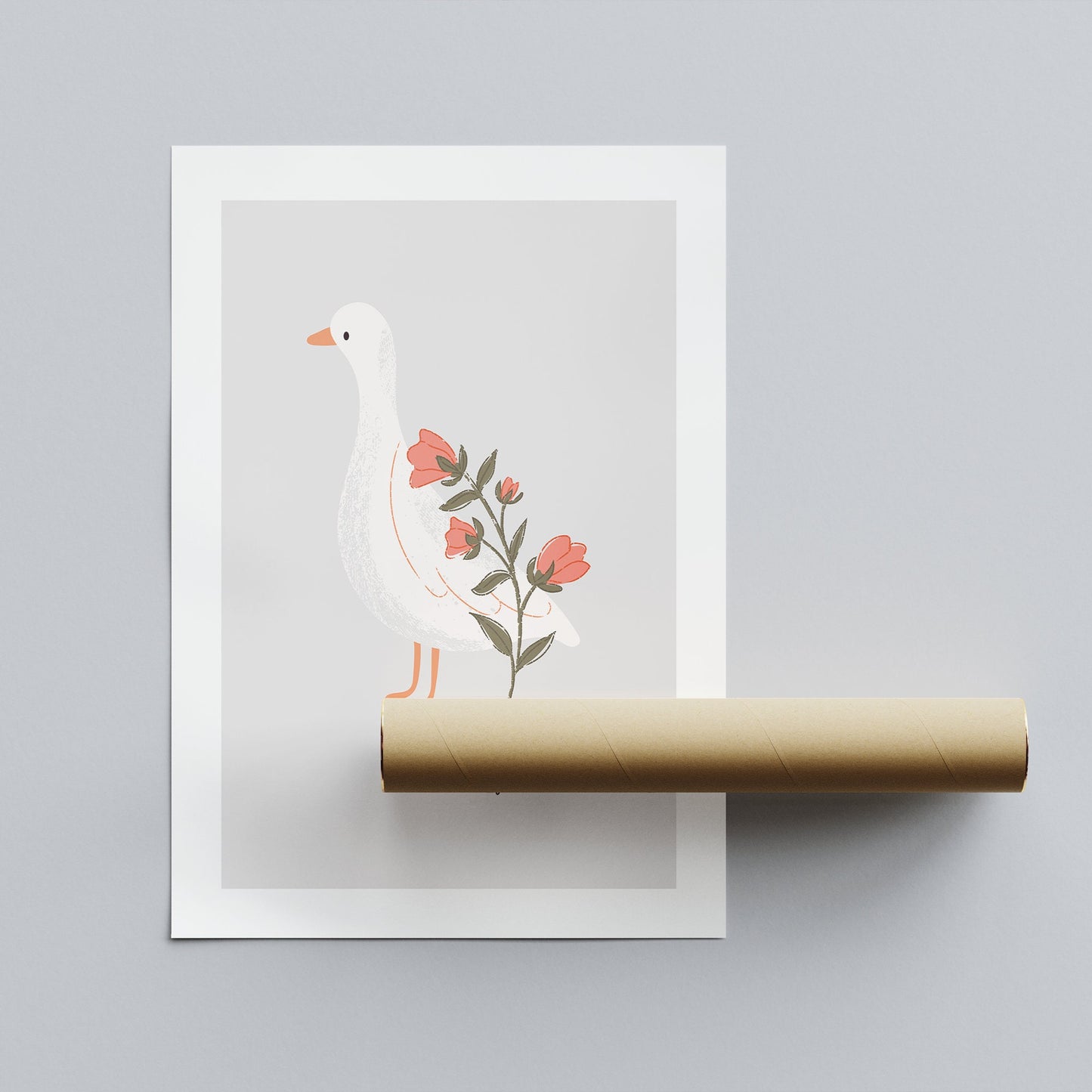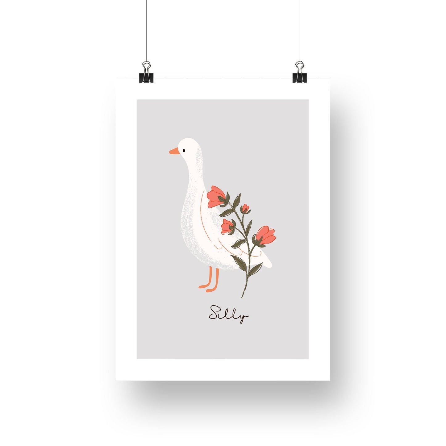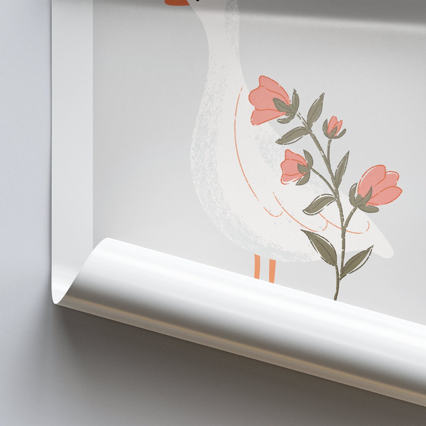Silly Goose Wall Art, Goose And Flowers Design, Bedroom Poster, Funny Home Decor, Trendy Wall Art, Modern Design, Silly Animal Prints