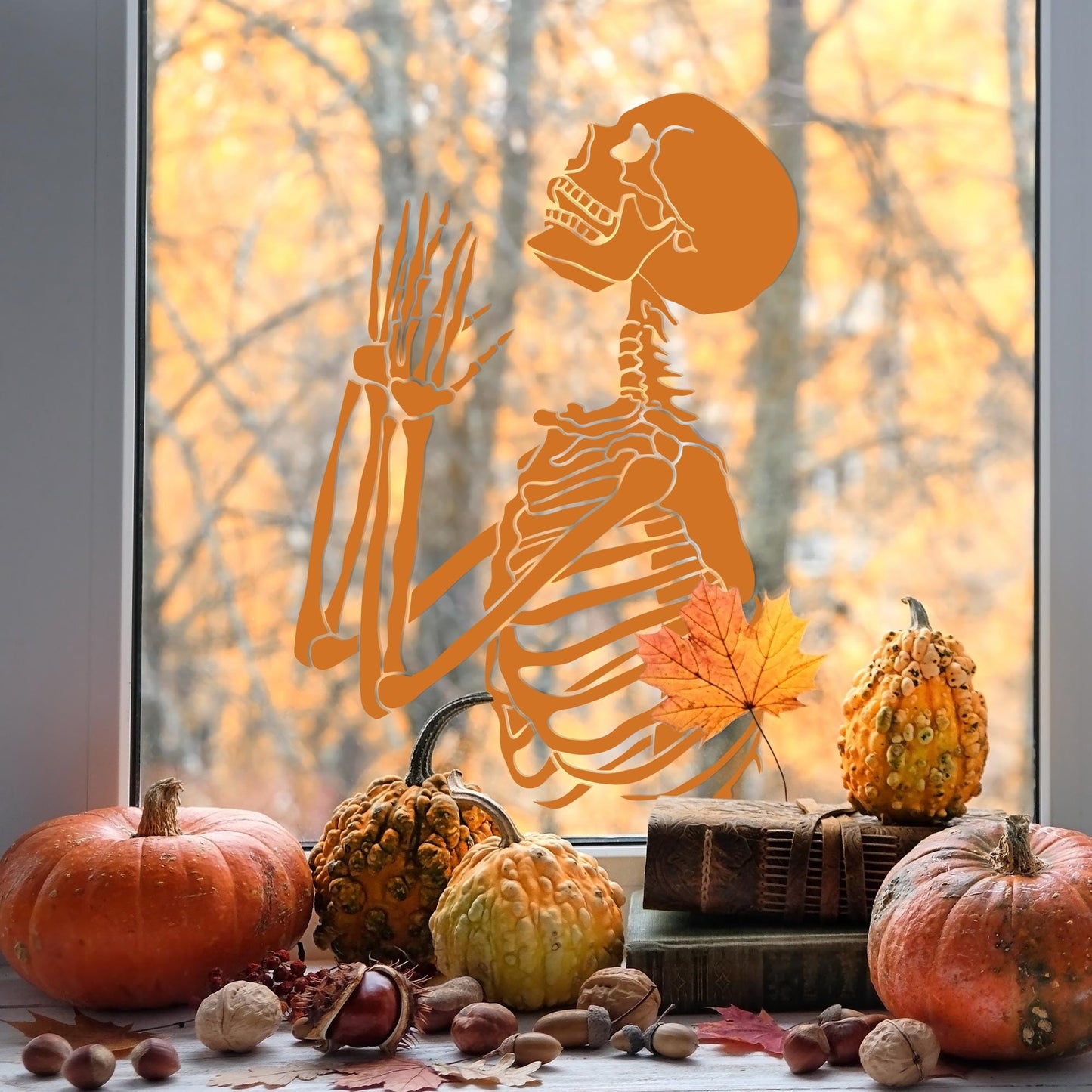 Skeleton Window Sticker 03: Halloween Window Decal, Spooky Season, Skeleton Decoration, Autumnal Home Decor, Halloween Party Decoration