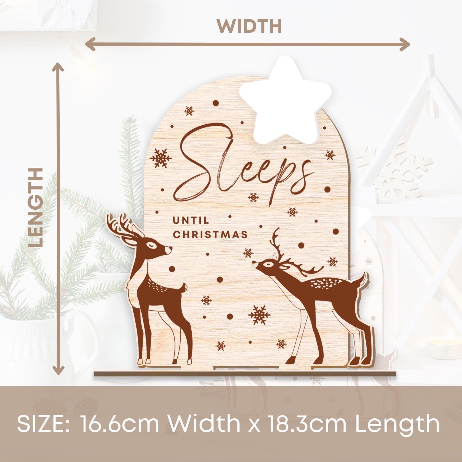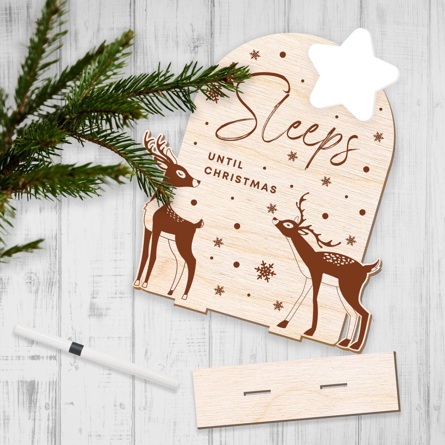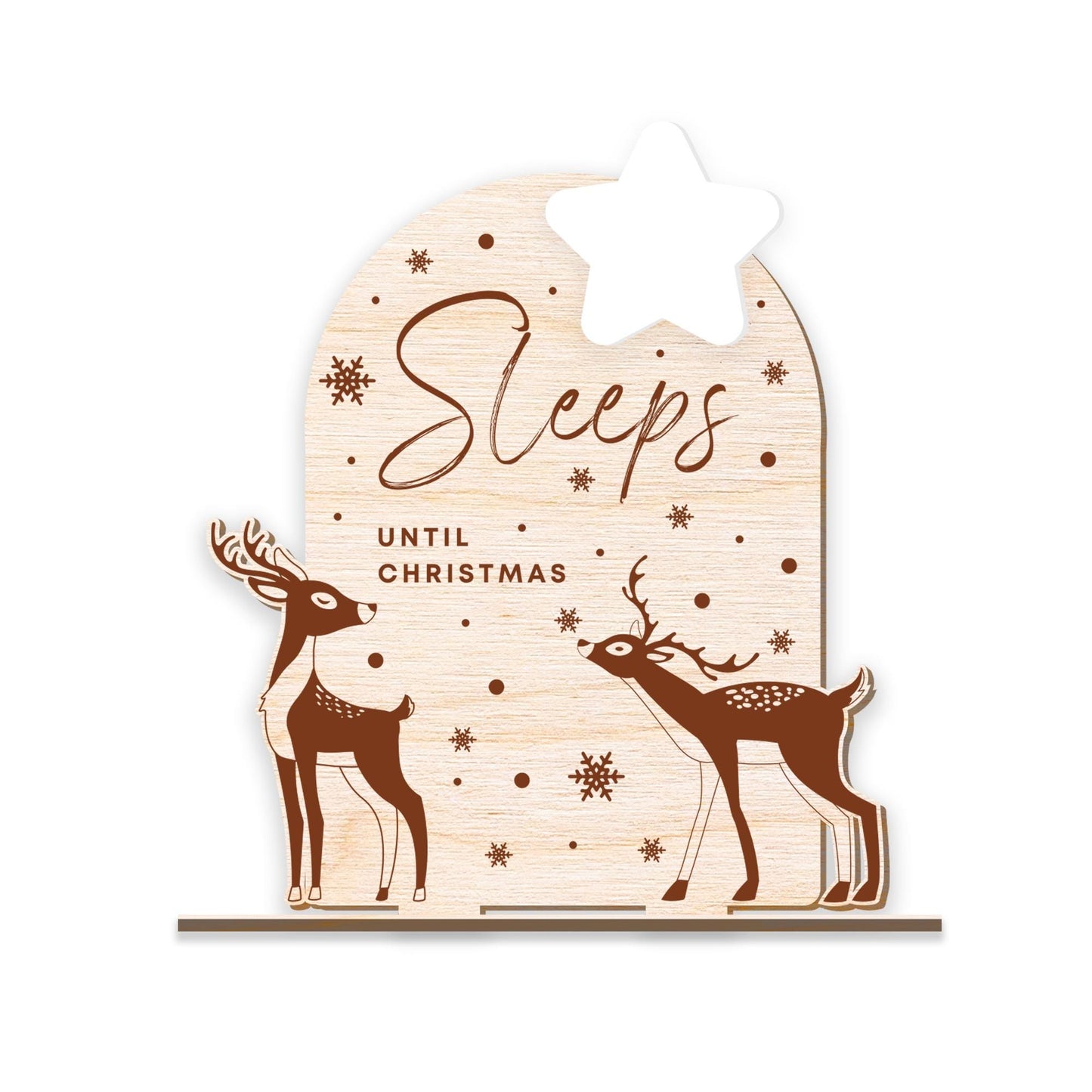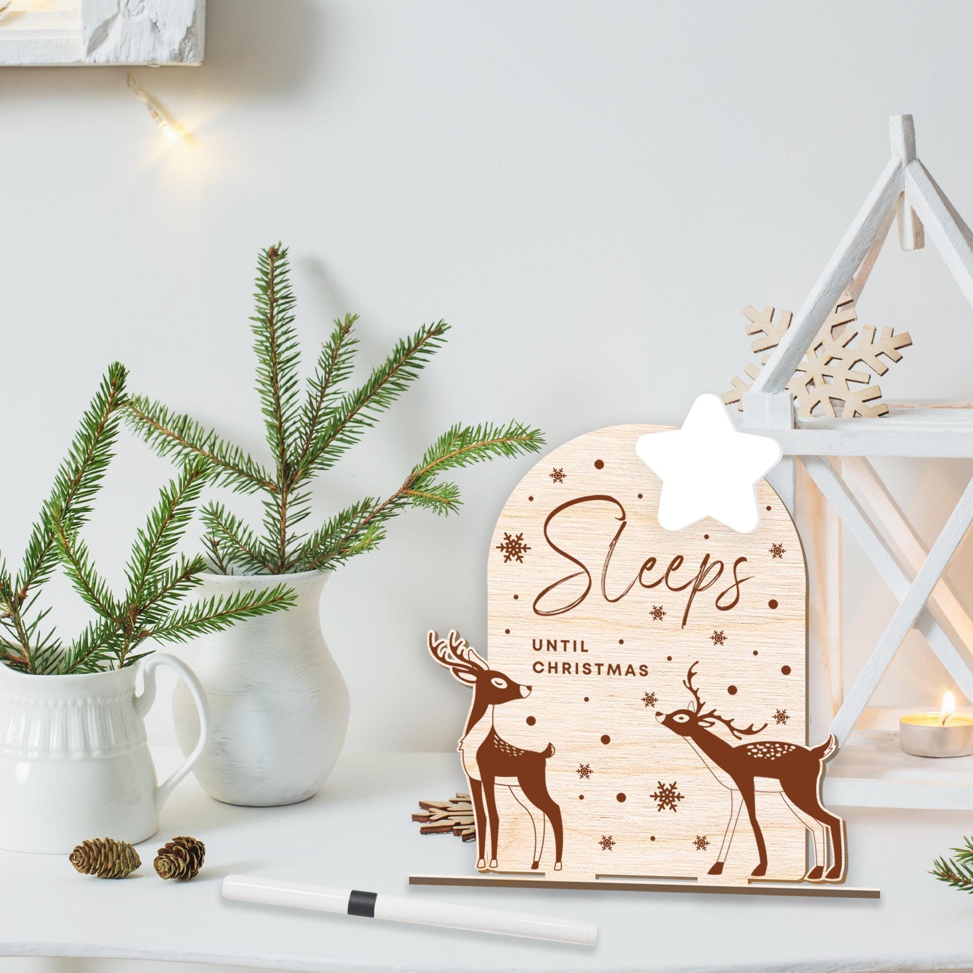 Sleep's Until Christmas - Reindeer: Countdown Sign with Acrylic Star & Dry-Erase Marker, Wooden Christmas Plaque, Christmas Countdown