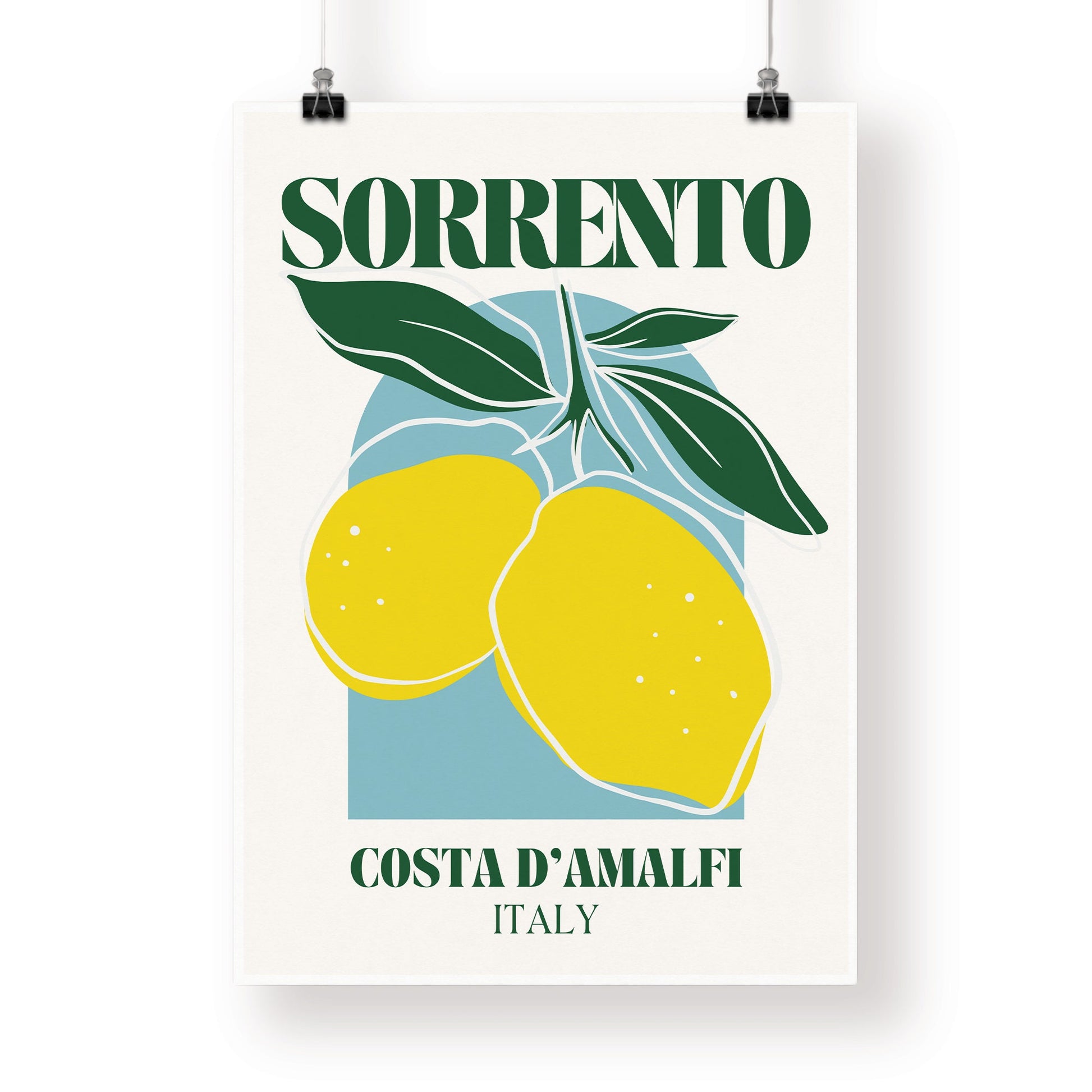 Sorrento - Amalfi Italy Print: Modern Italian Location Poster, Amalfi Coast Aesthetic, Home Decor, Lemon Illustration, Mediterranean, Travel