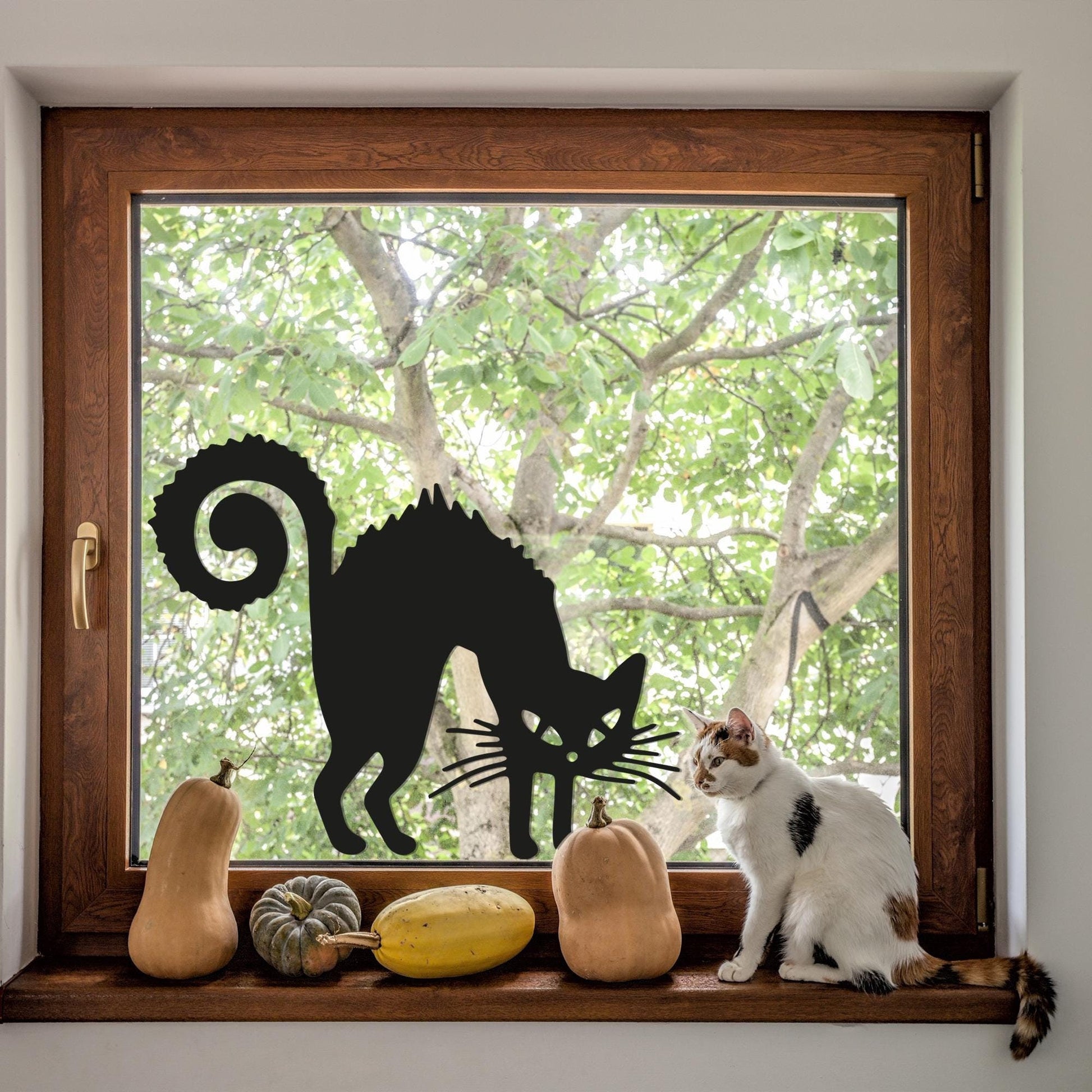Spooky Cat Window Sticker: Halloween Decorations, Autumnal Window Decal, Silhouette Window Display, Home Decor, Halloween Party Decoration