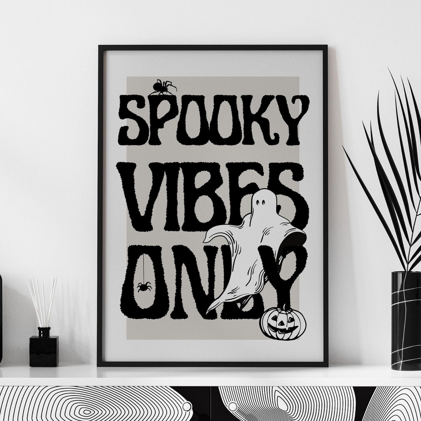 Transform your space with our "Spooky Vibes Only" poster, perfect for Halloween and fall decor. This eye-catching print brings a touch of eerie charm and festive spirit to any room, making it an ideal addition to your seasonal decorations.