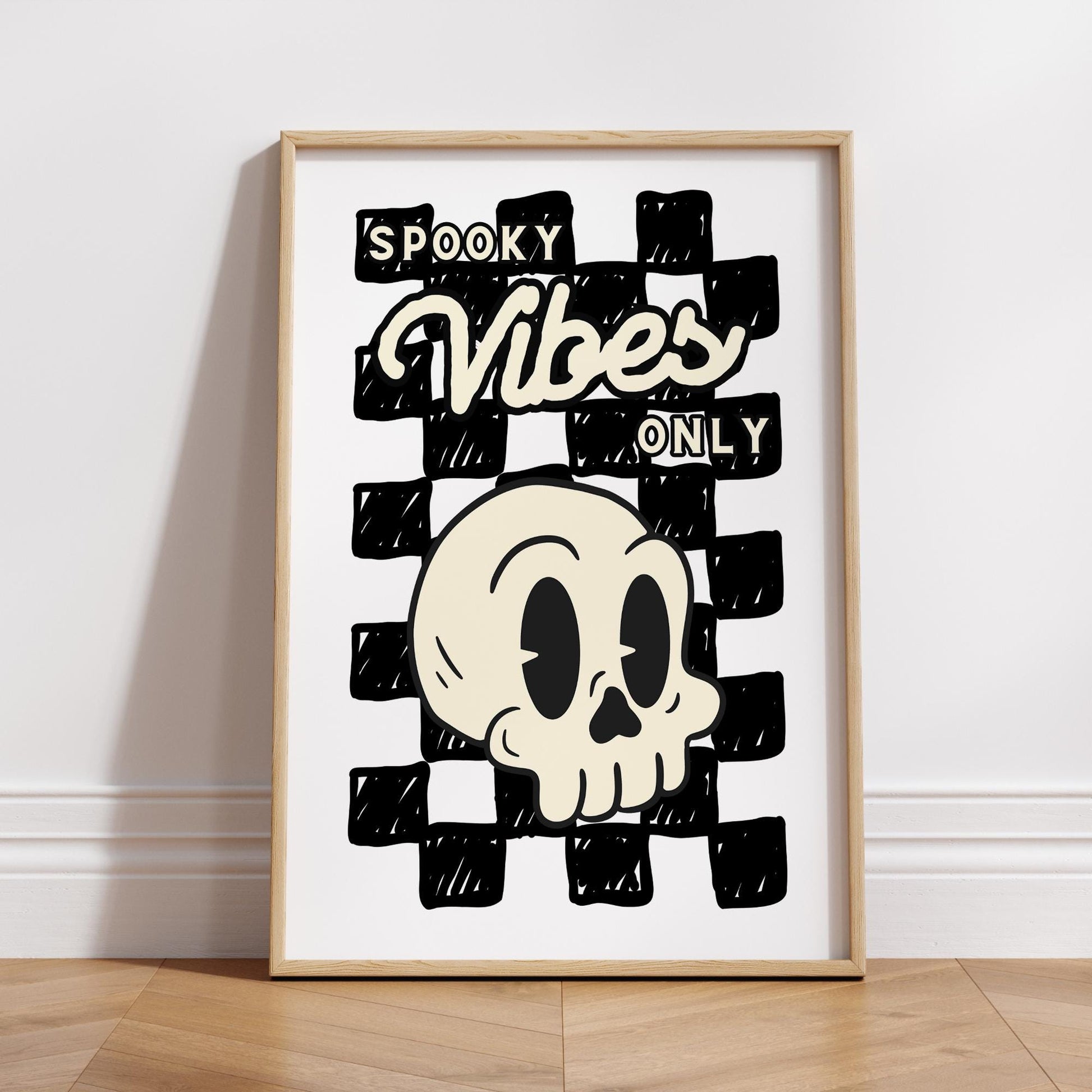 Transform your space with our "Spooky Vibes Only" poster, perfect for Halloween and fall decor. This eye-catching print brings a touch of eerie charm and festive spirit to any room, making it an ideal addition to your seasonal decorations.