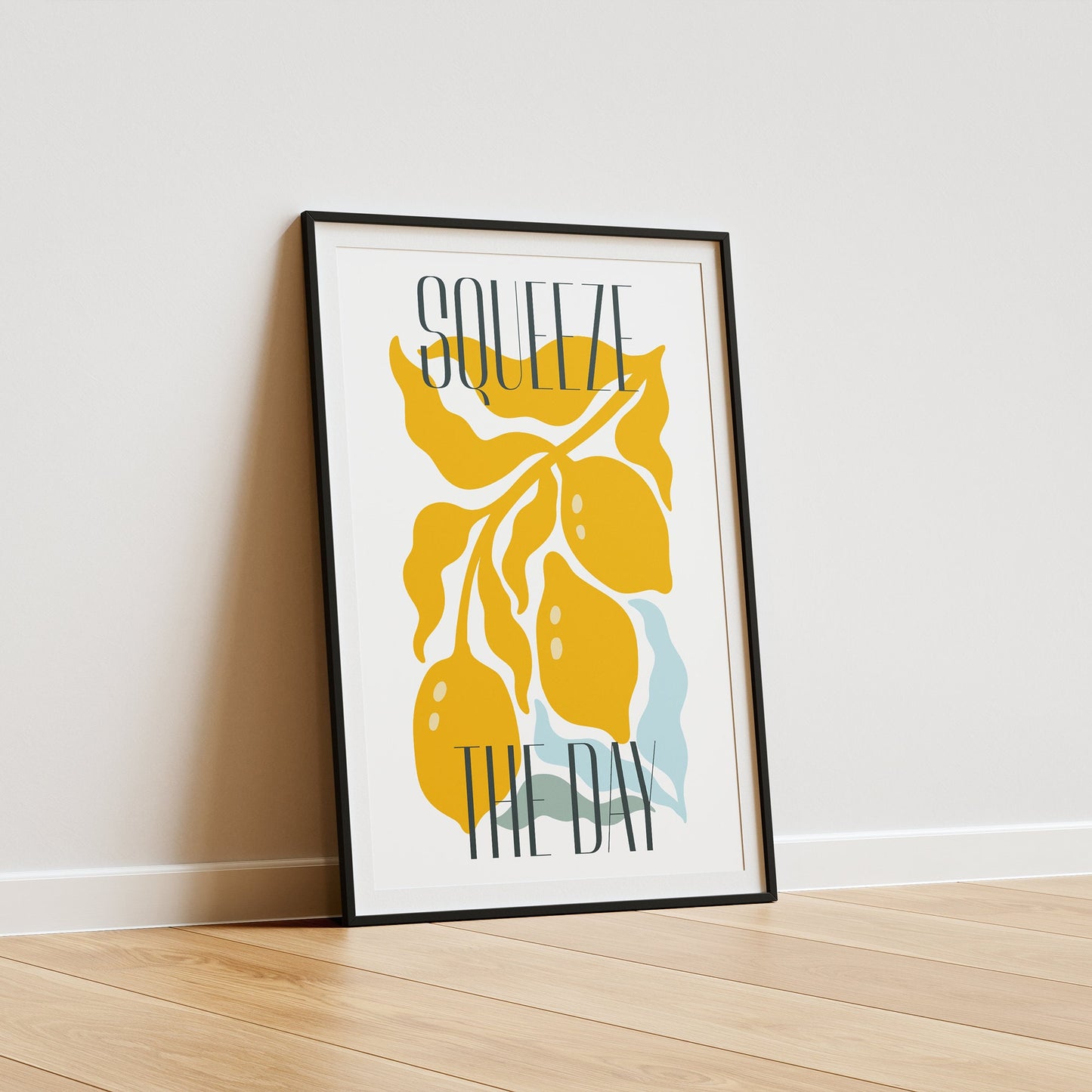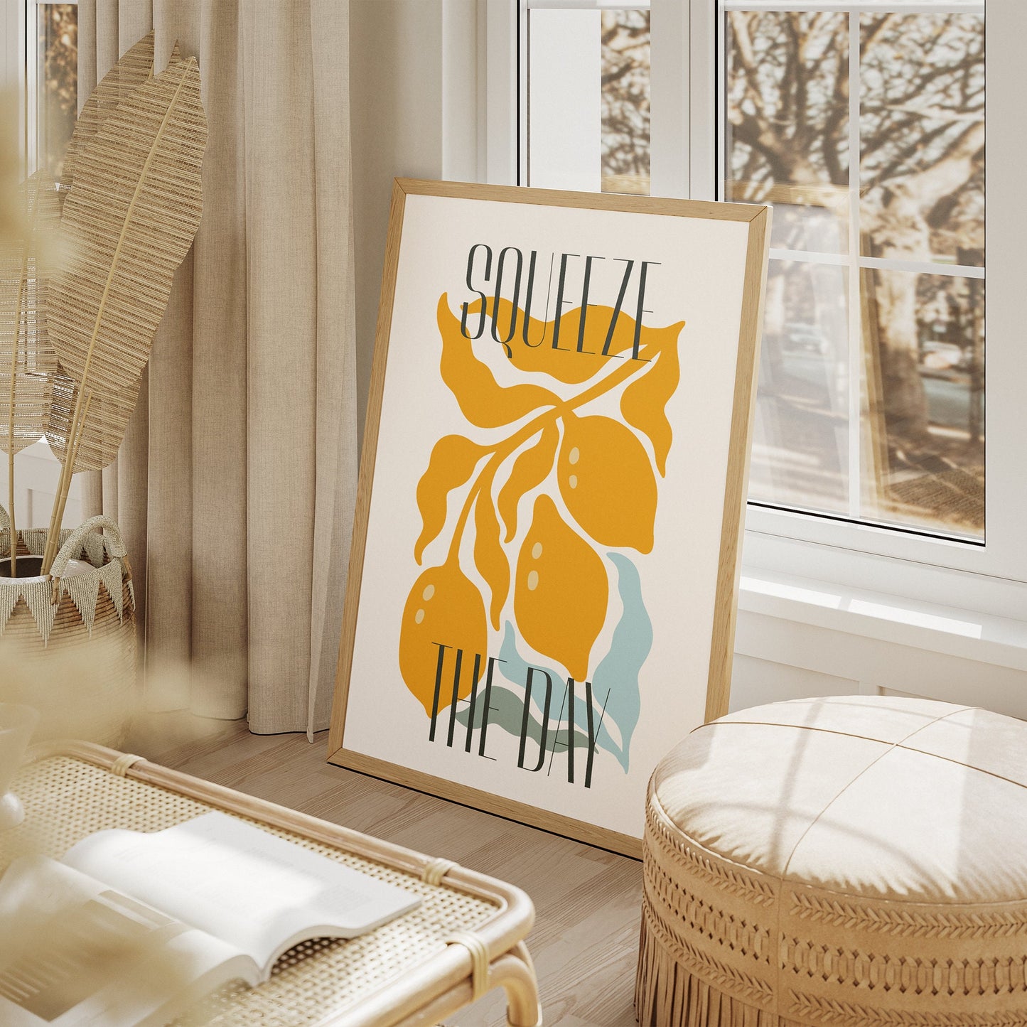Welcome to our vibrant "Squeeze the Day" Lemon Poster!