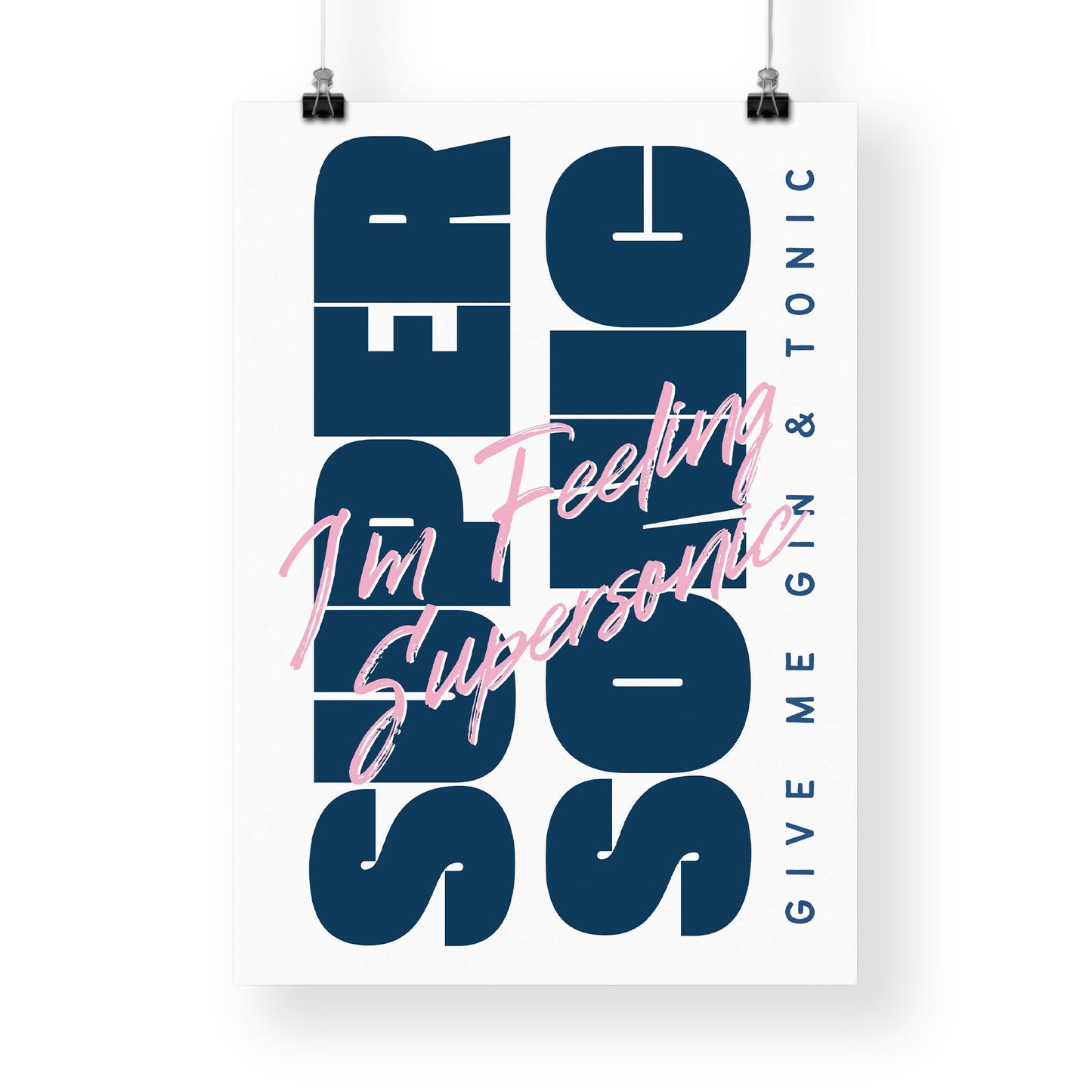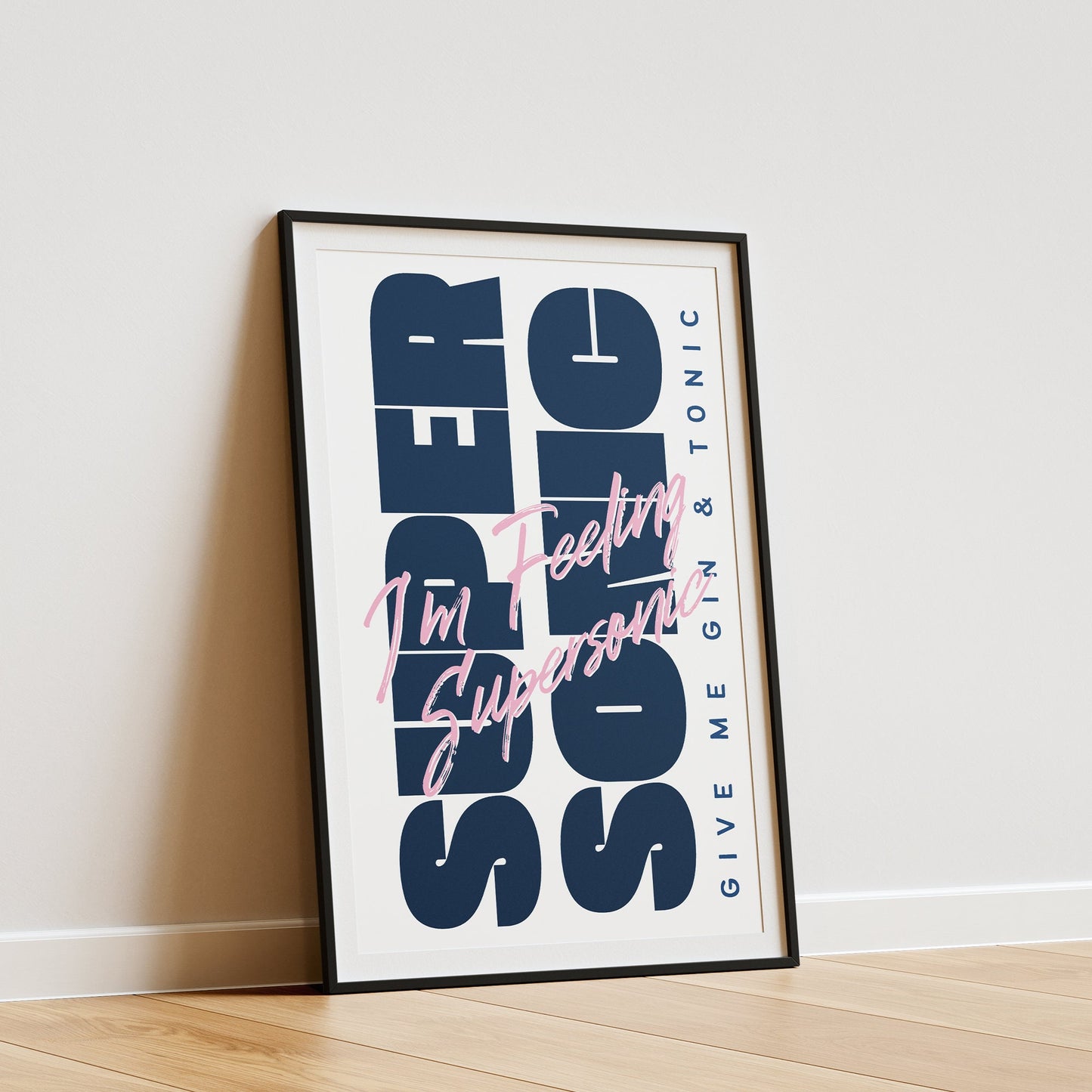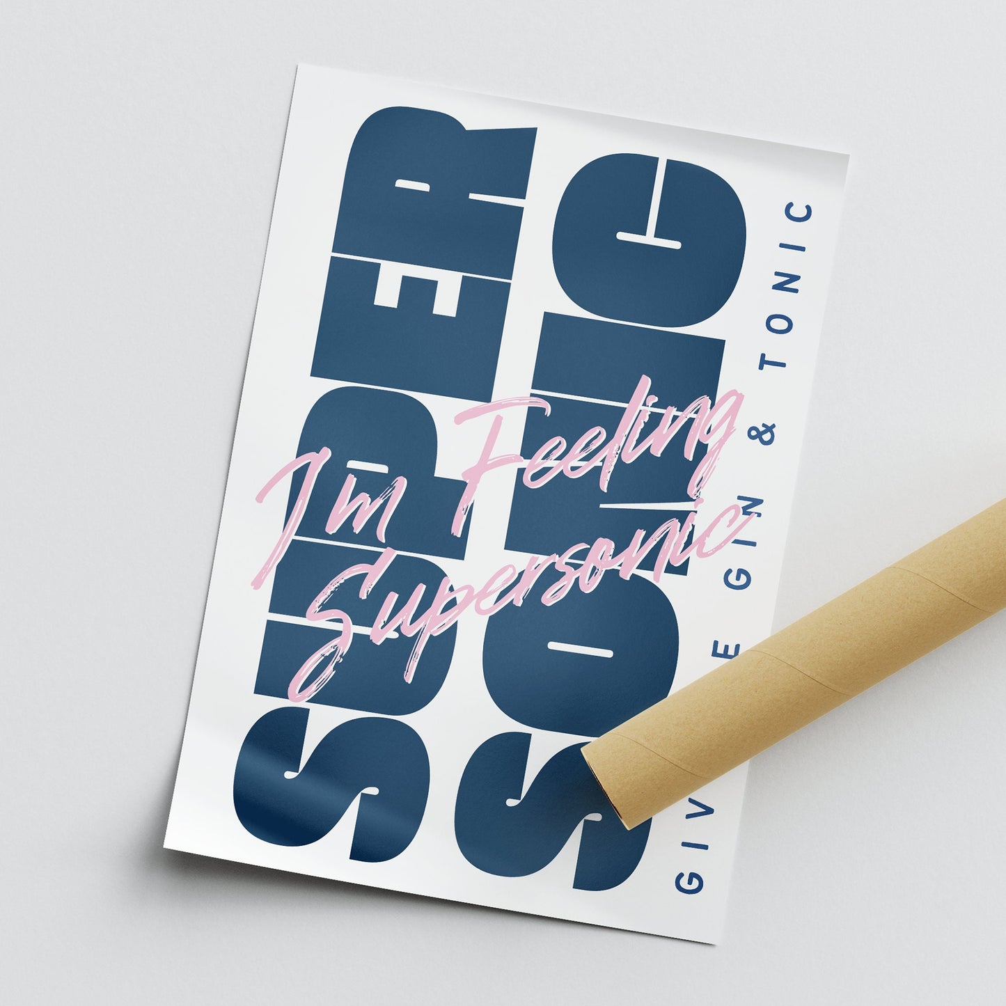 Celebrate your love for iconic Britpop with our Oasis song inspired poster! Featuring the memorable lyrics "I‘m Feeling Supersonic, Give Me Gin & Tonic," this bold typography print is perfect for fans of the legendary band. Whether you‘re decorating your living room, bar area, or any other space, this poster adds a touch of musical nostalgia and modern style.