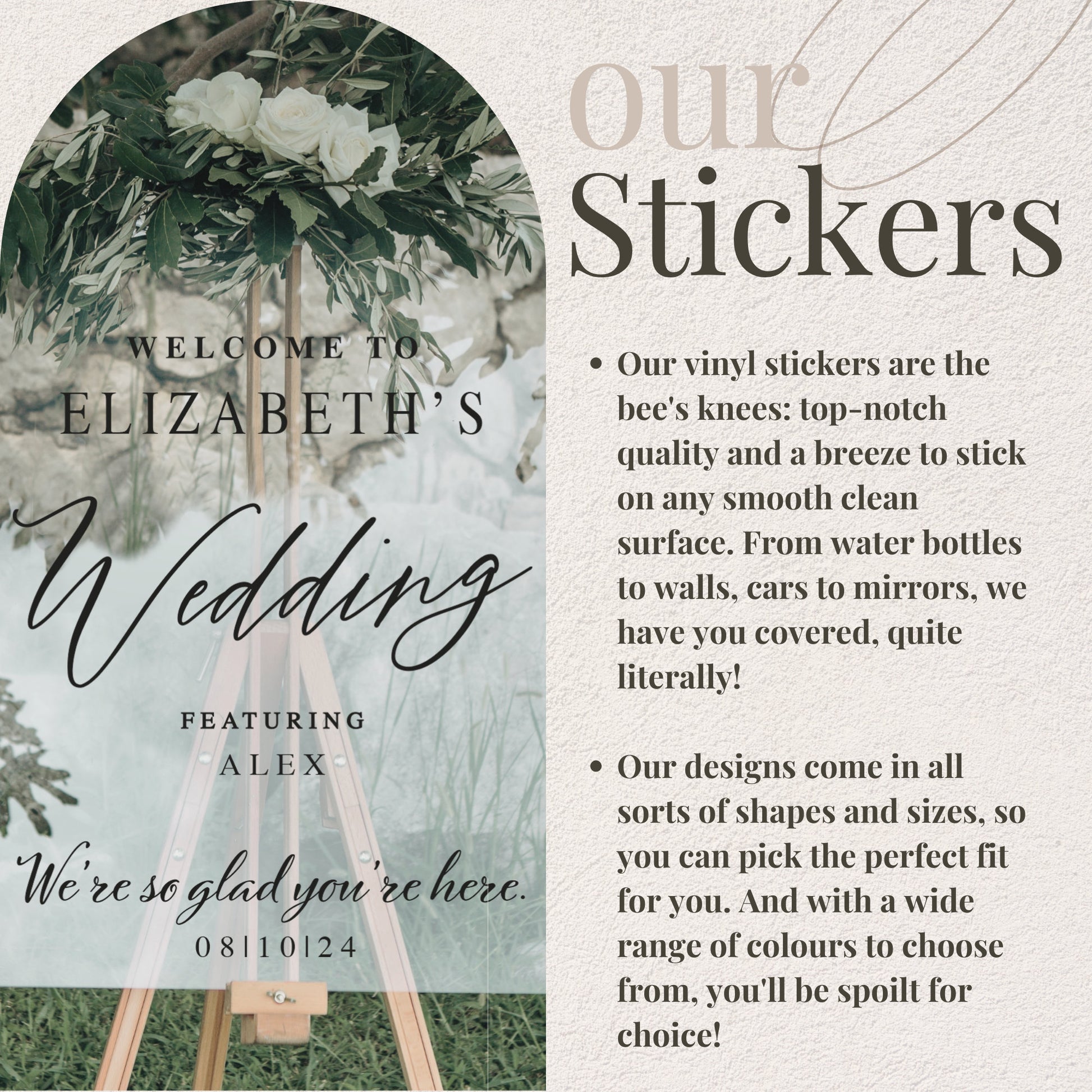 Our customisable sticker allows you to add your names (up to 9 characters each) and the date, creating a beautiful and memorable addition to your event.