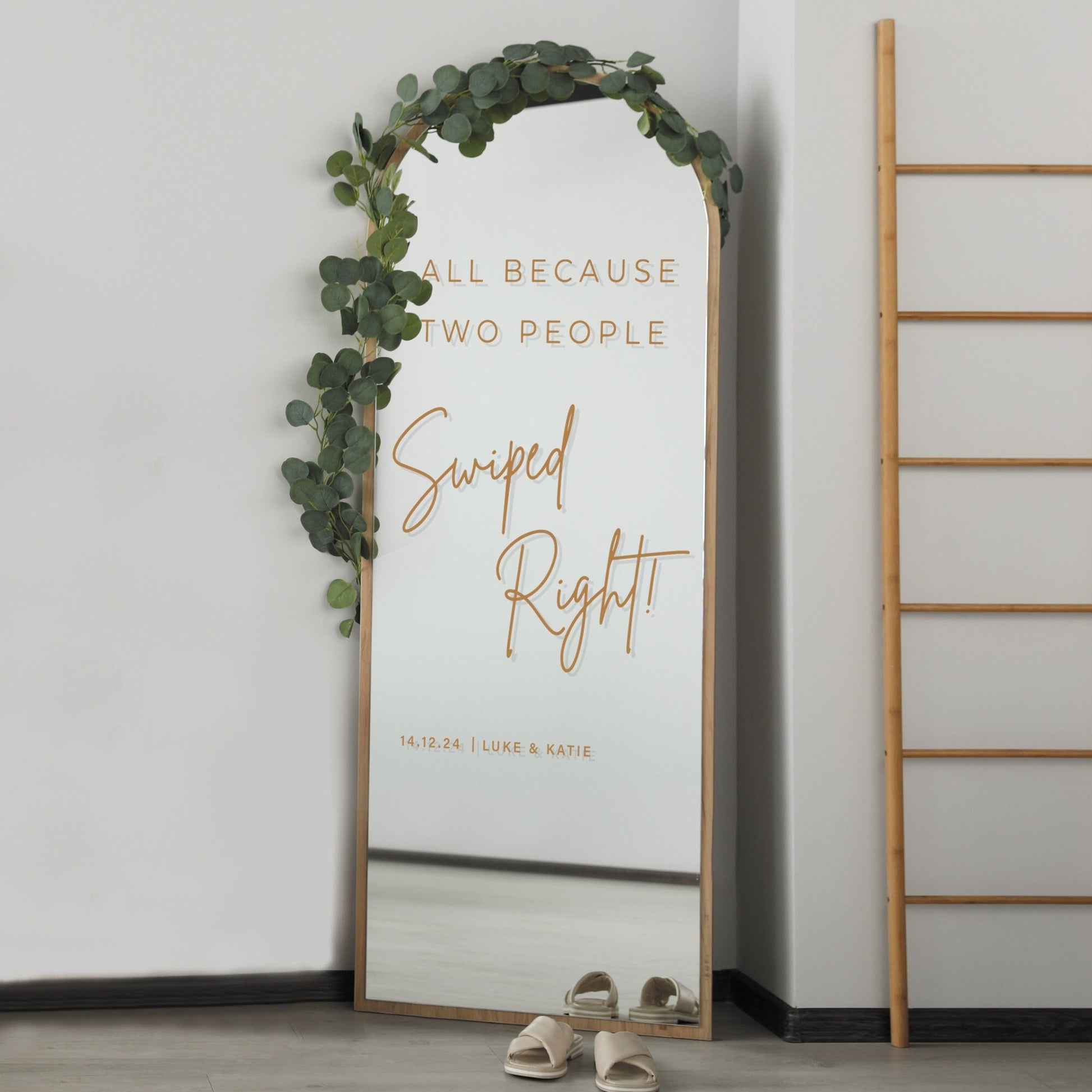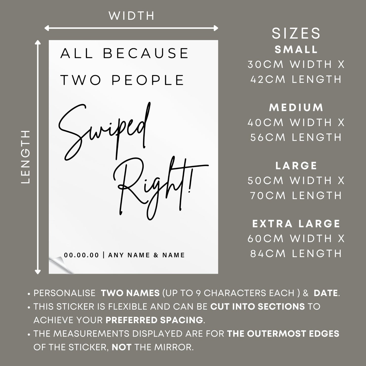 Swiped Right - Script Mirror Sticker: Custom Decor, Personalised Vinyl Decal For DIY Engagement, Wedding, or Anniversary Party Sign