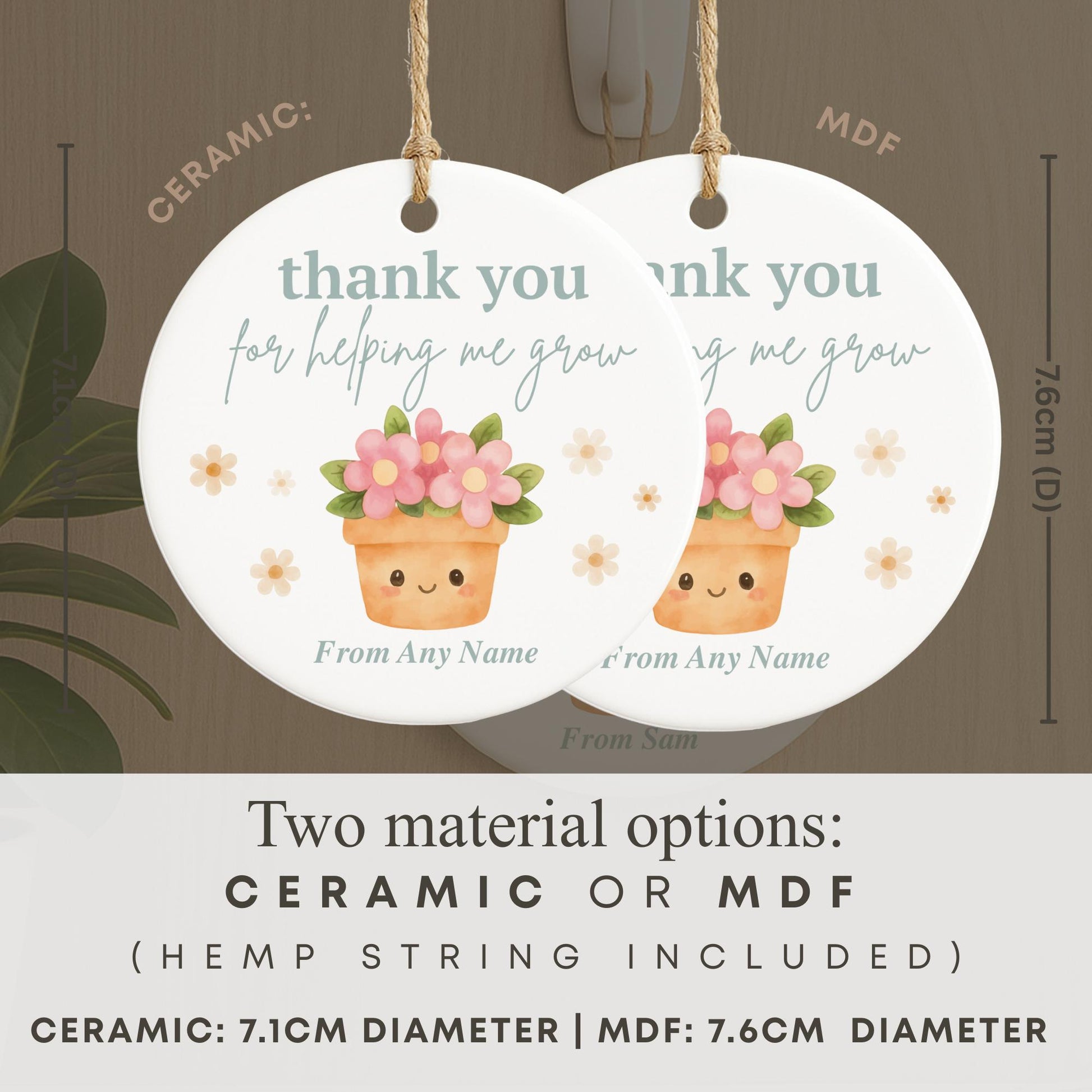Thank You for Helping Me Grow Teacher Gift Personalised Hanging Ornament