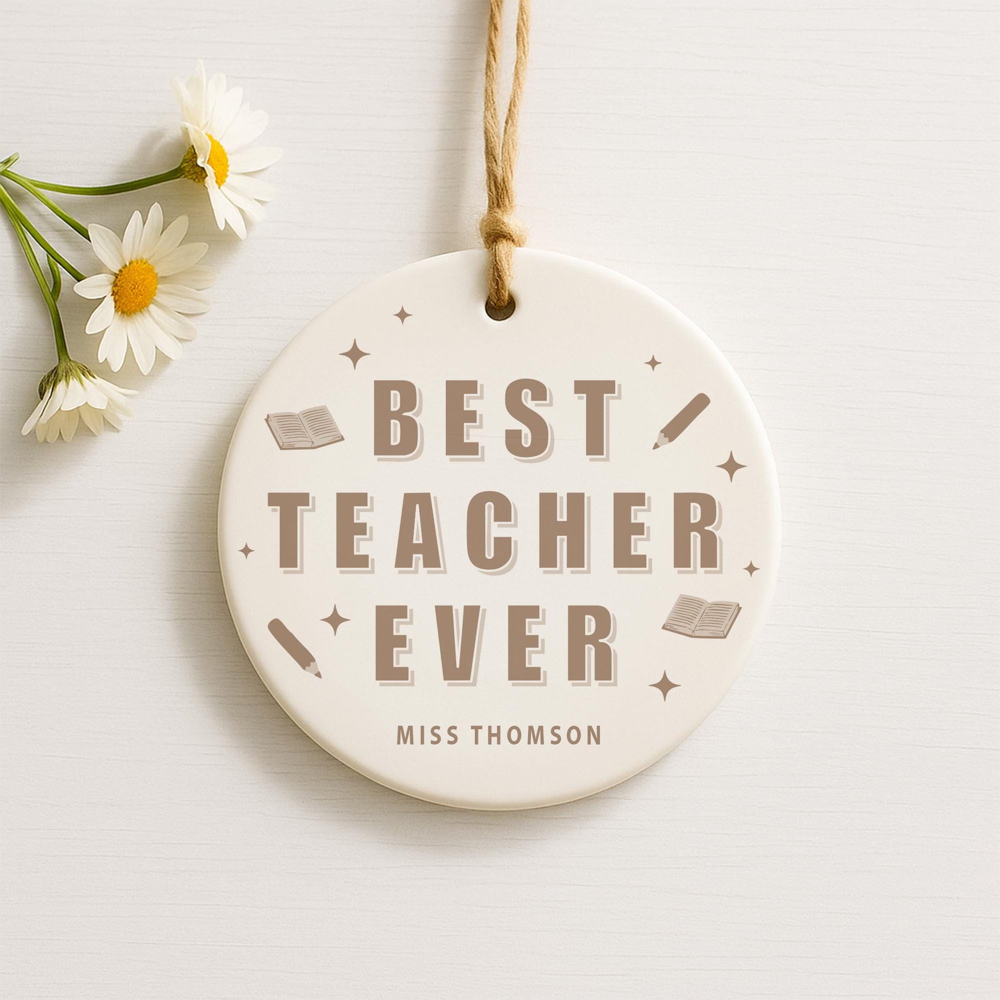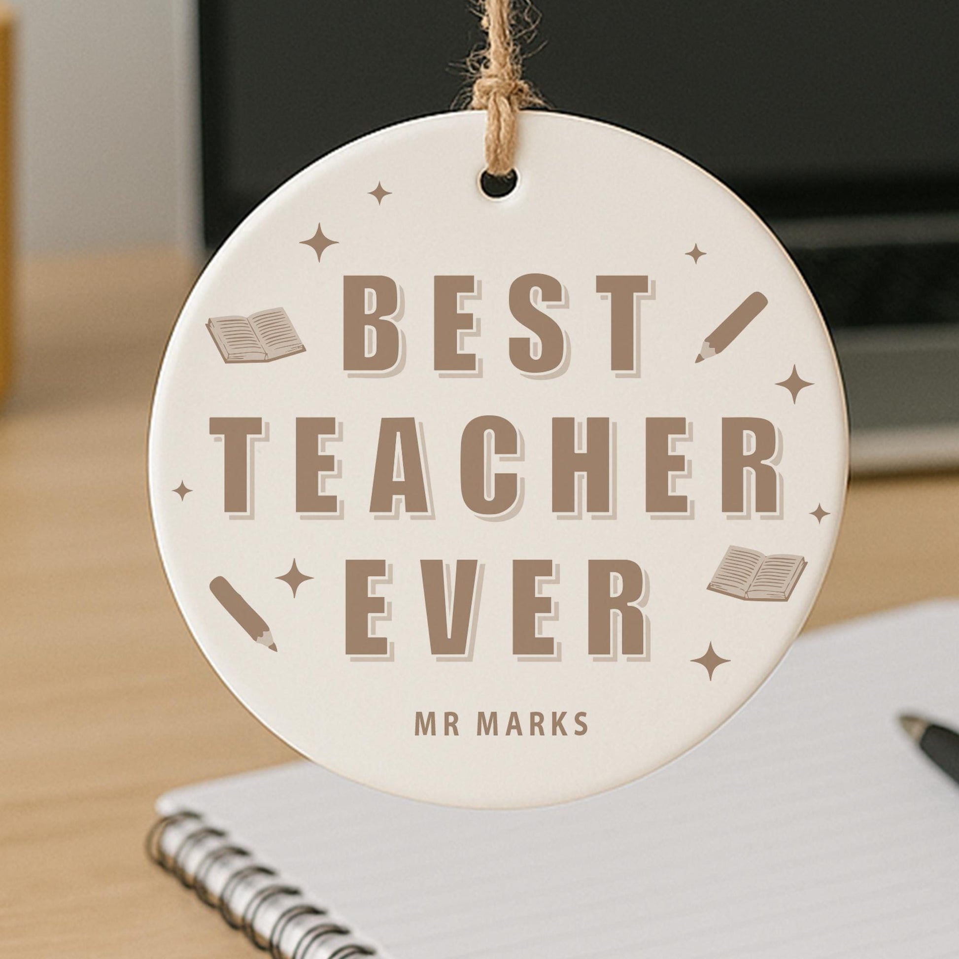 Customise with any teacher’s name to create a heartfelt gift that feels both thoughtful and timeless. Choose from premium ceramic or lightweight MDF, both supplied with hemp string for easy hanging.