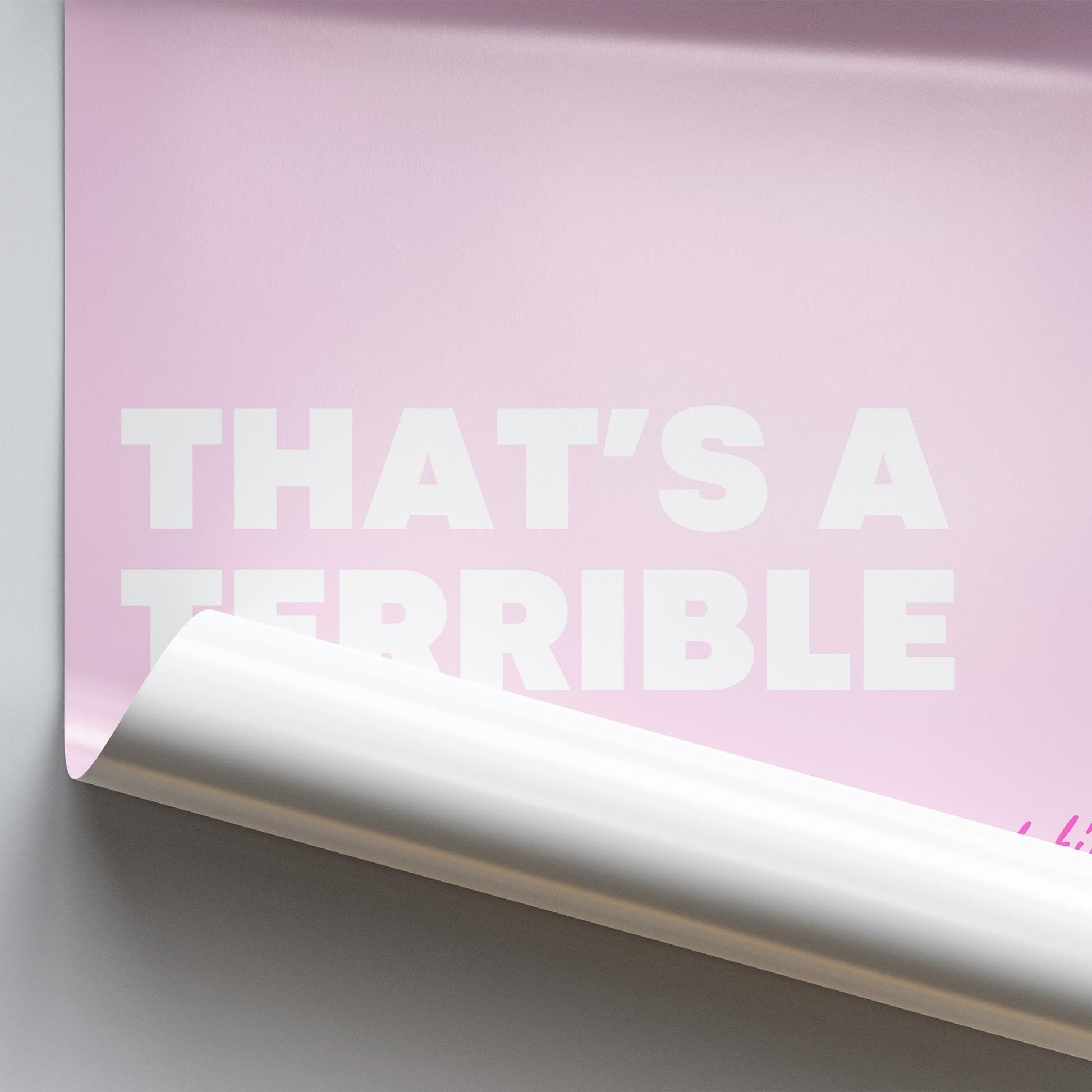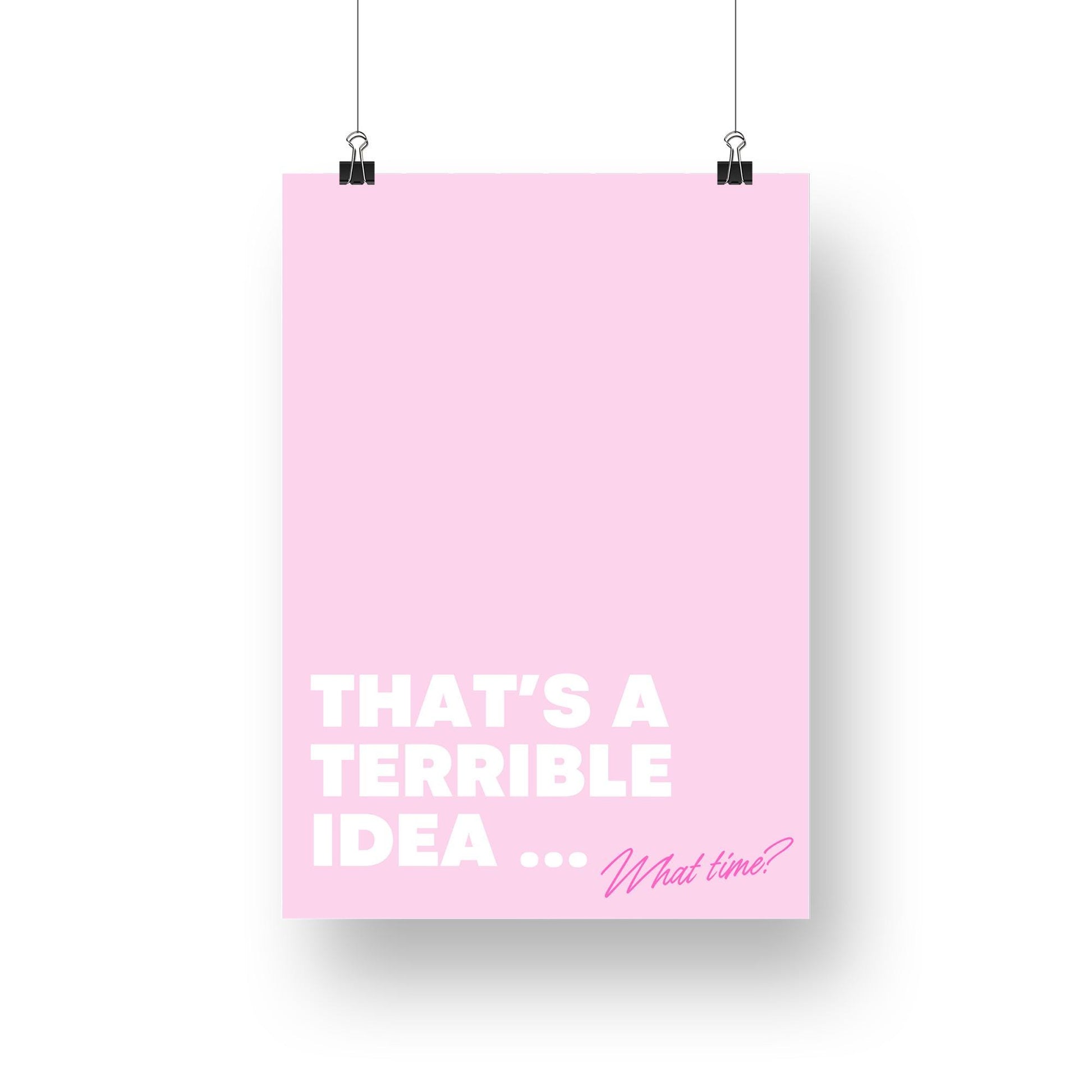 That's A Terrible Idea - Pink Poster: Funny Inspirational Poster, Unique Home Decor, Cool Print, Fun Quote Poster, Home Wall Art, Home Decor