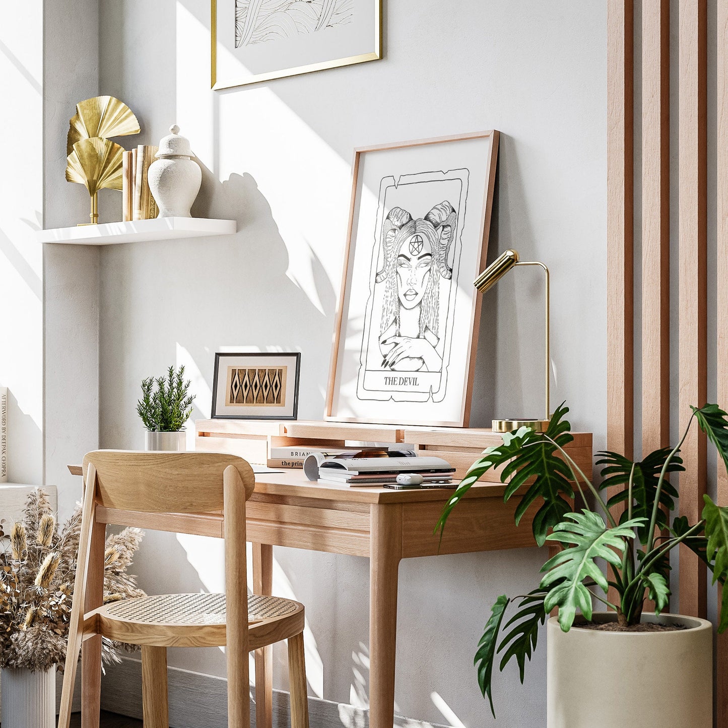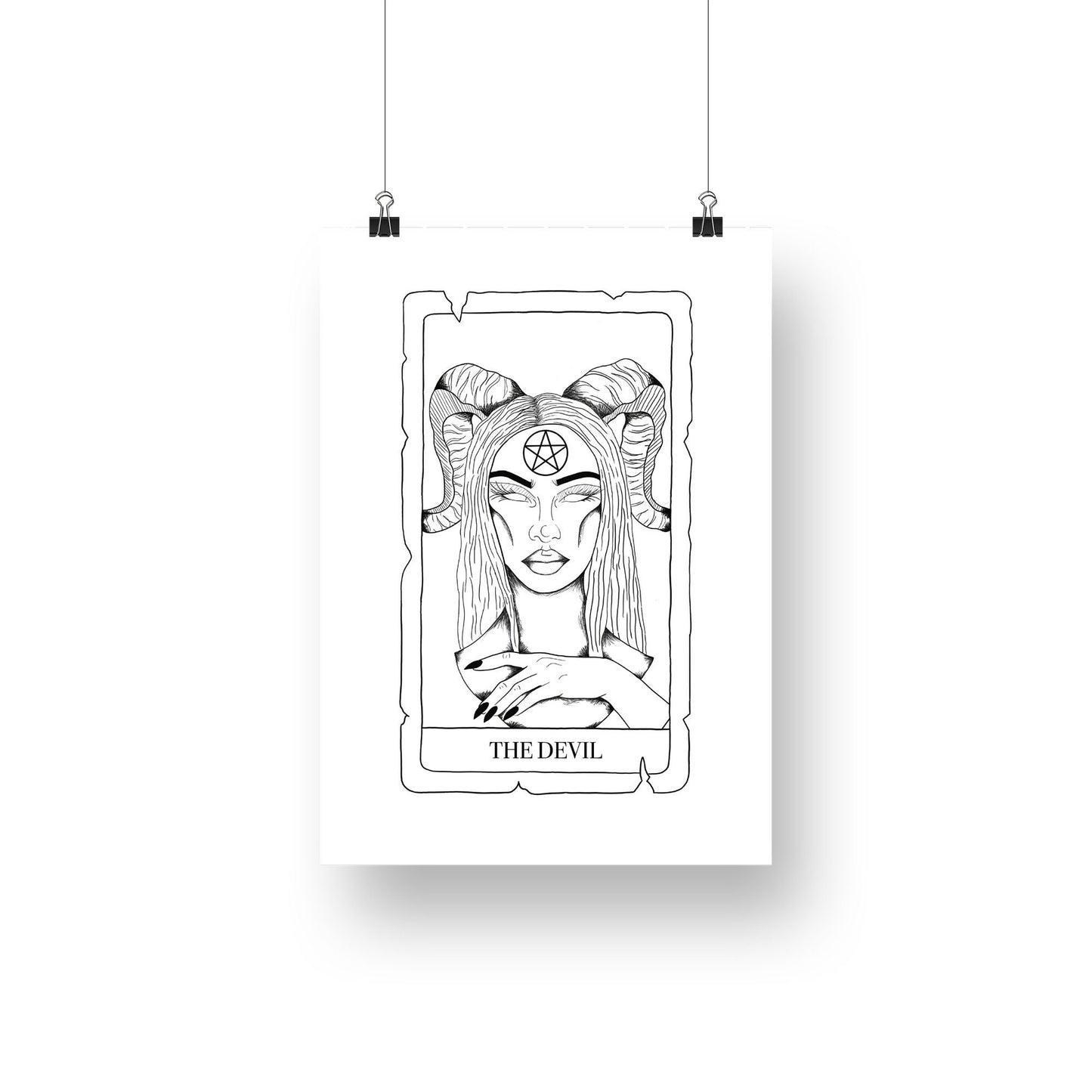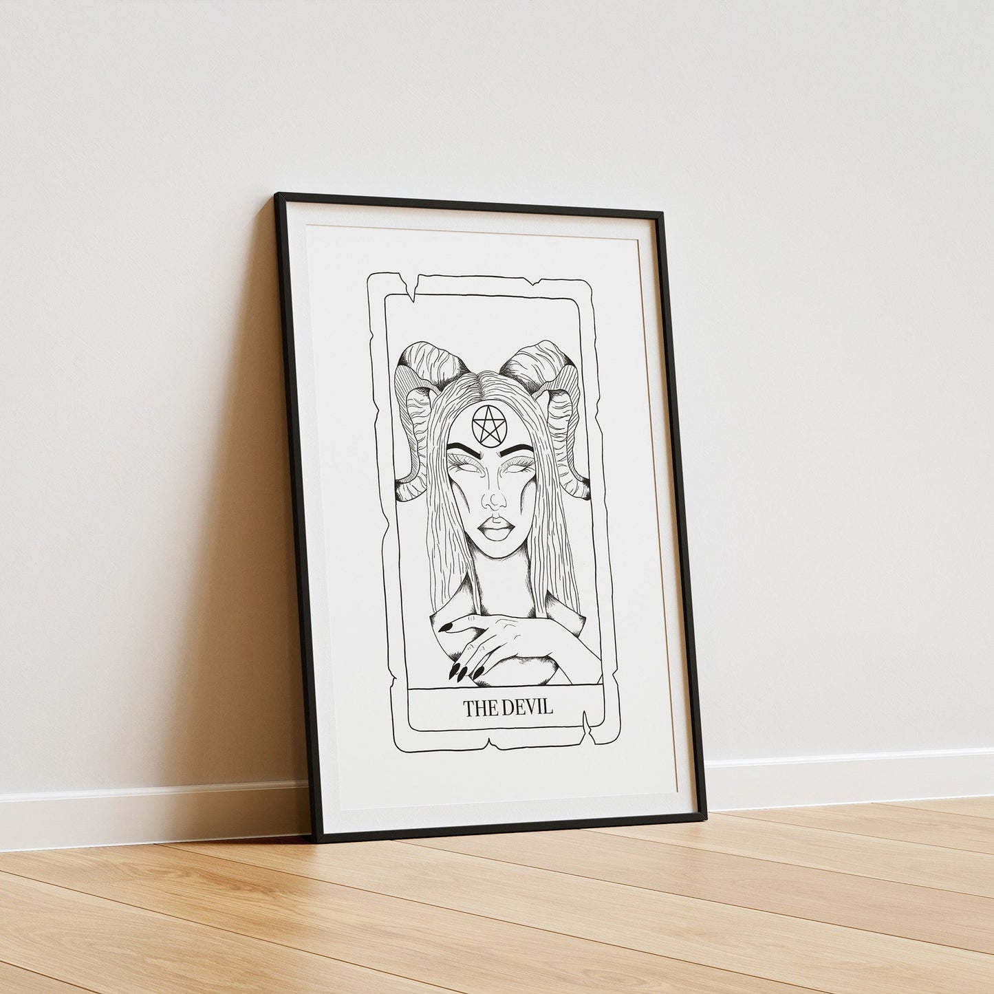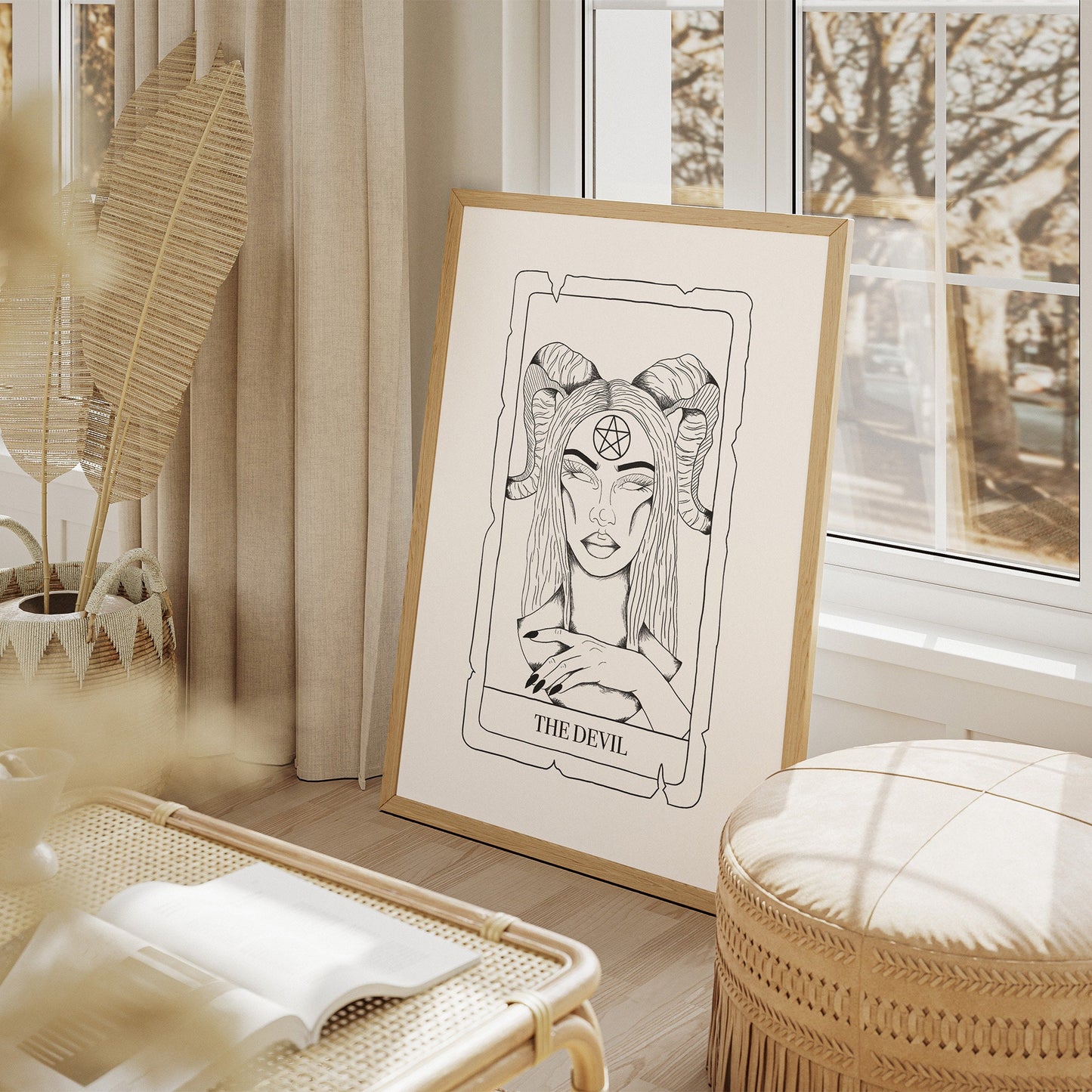 The Devil Tarot Card Poster, Tarot Design, The Devil Card, Tarot Poster, Psychic Painting Print, Tarot Wall Art