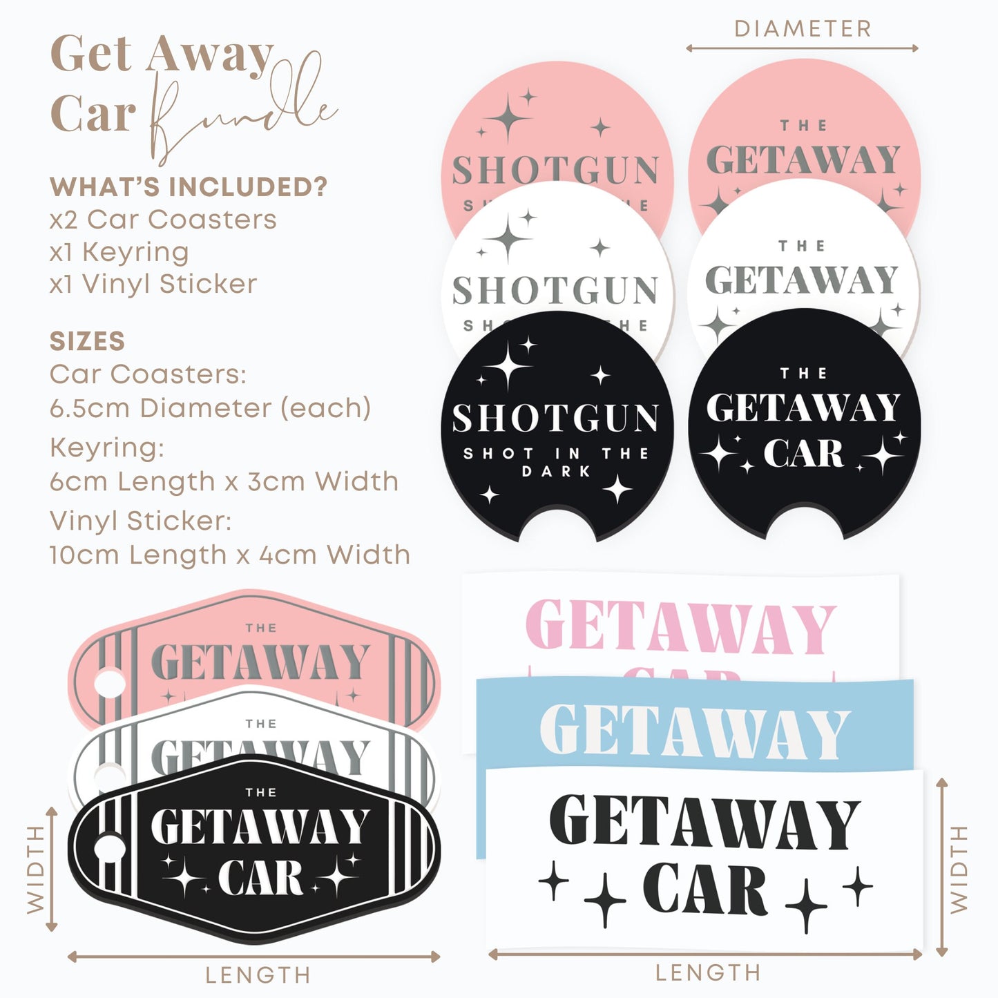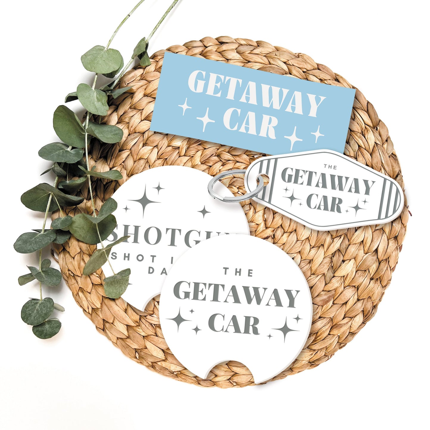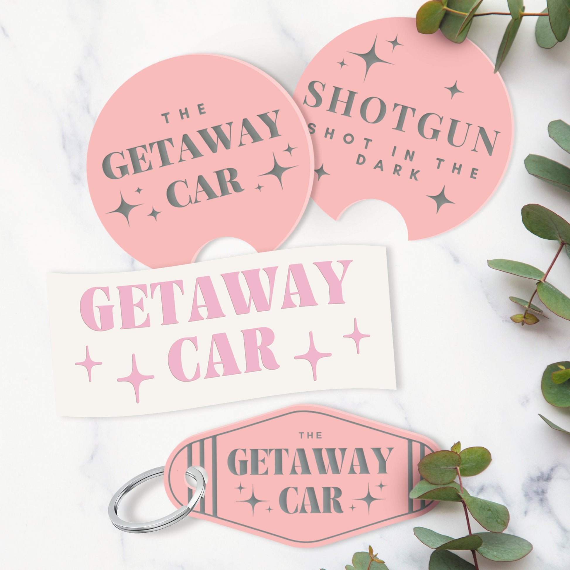 The Getaway Car Bundle Pack: Car Coaster Set, Keyring, & Vinyl Sticker - Music Inspired Unique Girly Car Decor, Car Accessory Gift For Her
