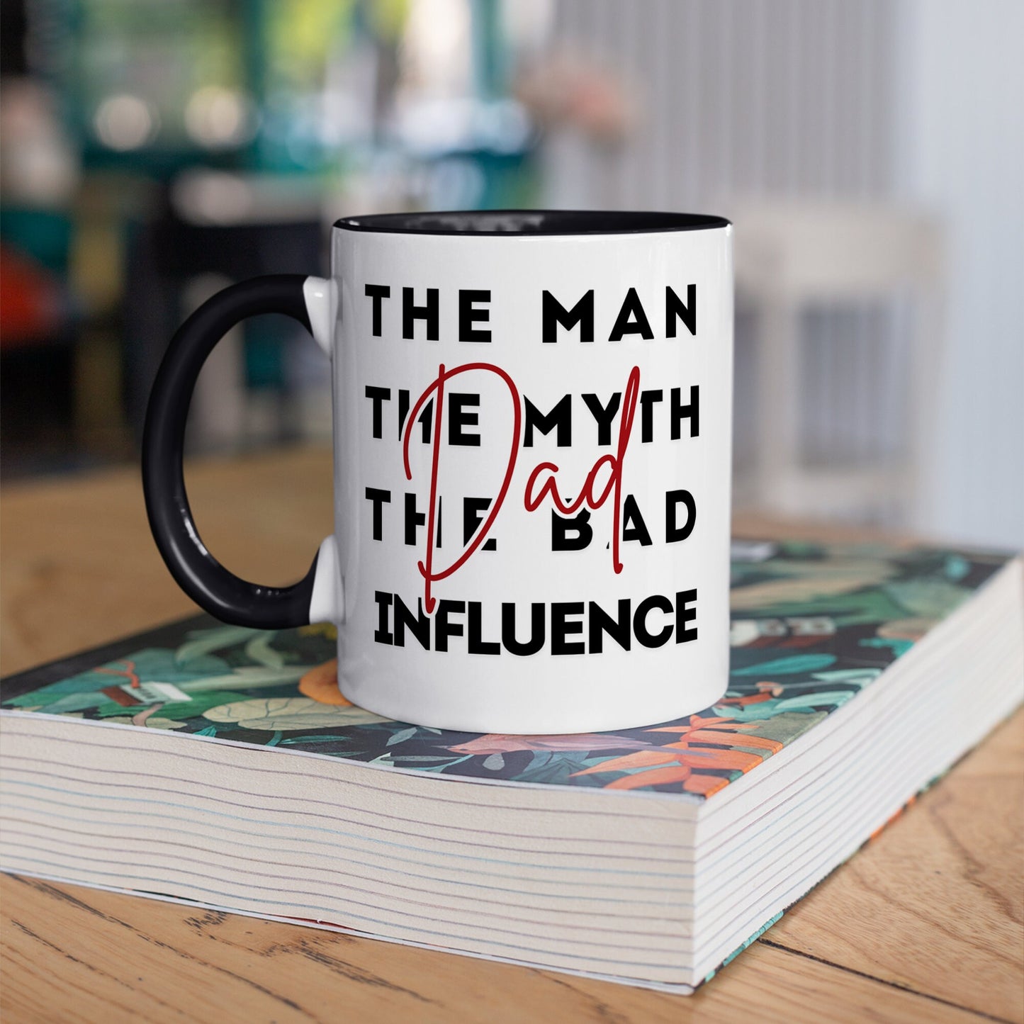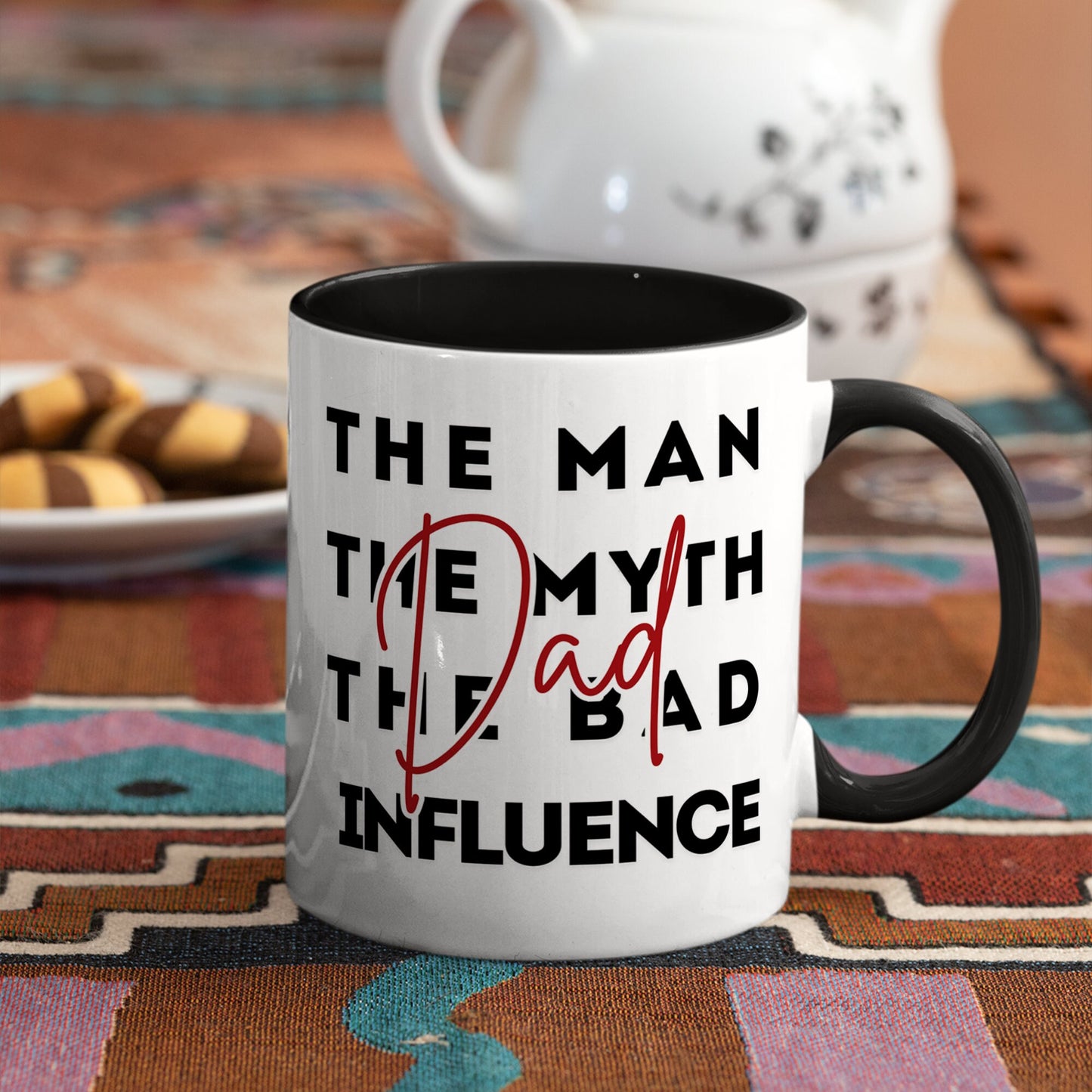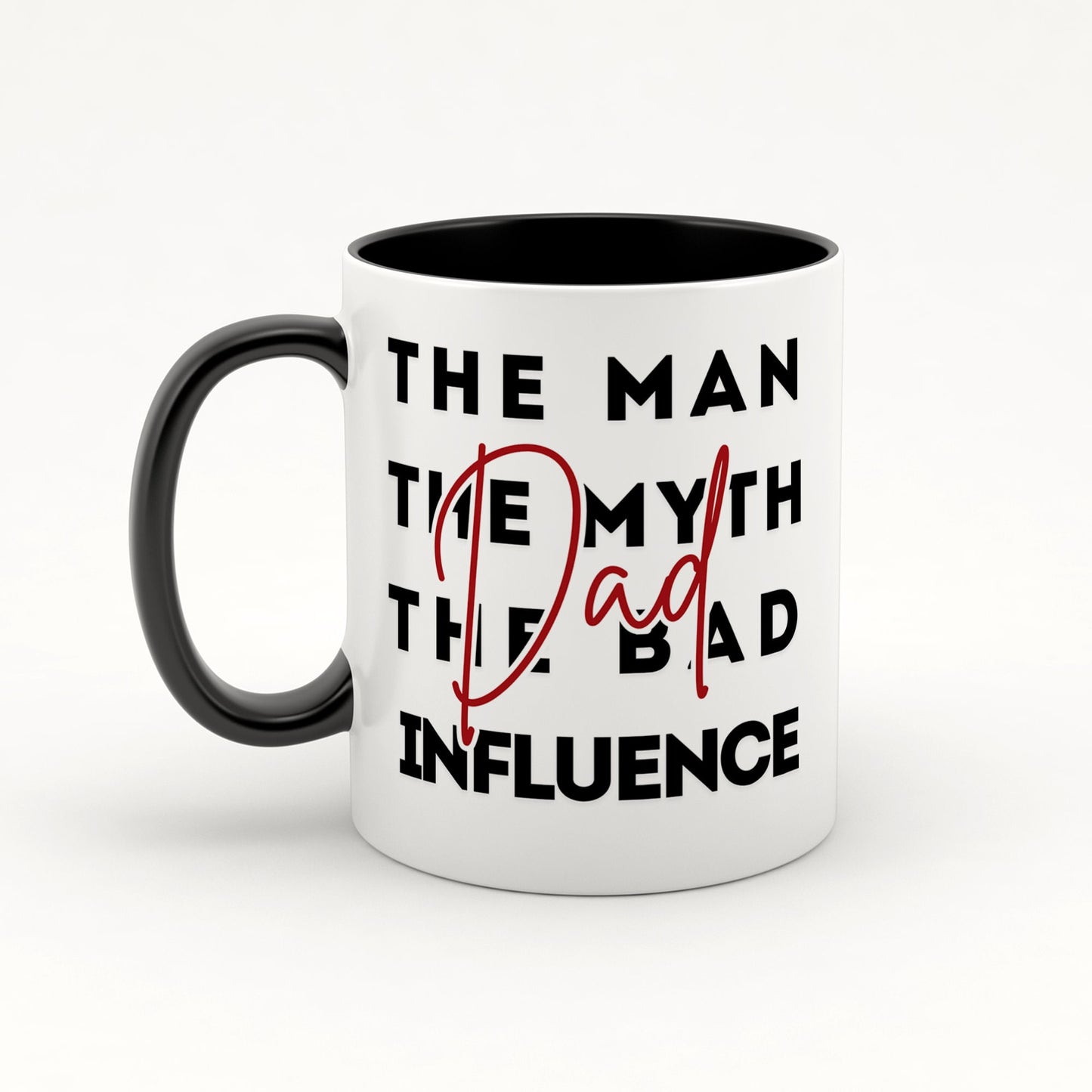 The Man The Myth The Bad Influence - Black & Red Mug: Funny Father's Day Gift, Humorous Coffee Mug for Dad, Birthday Gift for Dad