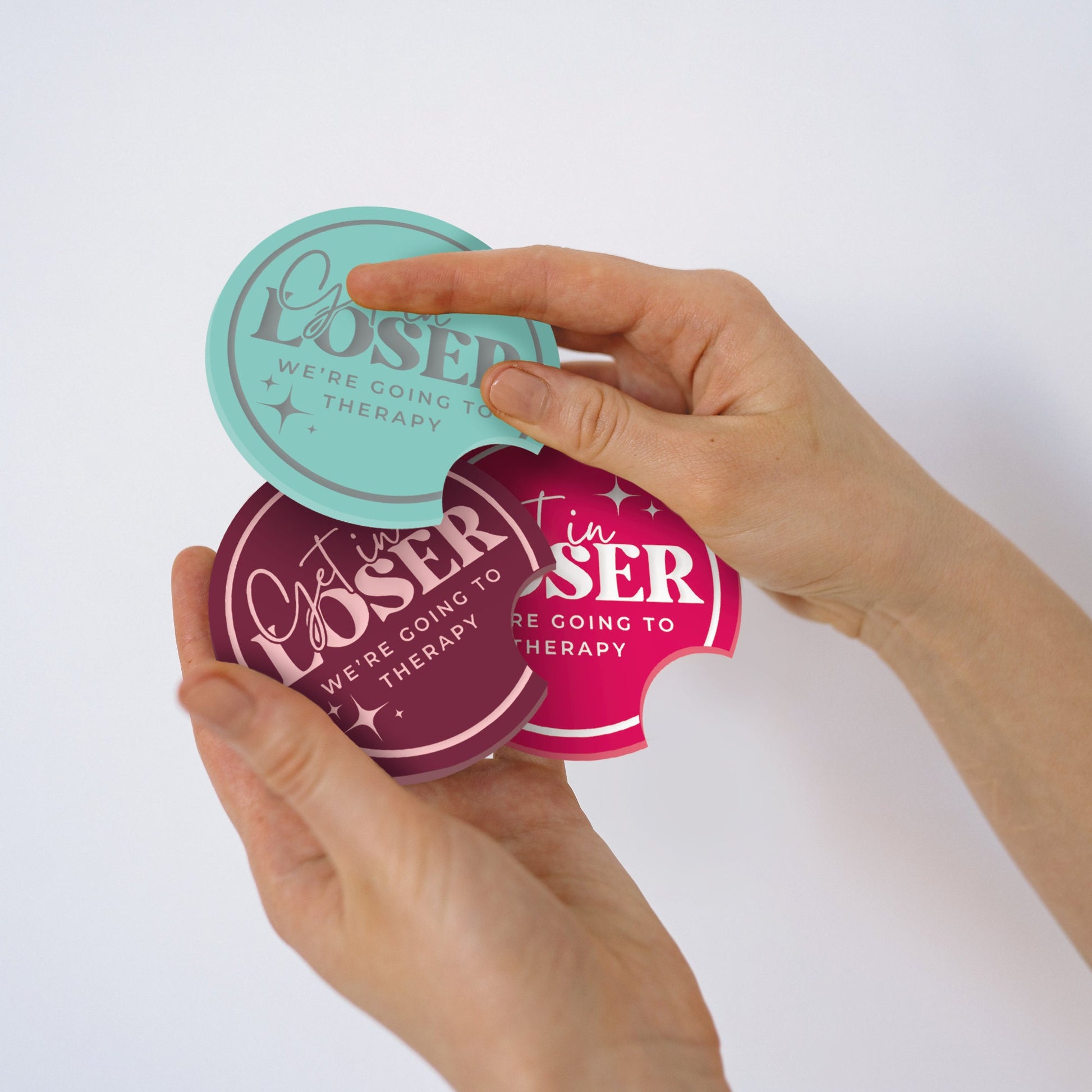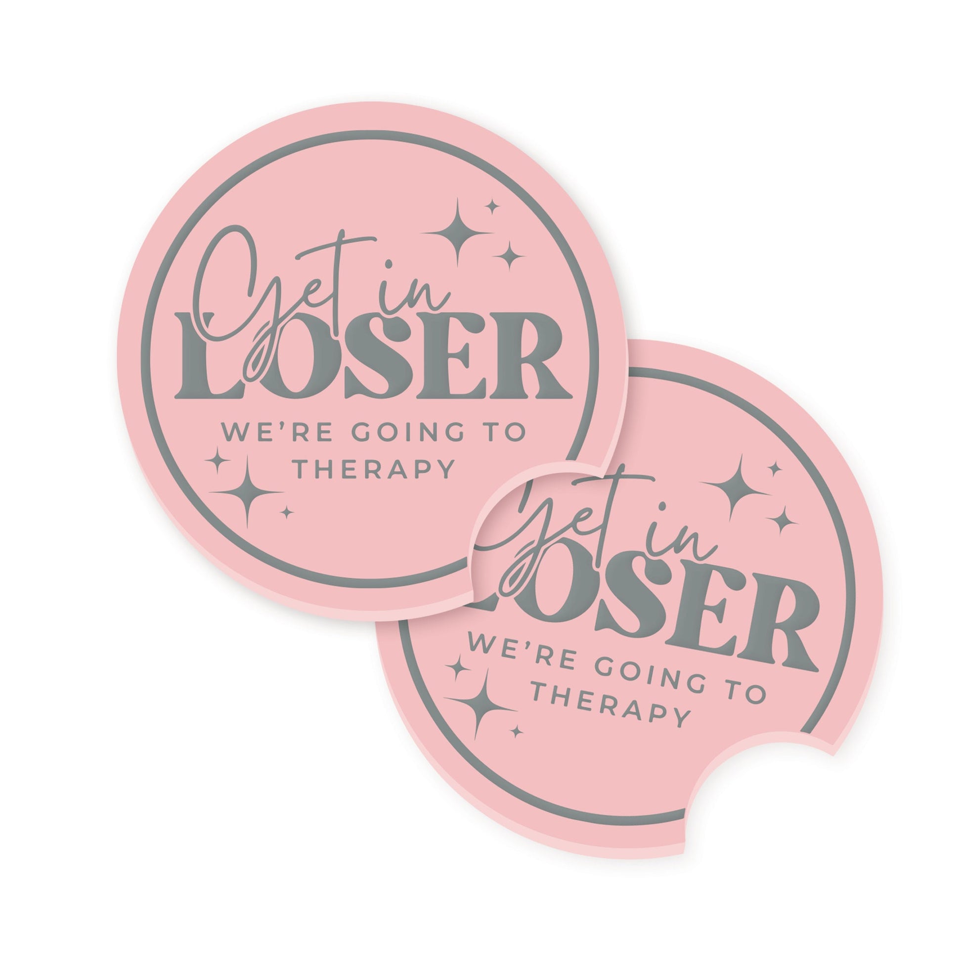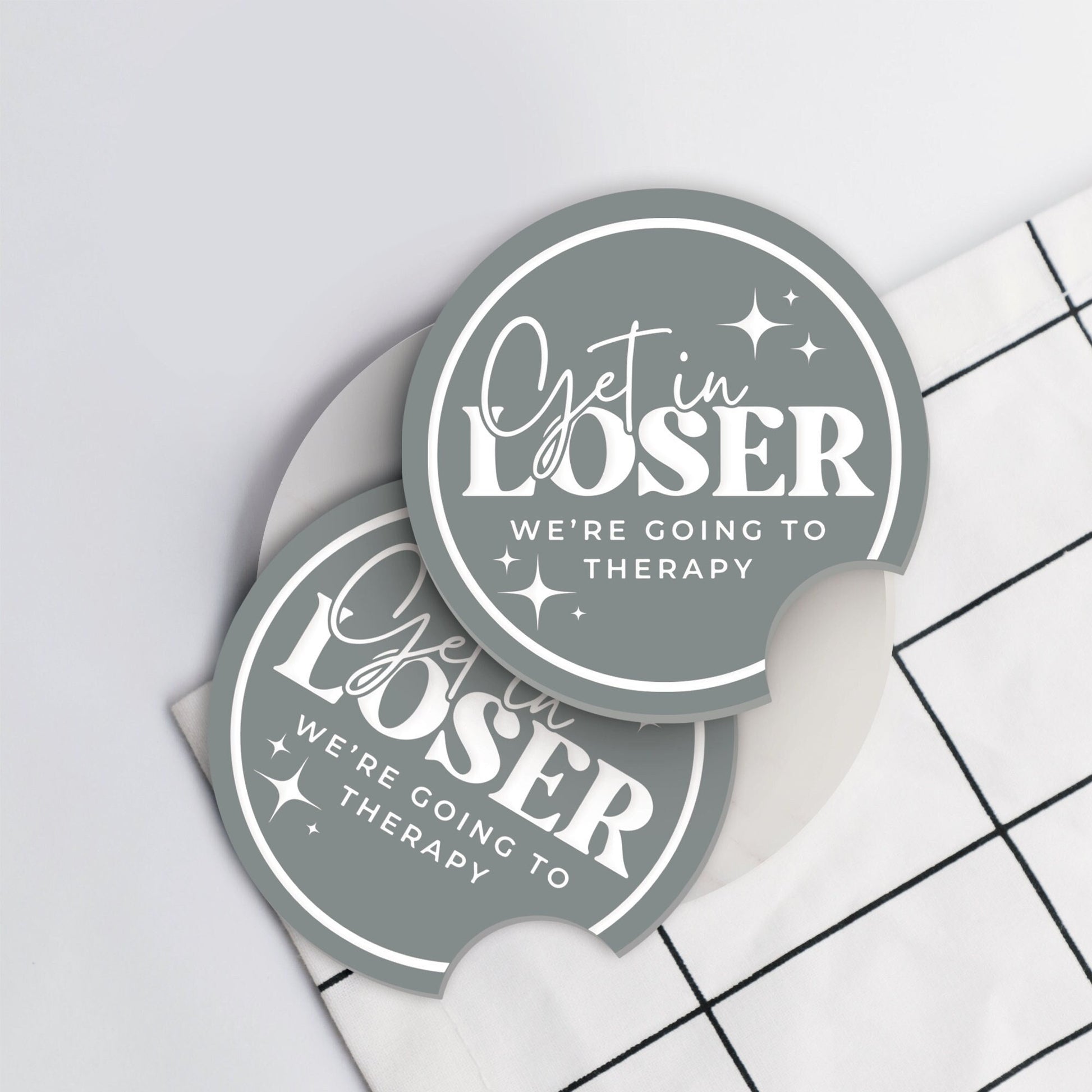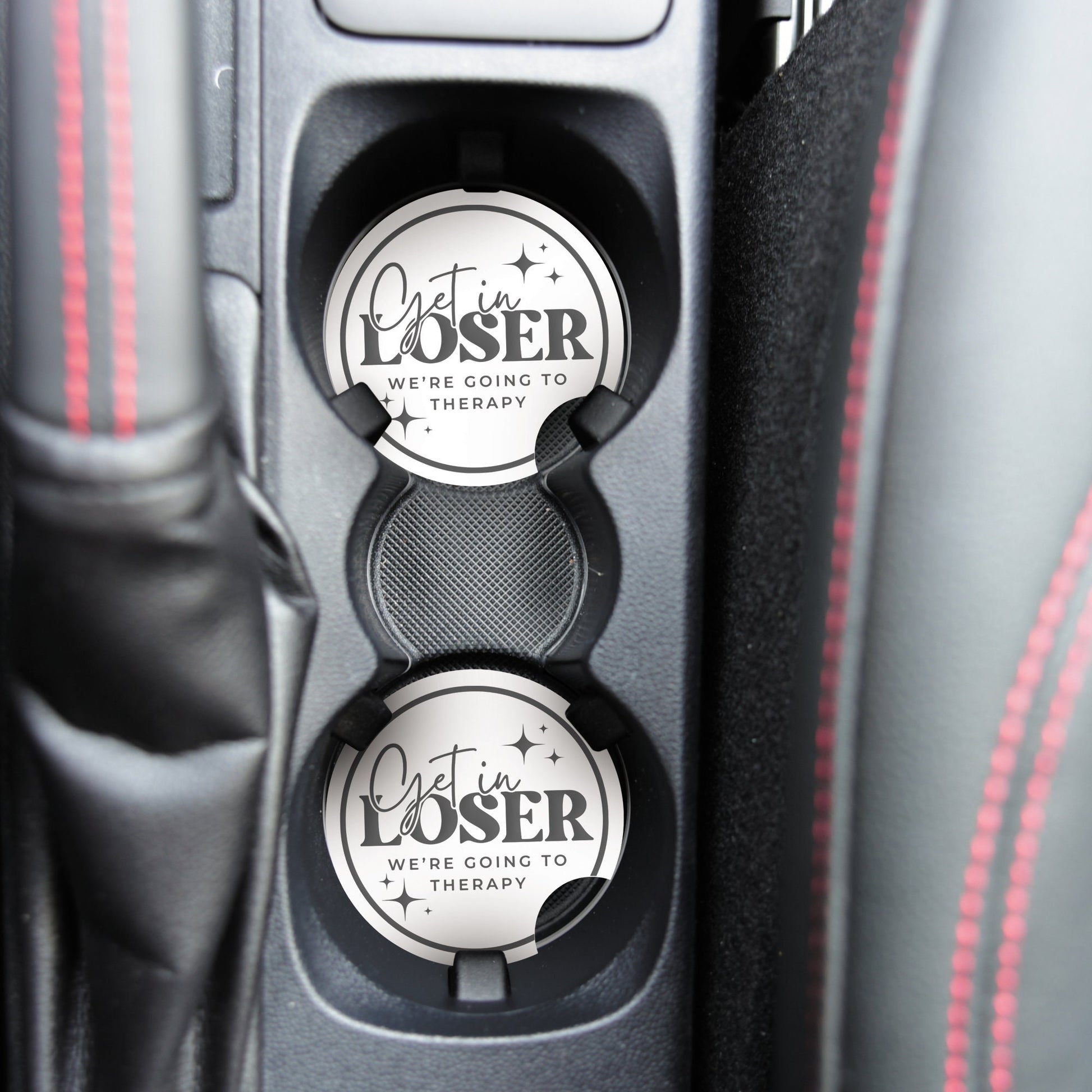 Therapy Car Coasters Set: Get In Loser Cup Holder Drinks Mat, Girly Car Gift, Car Lover, Quirky Car Accessories, Funny Cute Gift For Her
