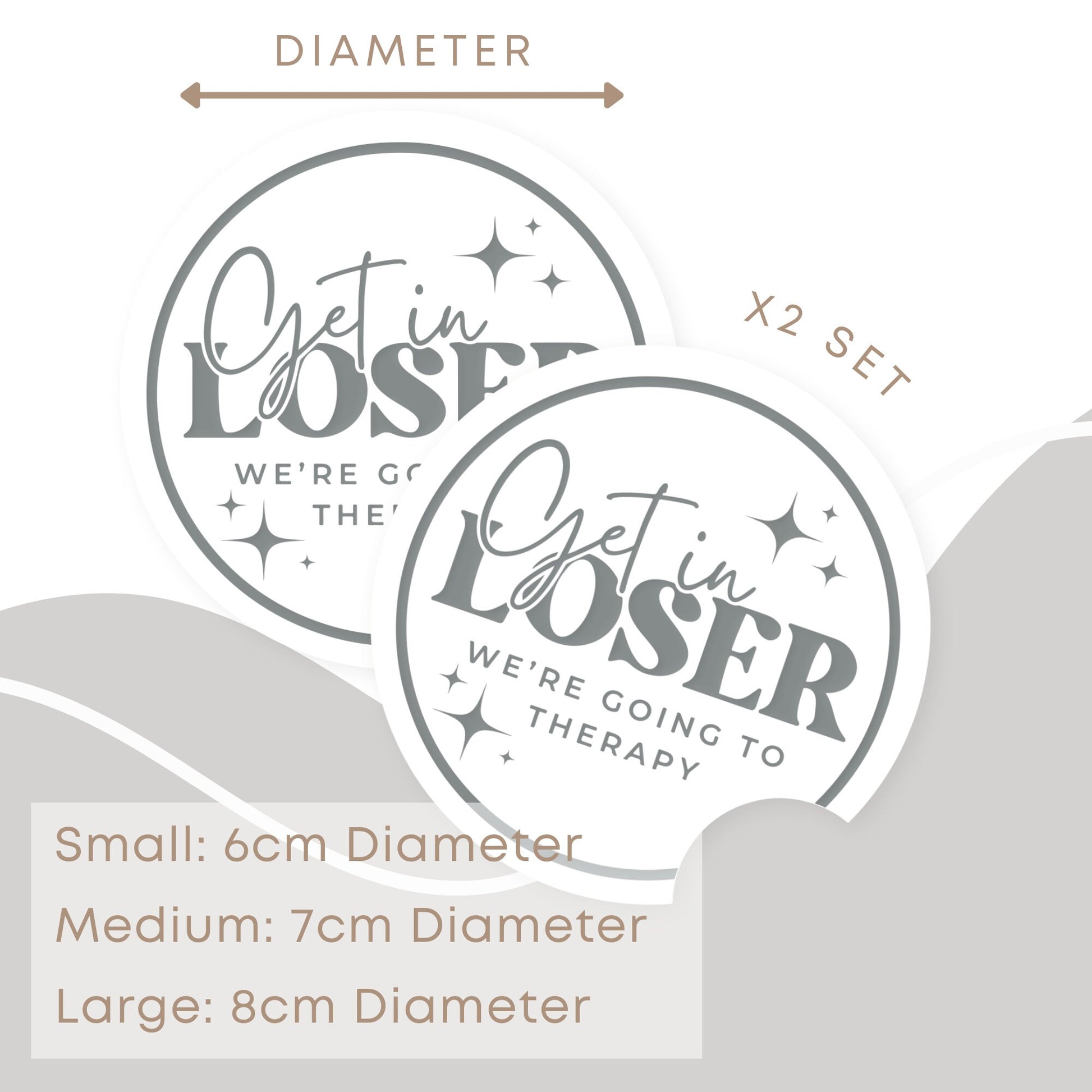 Revamp your car‘s interior with a touch of humor and style using our Car Coasters Set! This set includes two quirky acrylic coasters, each engraved with the statement phrase, "Get In Loser, We‘re Going to Therapy". Perfect for those who embrace a bit of humour as they embark on their therapeutic journey.