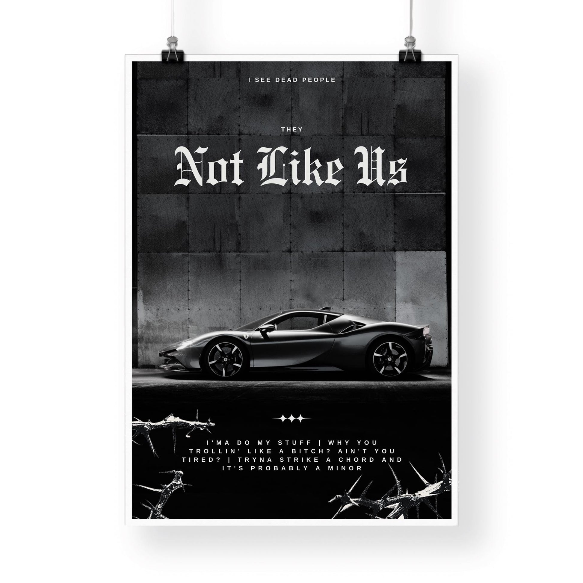 They Not Like Us - 01 Song Inspired Poster: Urban Wall Art, Luxury Car Print, Edgy Wall Art, Industrial Decor, Rap Lover, Music Home Decor