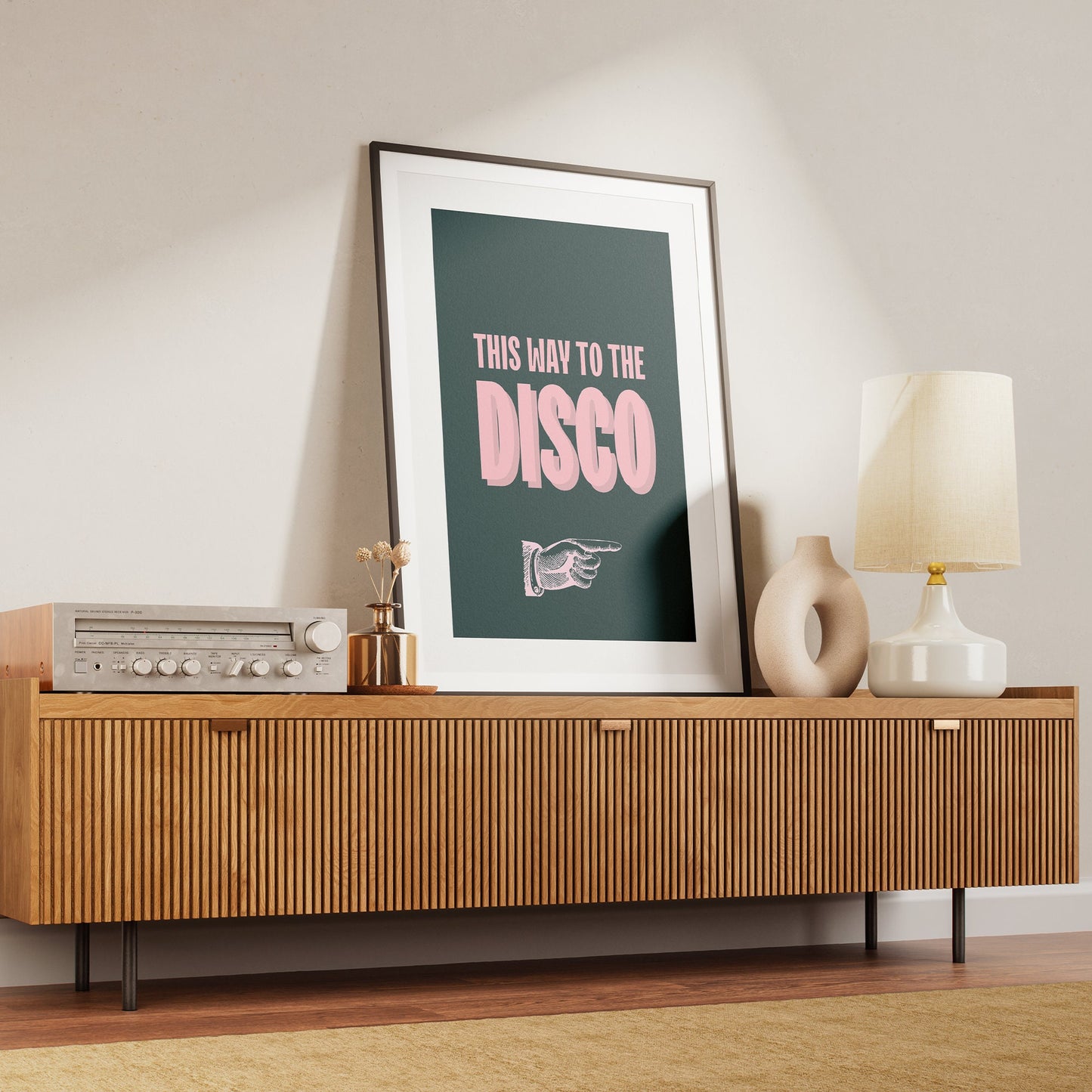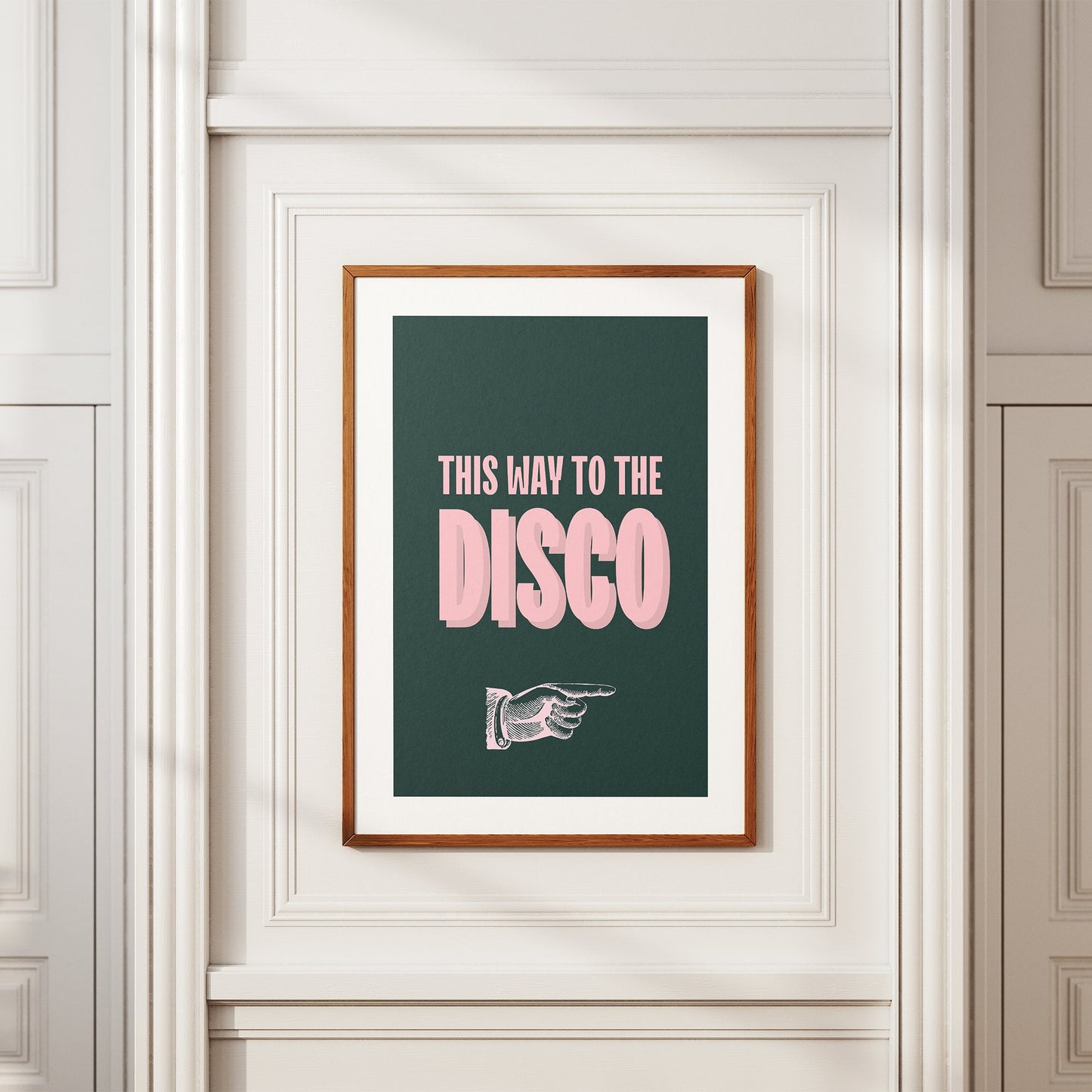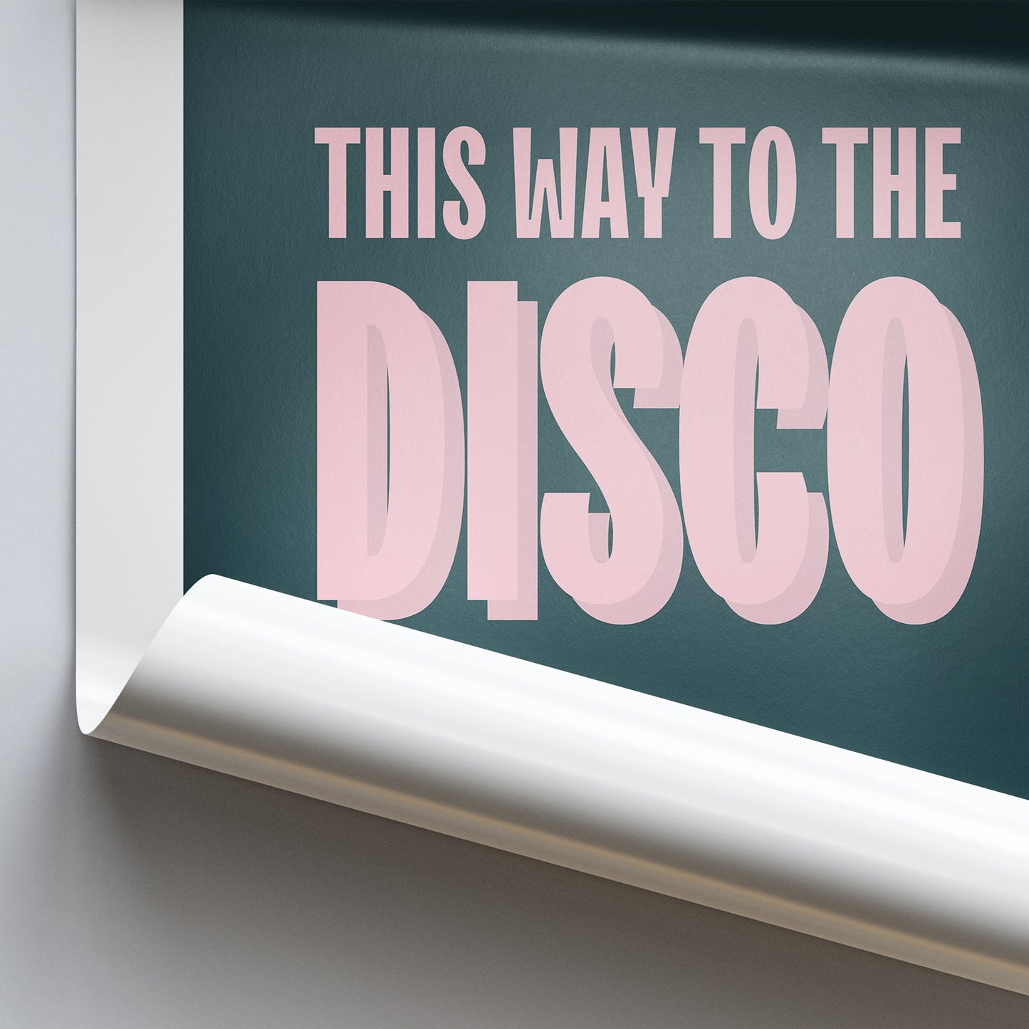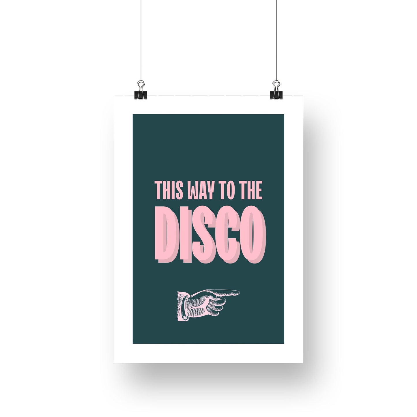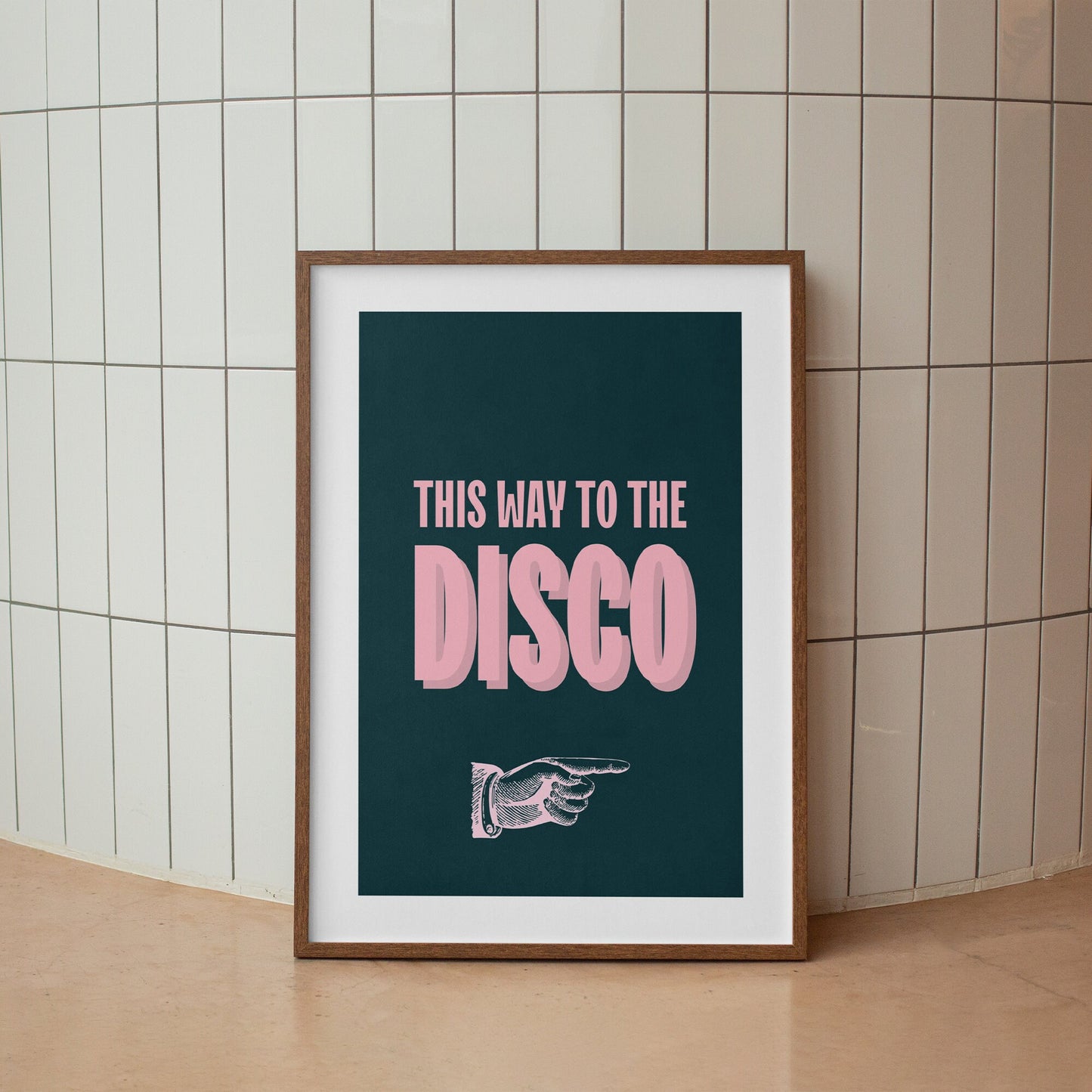 This Way To The Disco Poster: Typography Design, Home Decor, Modern Home Decor, Cool Print, Kitchen Decor, Wall Art, Vibrant Poster