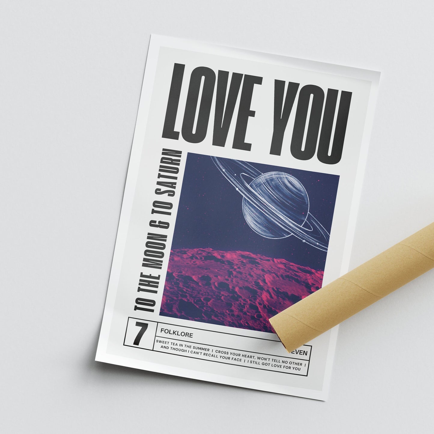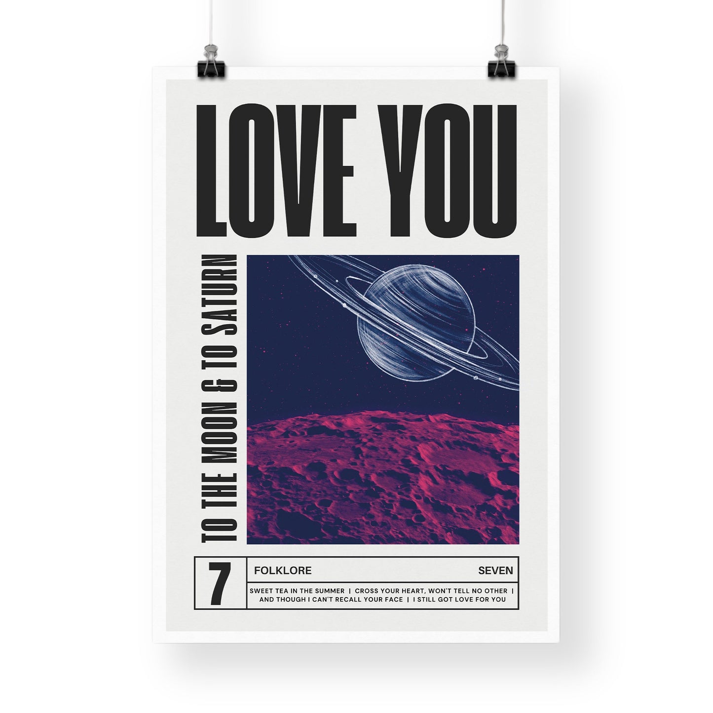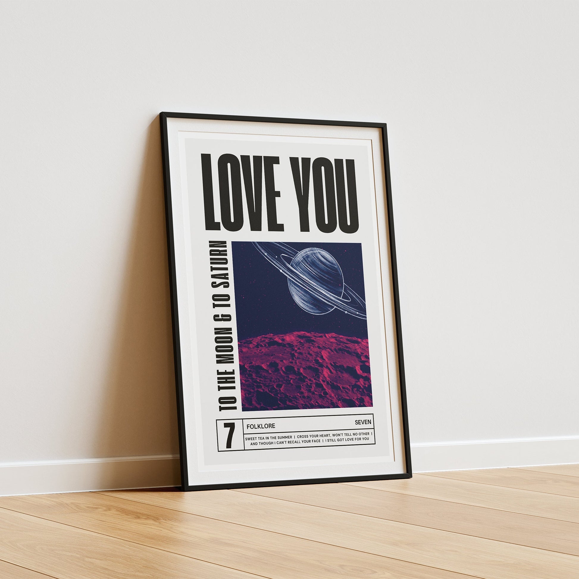 Celebrate your love with our stunning "Love You to the Moon and Saturn" poster, inspired by the heartfelt lyrics of Taylor Swift. This beautiful art print features a sleek typographic design, making it a perfect addition to any home decor.