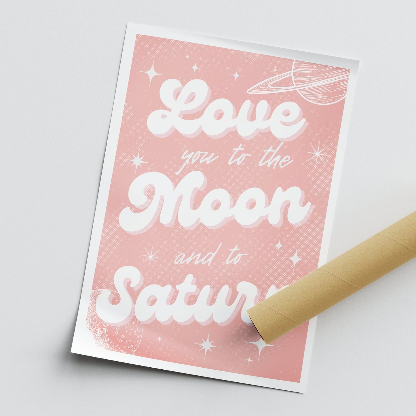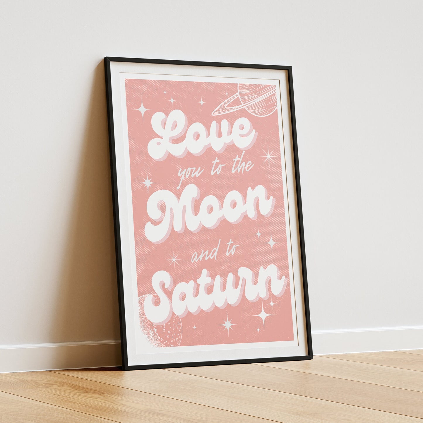 Celebrate your love with our stunning "Love You to the Moon and Saturn" poster, inspired by the heartfelt lyrics of Taylor Swift. This beautiful art print features a sleek typographic design, making it a perfect addition to any home decor.