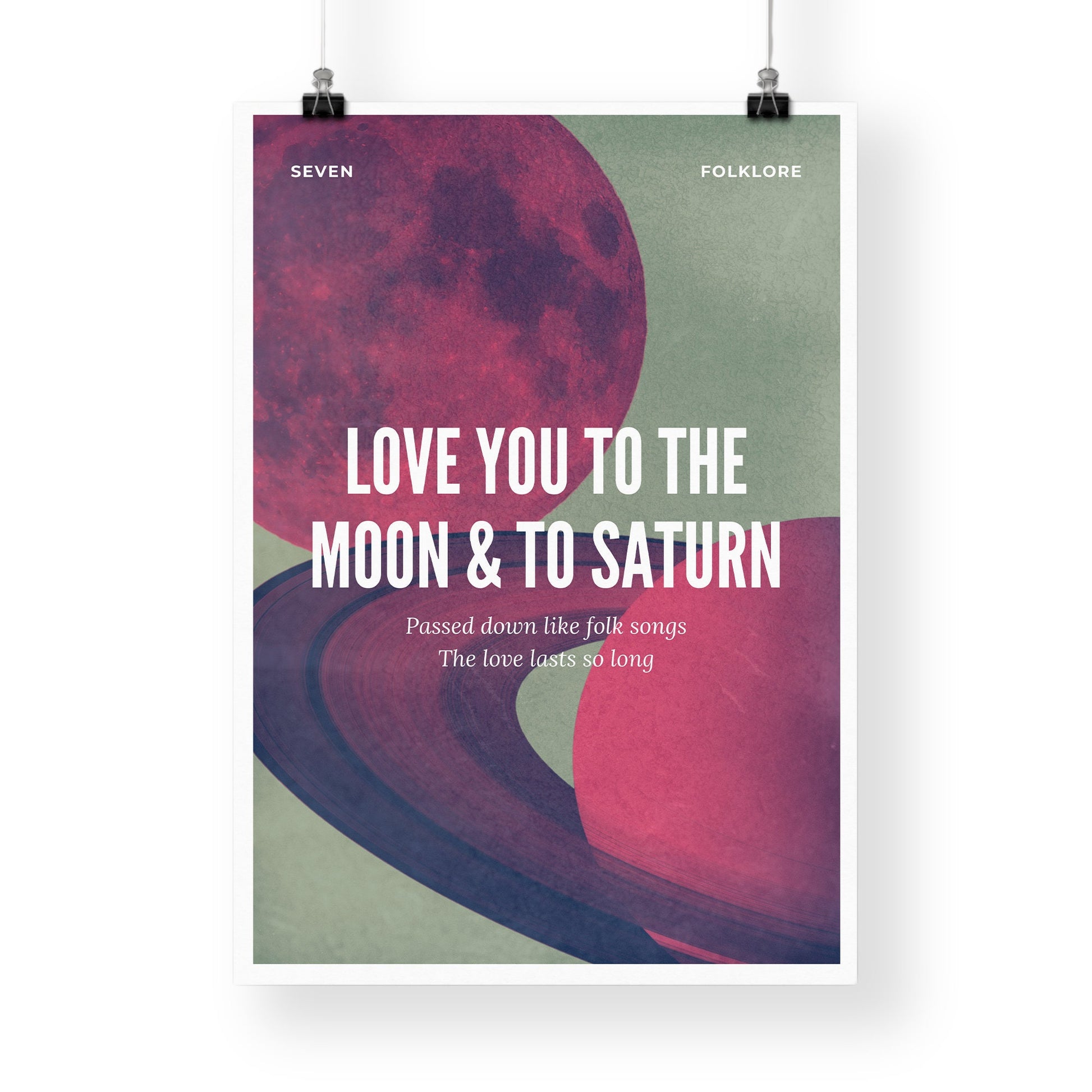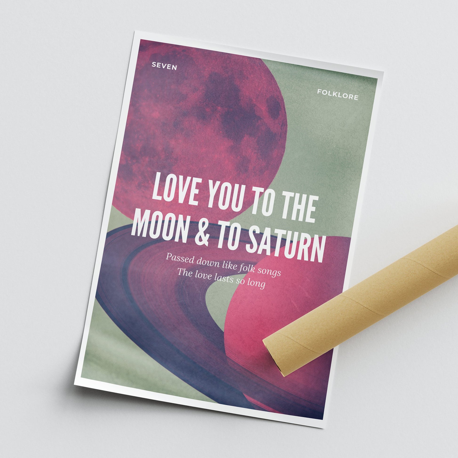 To The Moon & To Saturn - Risograph Style Poster: Taylor Swift Song-Inspired Print, Seven Quote Poster, Folklore Era Home Decor, Music Lover