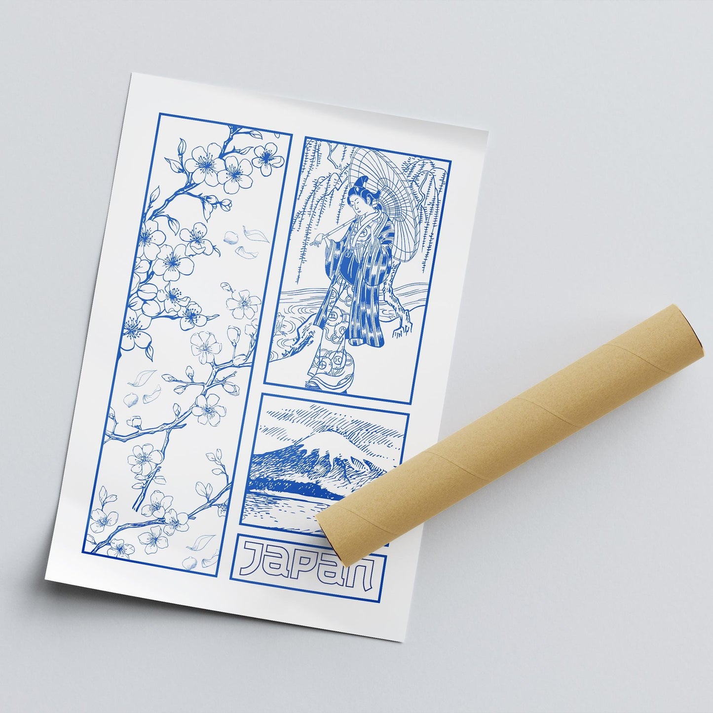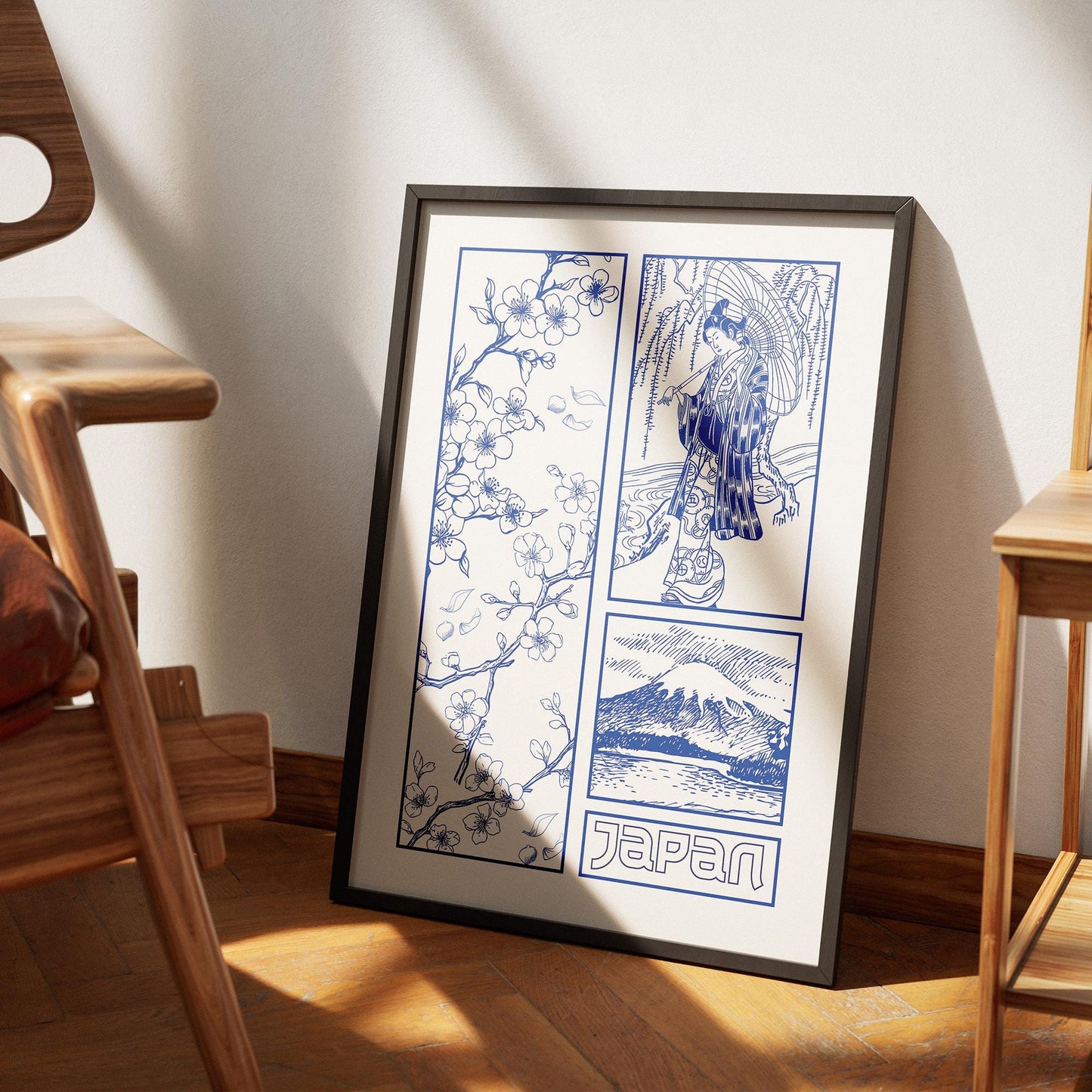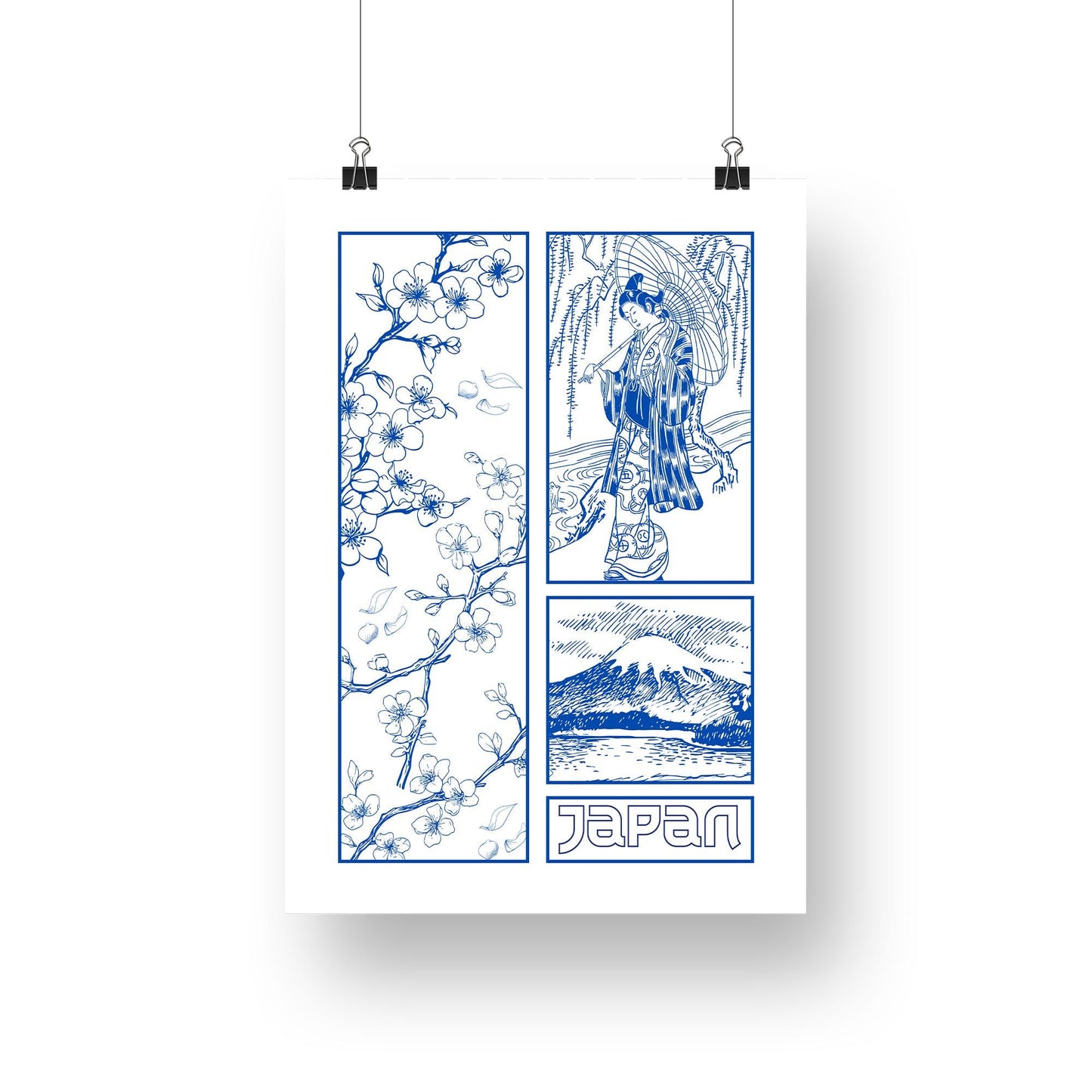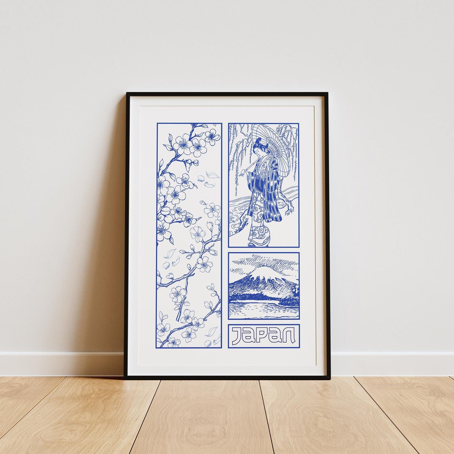 Tokyo Blue - Graphic Design Poster, Elegant Japanese Style Print, Bedroom Print, Cherry Blossom, Minimalist Wall Decor, Fine Line Poster
