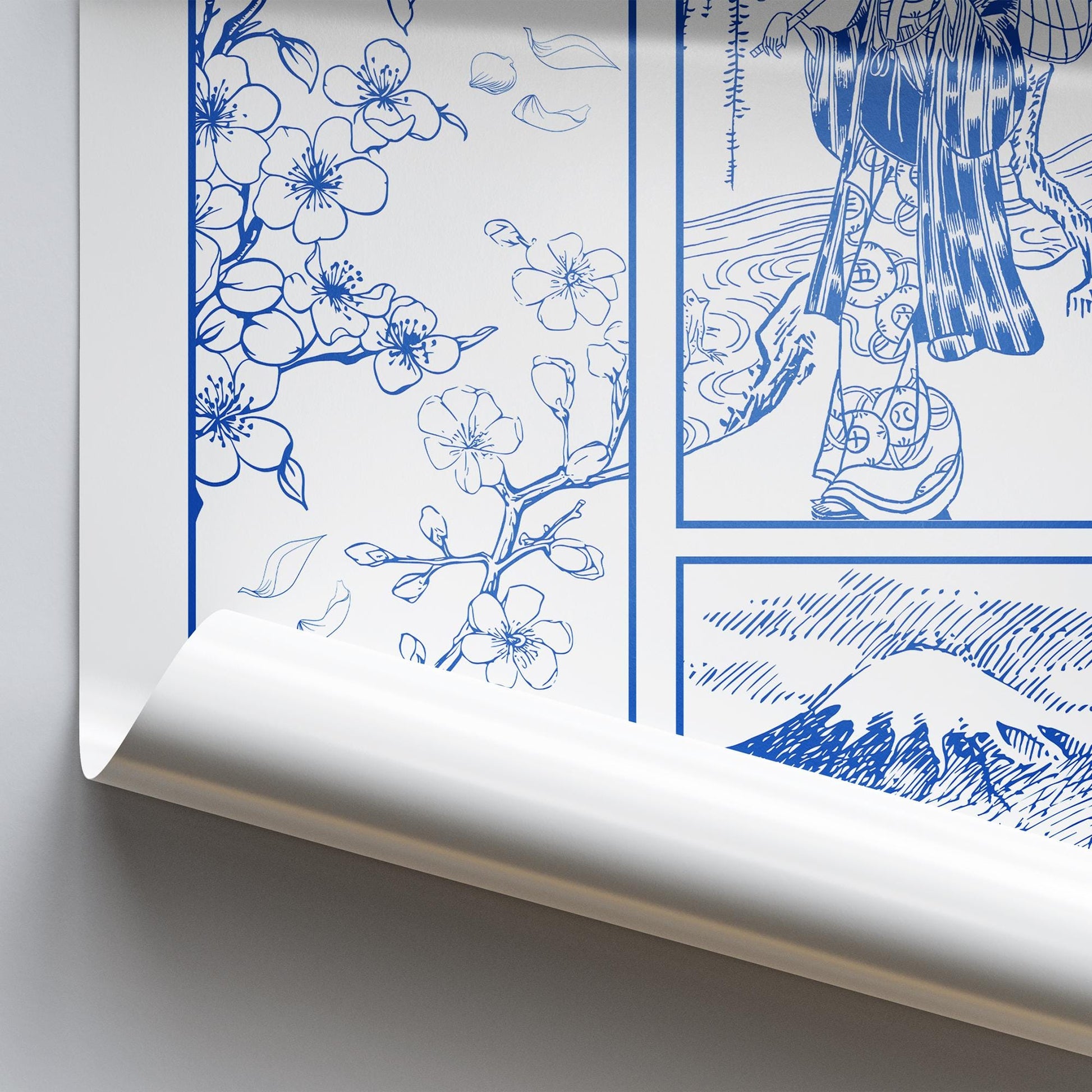 Elevate your space with the serene beauty of Japanese-inspired design. This fine-line art poster features delicate, flowing lines in calming blue tones, creating a minimalist yet sophisticated aesthetic. Perfect for lovers of Japanese art and simplicity, this piece captures the essence of tranquillity and balance.
