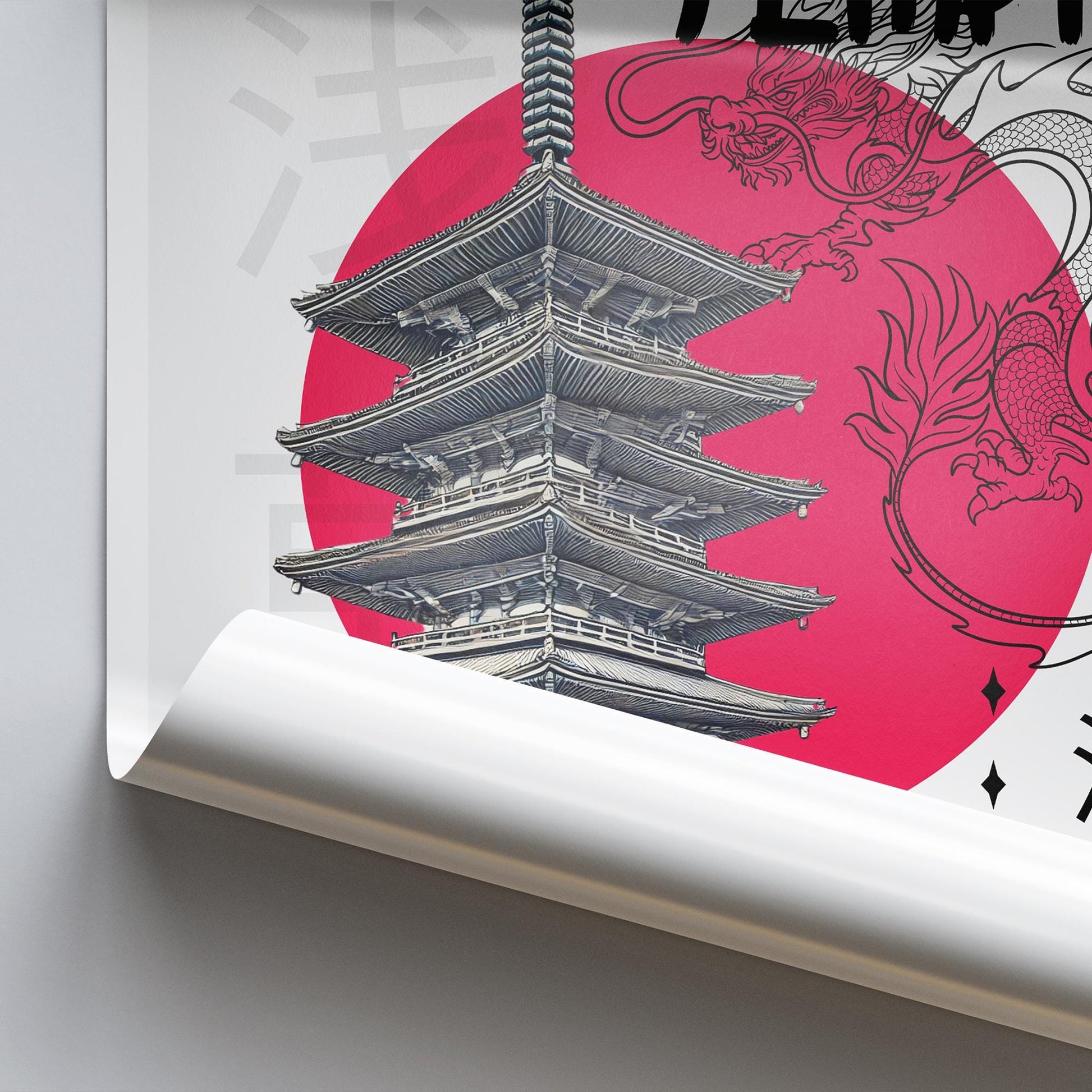 Hang this poster in your living room, office, or bedroom for an inspiring and artistic reminder of Japans rich history. Ideal as a gift for wanderlusters, design enthusiasts, or anyone who appreciates the fusion of modern art with traditional culture.