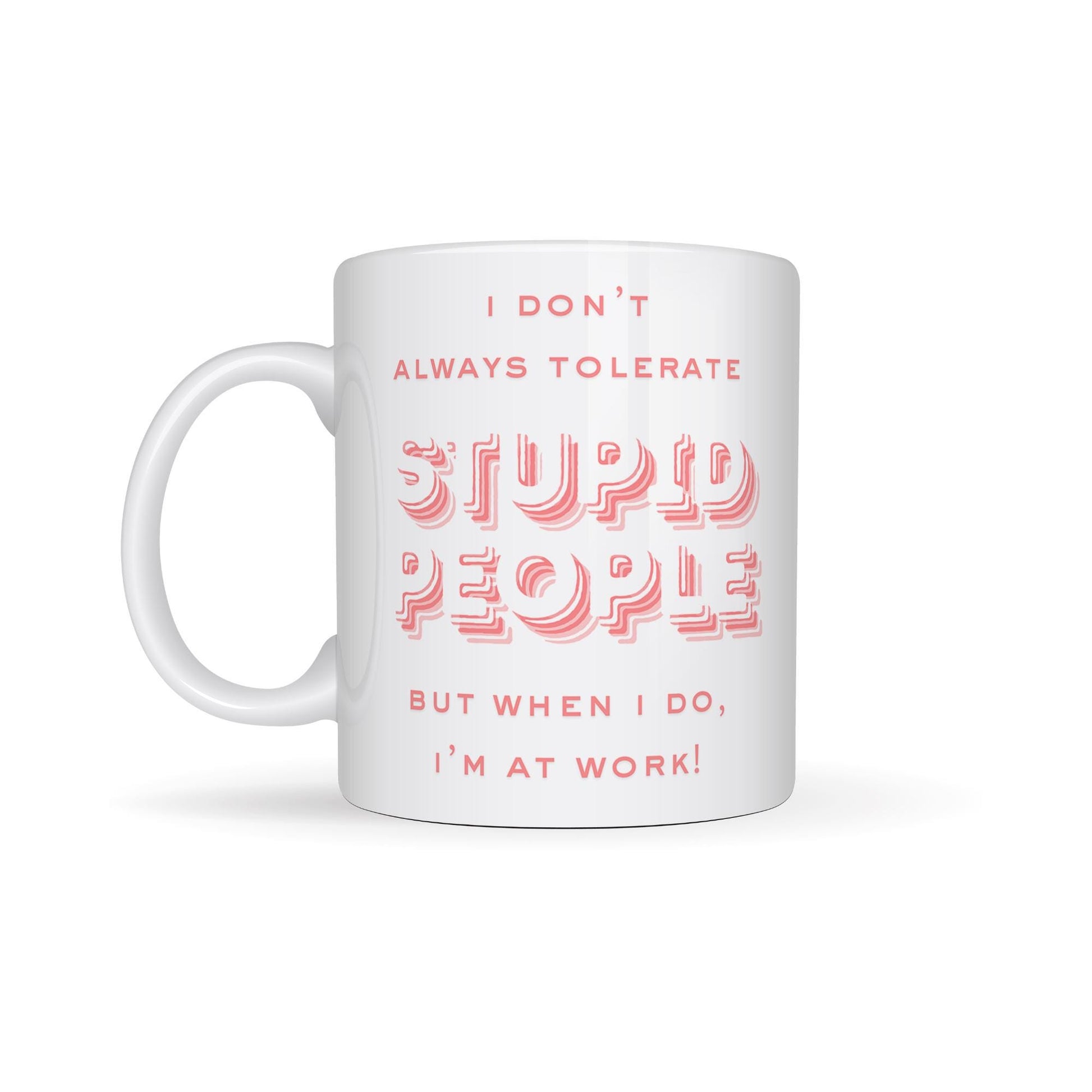 Tolerate Stupid People - Pink Mug: Office Humour Coffee Cup, Funny For Work Mug, Gift For Friend, Colleague, Manager or Boss, Secret Santa