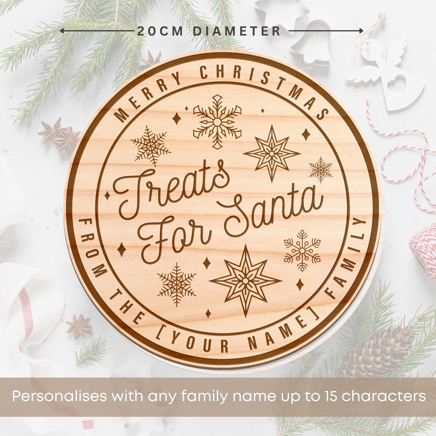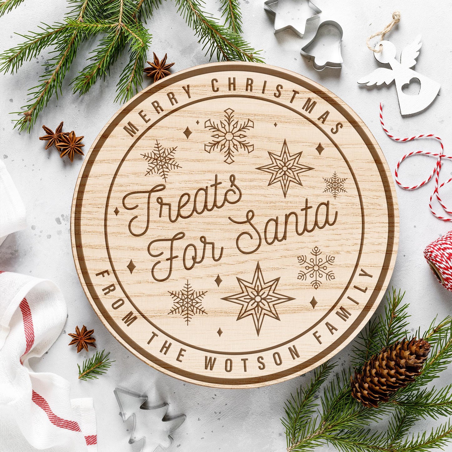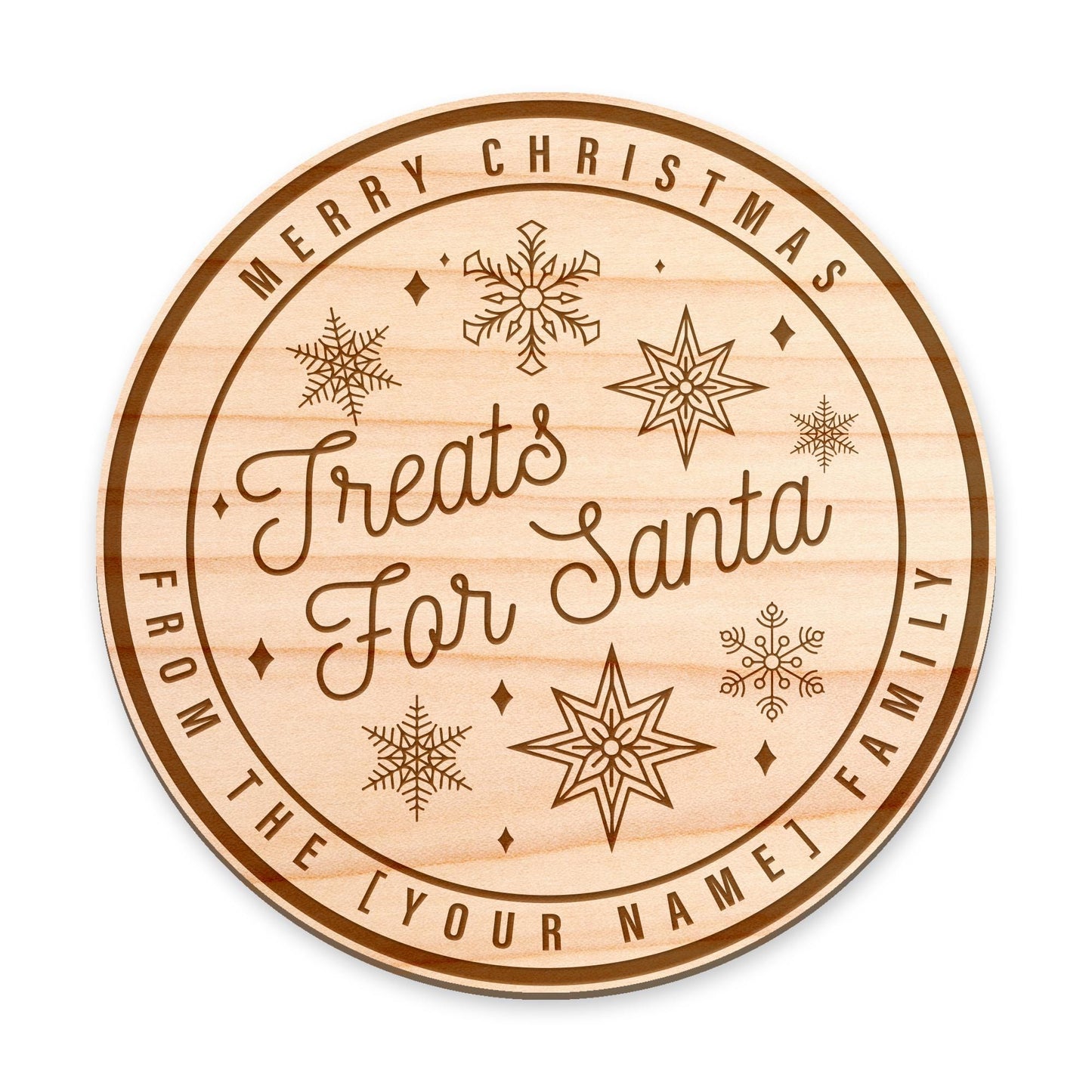 Treats for Santa - Snow Plate: Christmas Eve Santa Tray, Personalised Wooden Santa Claus Treat Board, Xmas Milk & Cookie Plate