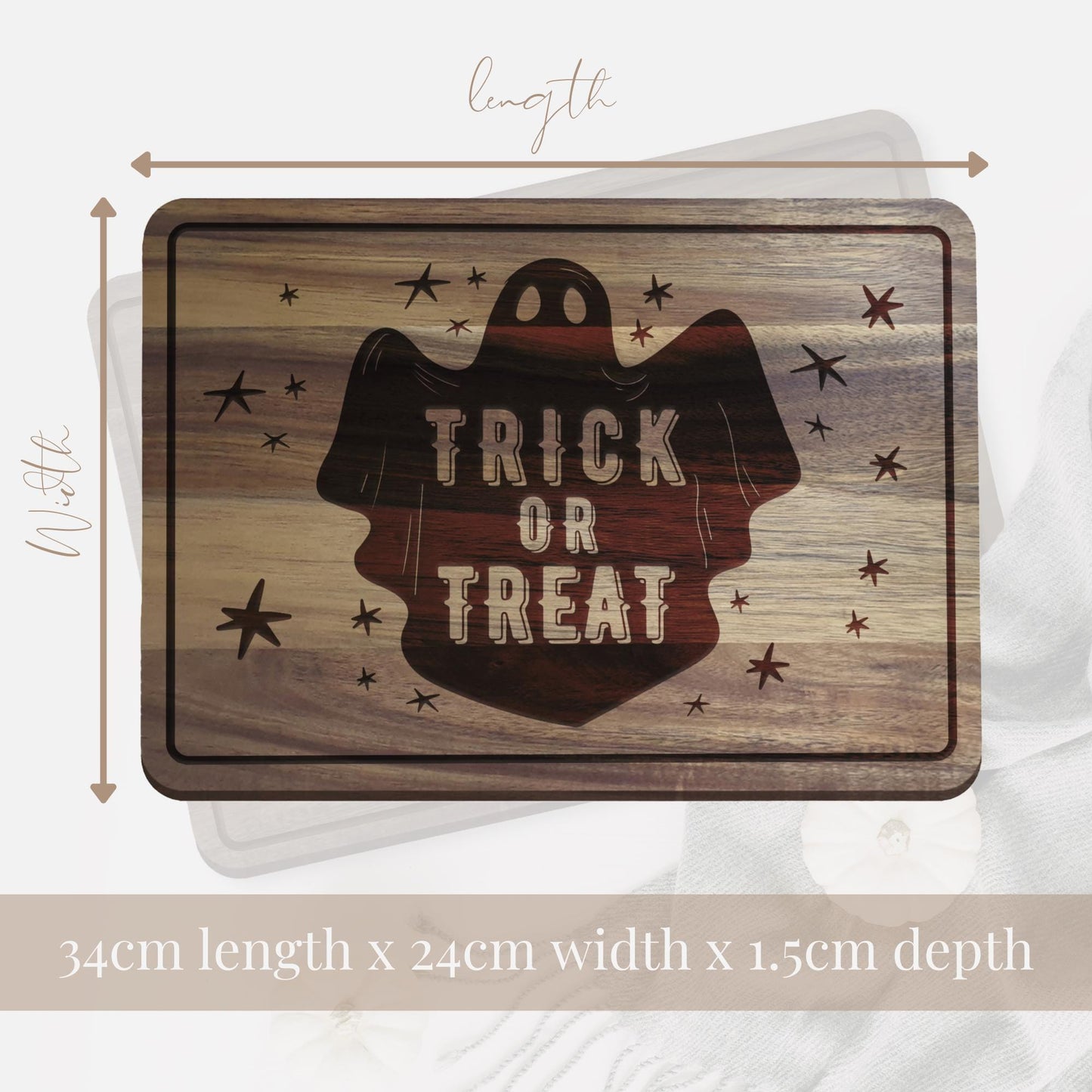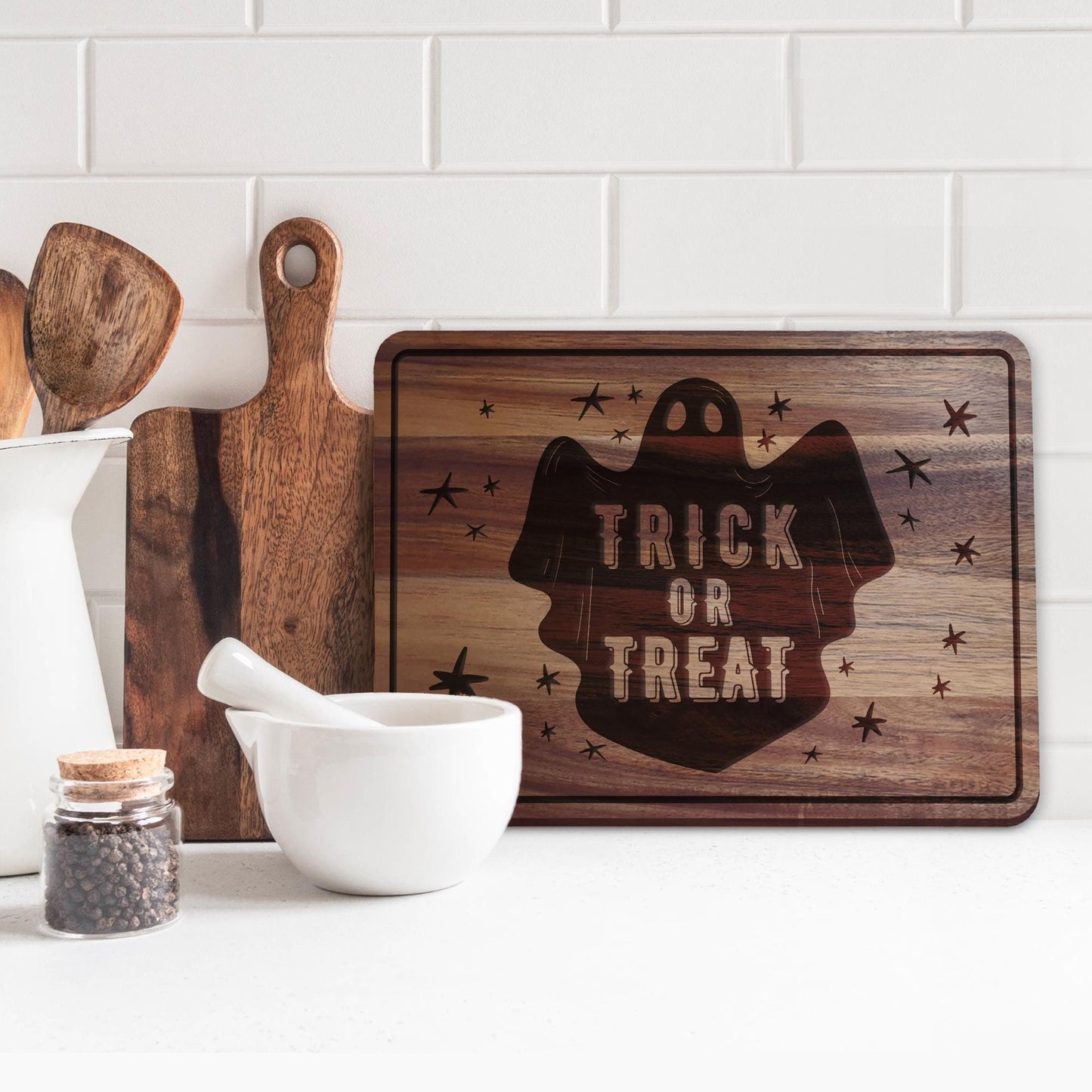 Trick or Treat Chopping Board - 01: Halloween Kitchen Decor, Spooky Season Wood Cutting Board, Autumnal Home Accessories Gift, Fall Vibes
