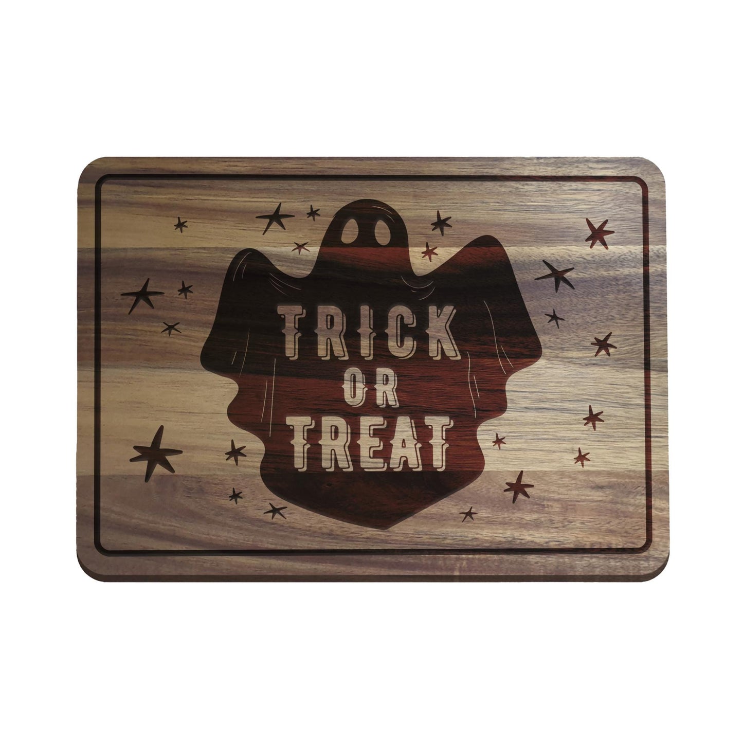 Add a touch of spooky charm to your kitchen with our "Trick or Treat" Acacia wood chopping board! Perfect for Halloween lovers, this beautifully engraved board combines functionality with festive flair. Made from premium Acacia wood, known for its durability and striking grain patterns, this cutting board is ideal for everyday use or as a statement piece in your seasonal kitchen decor.