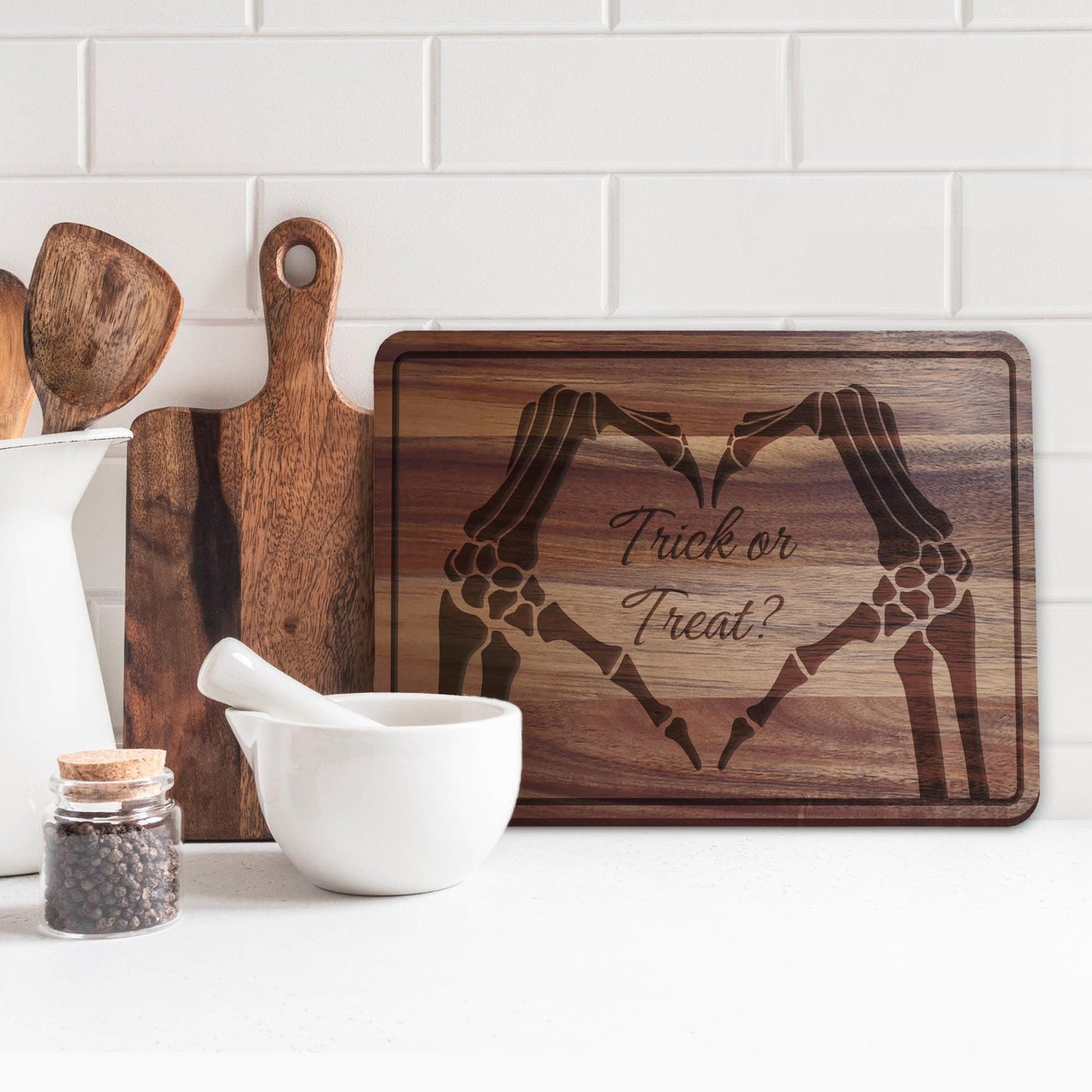 Trick or Treat Chopping Board - 07: Halloween Kitchen Decor, Spooky Season Wood Cutting Board, Autumnal Home Accessories Gift, Fall Vibes