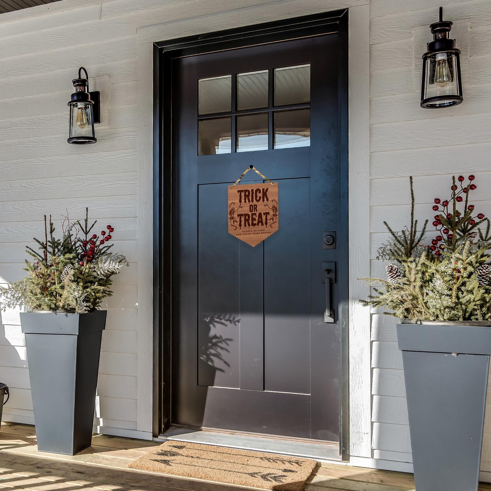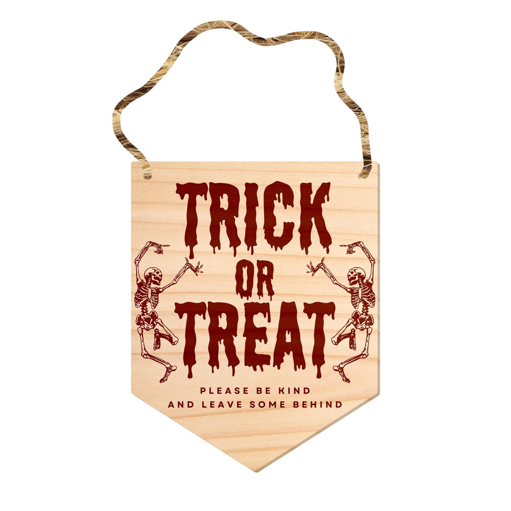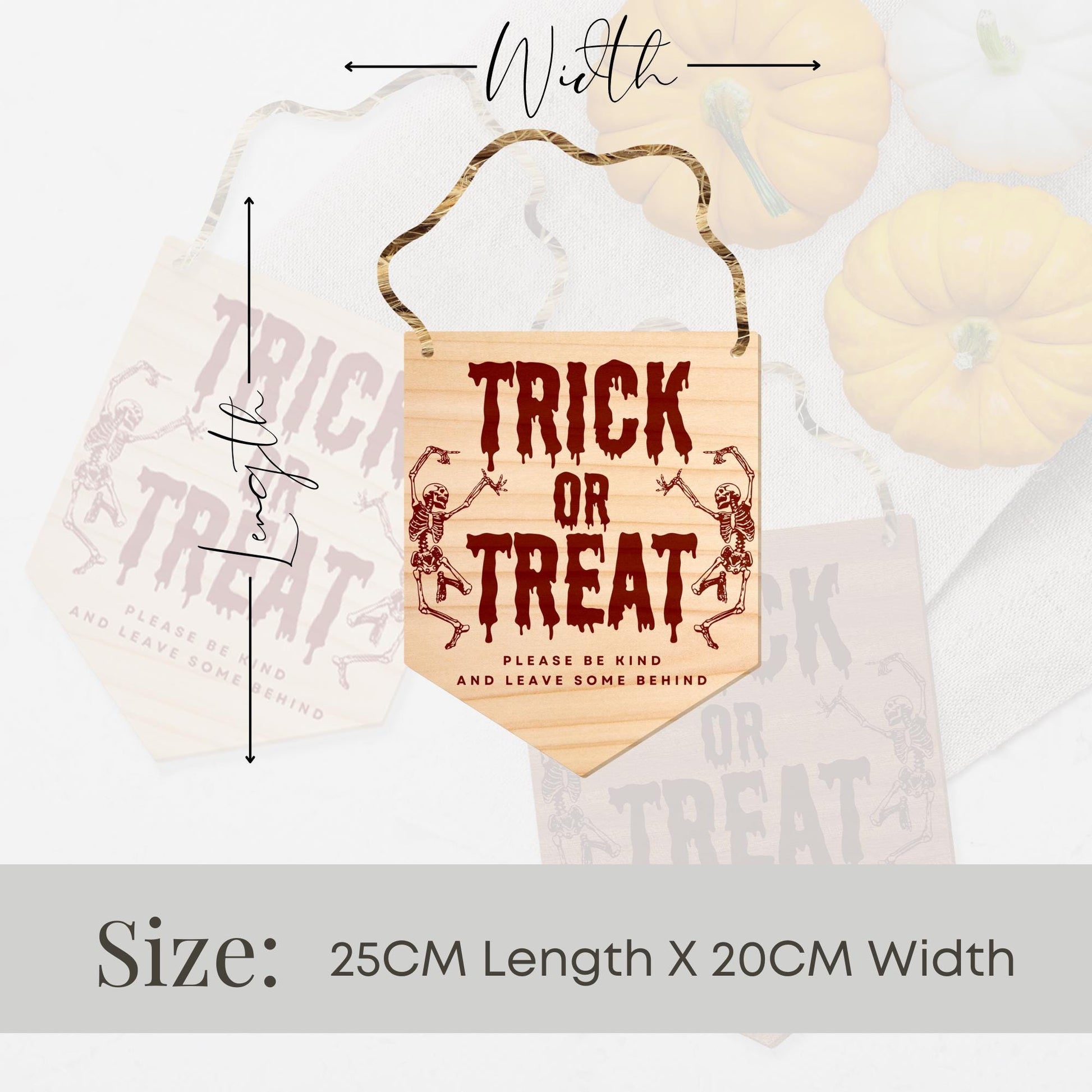 Trick Or Treat - Skeleton Front Door Halloween Sign, Wooden Door Plaque, Cute Spooky Sign, Halloween Decor, Reusable Halloween Decor