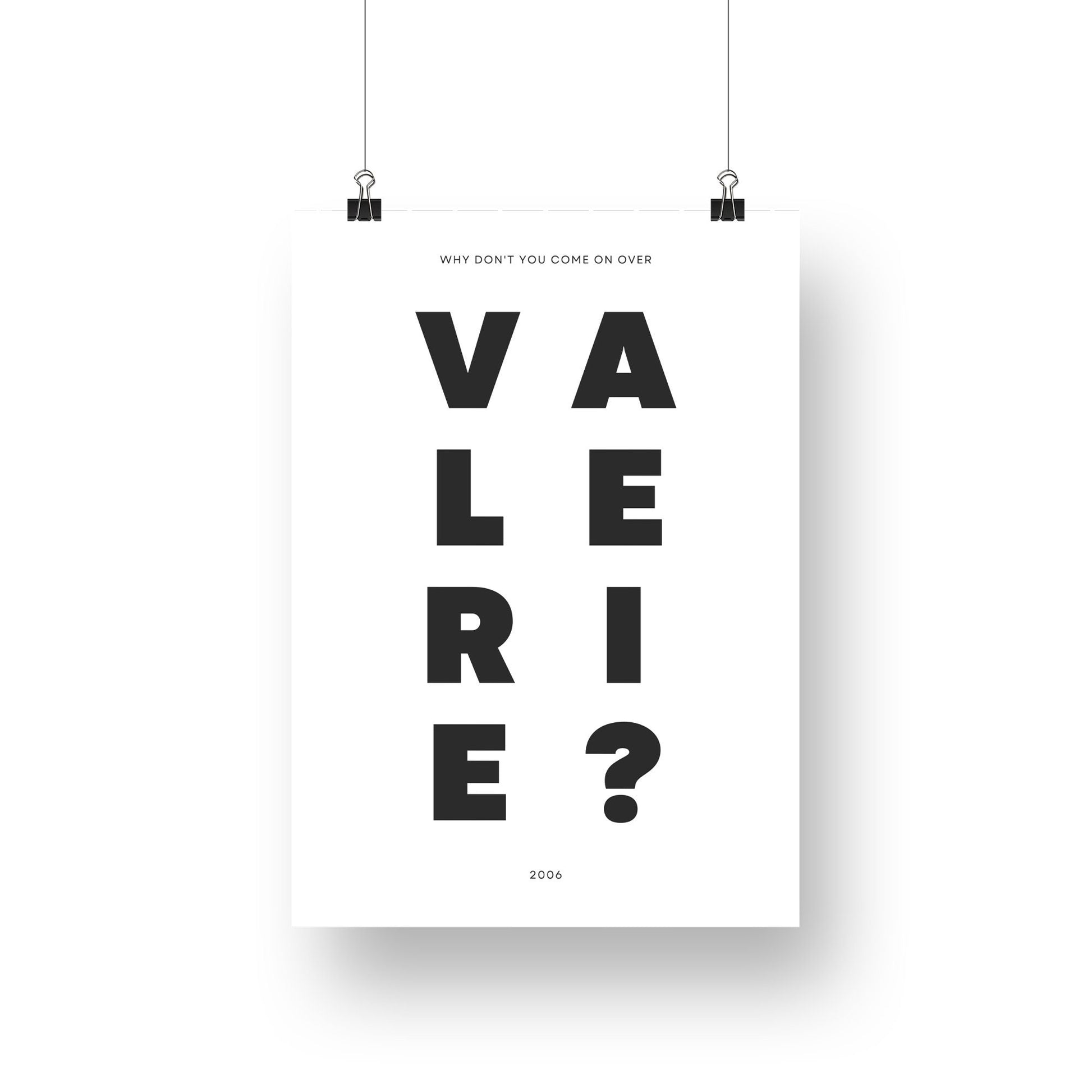 Valerie Bold Text Design Poster - Amy Winehouse Song-Inspired Gloss Print, Quote Poster, Home Decor, Music Lyric Print, Music Lover