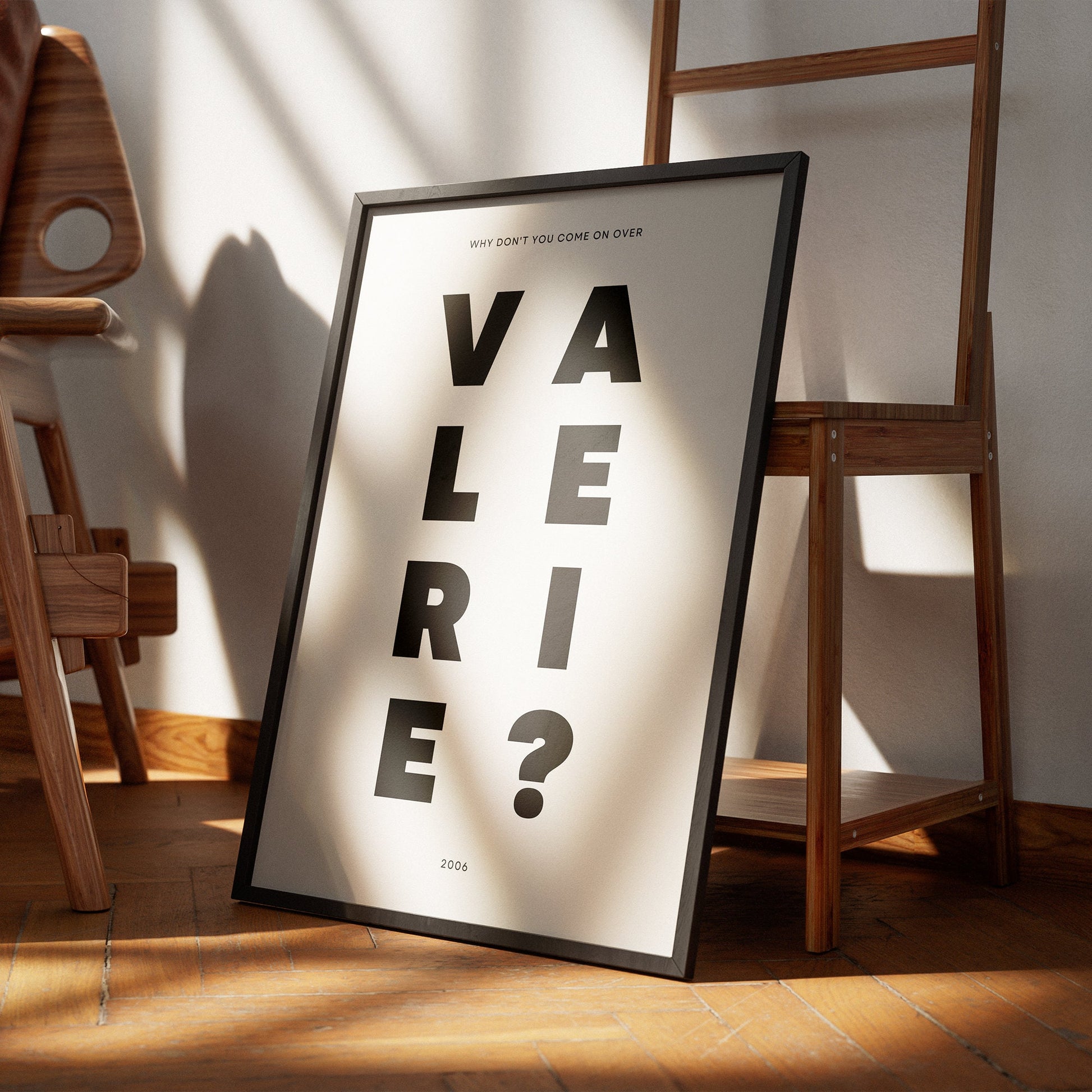 Bring a touch of musical nostalgia to your home with our exclusive "Why Don‘t You Come On Over, Valerie?" music poster. Perfect for fans of Amy Winehouse and her soulful rendition of this iconic song, this art piece captures the essence of the melody and the emotion behind the lyrics.