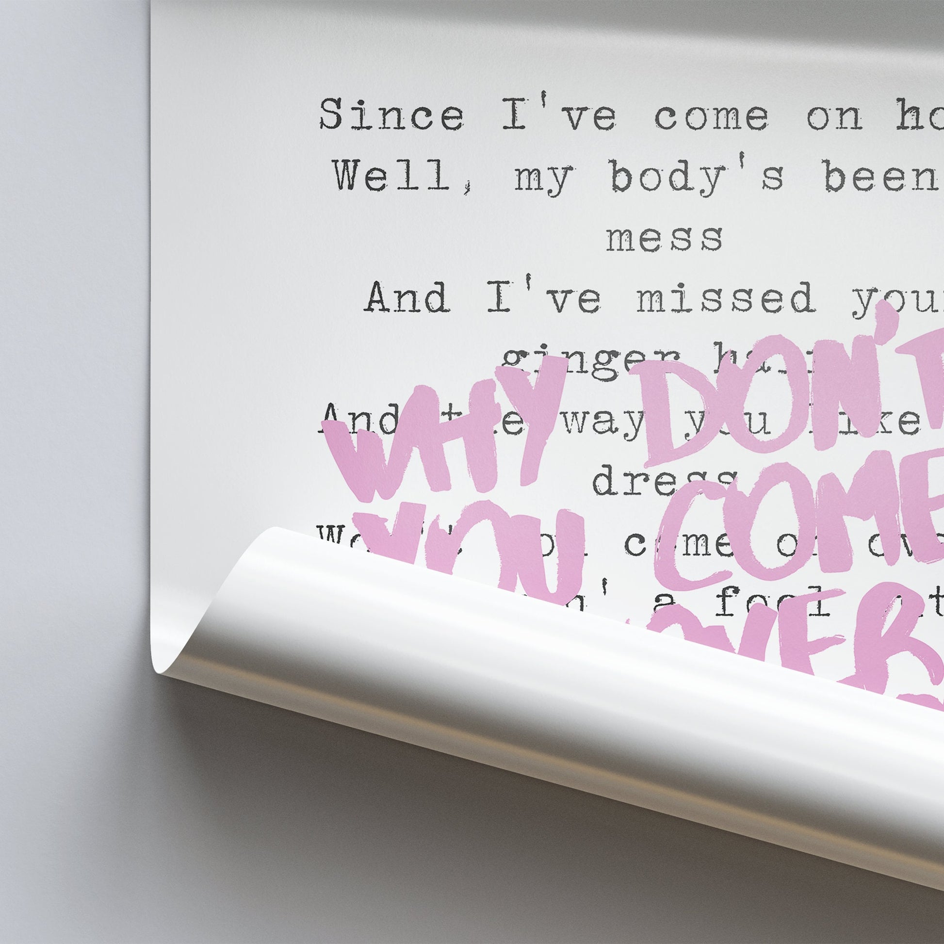 Valerie Pink Script Design Poster - Amy Winehouse Song-Inspired Gloss Print, Quote Poster, Home Decor, Music Lyric Print, Music Lover