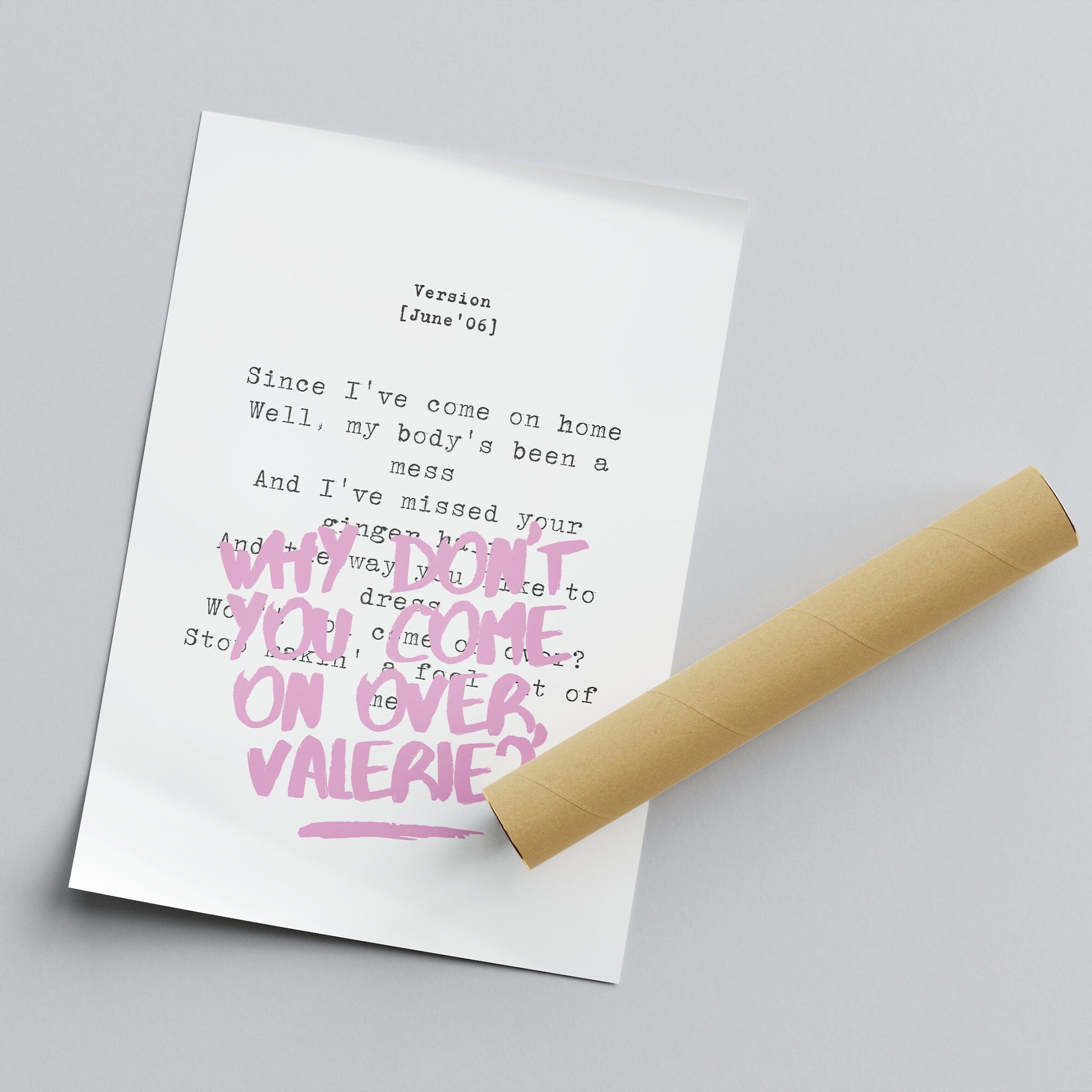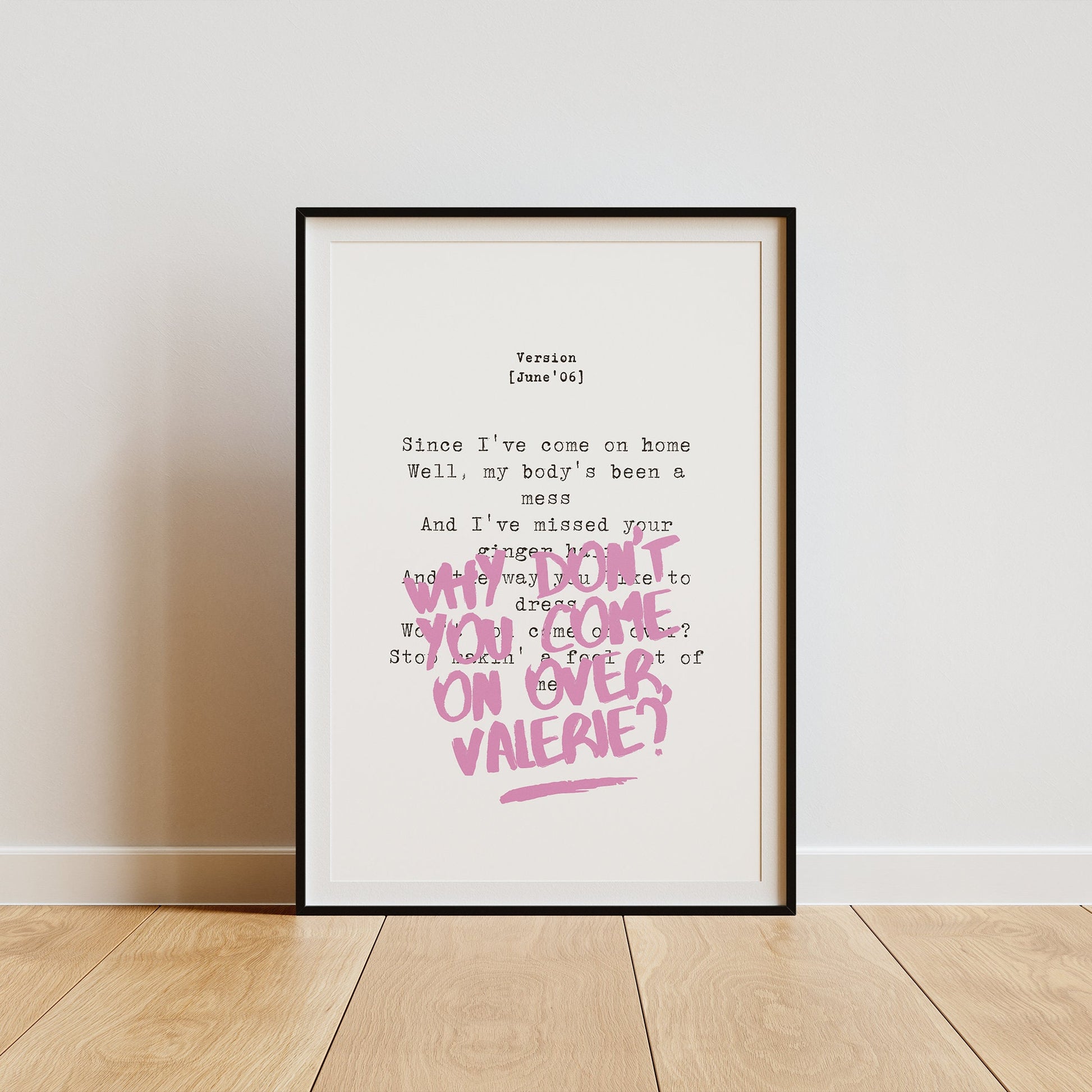 Bring a touch of musical nostalgia to your home with our exclusive "Why Don‘t You Come On Over, Valerie?" music poster. Perfect for fans of Amy Winehouse and her soulful rendition of this iconic song, this art piece captures the essence of the melody and the emotion behind the lyrics.