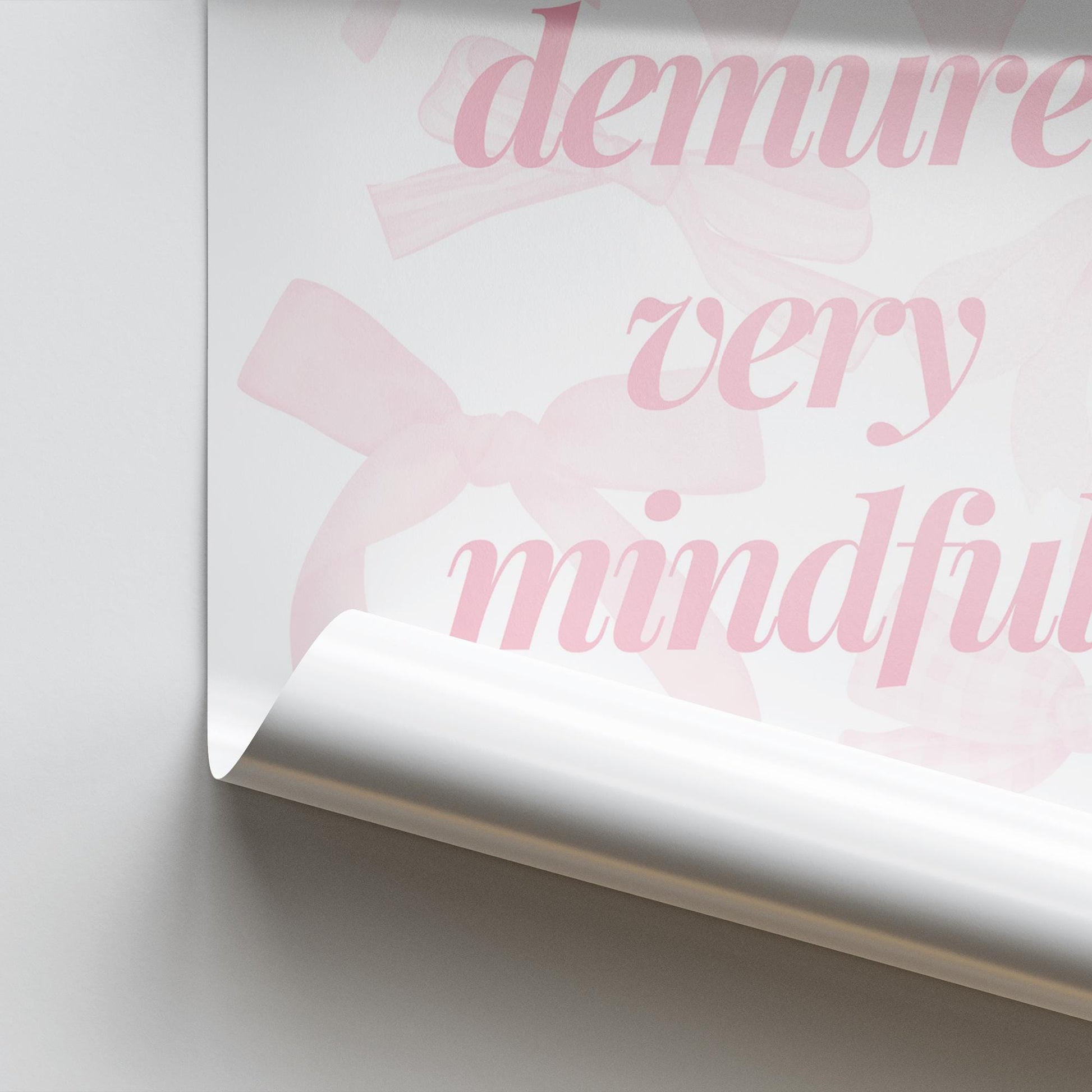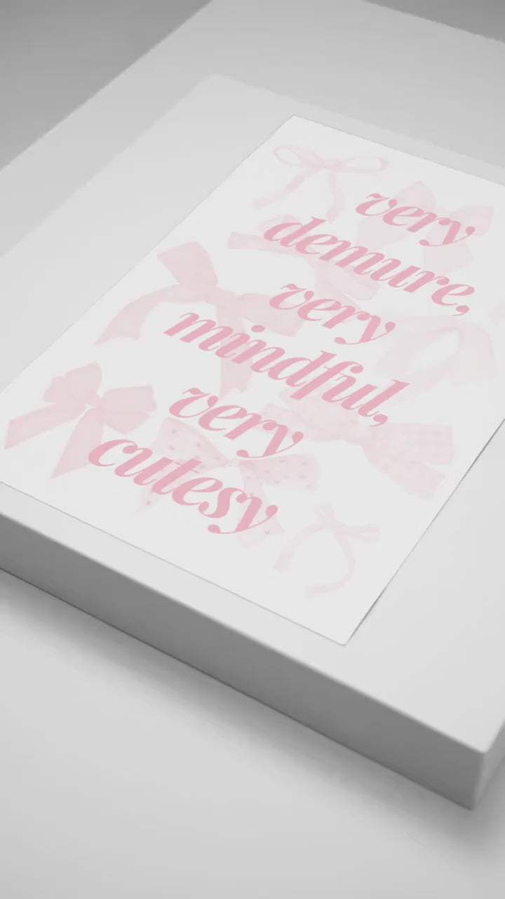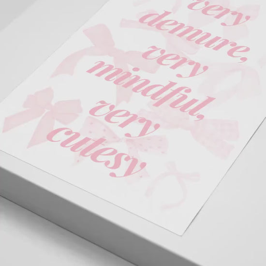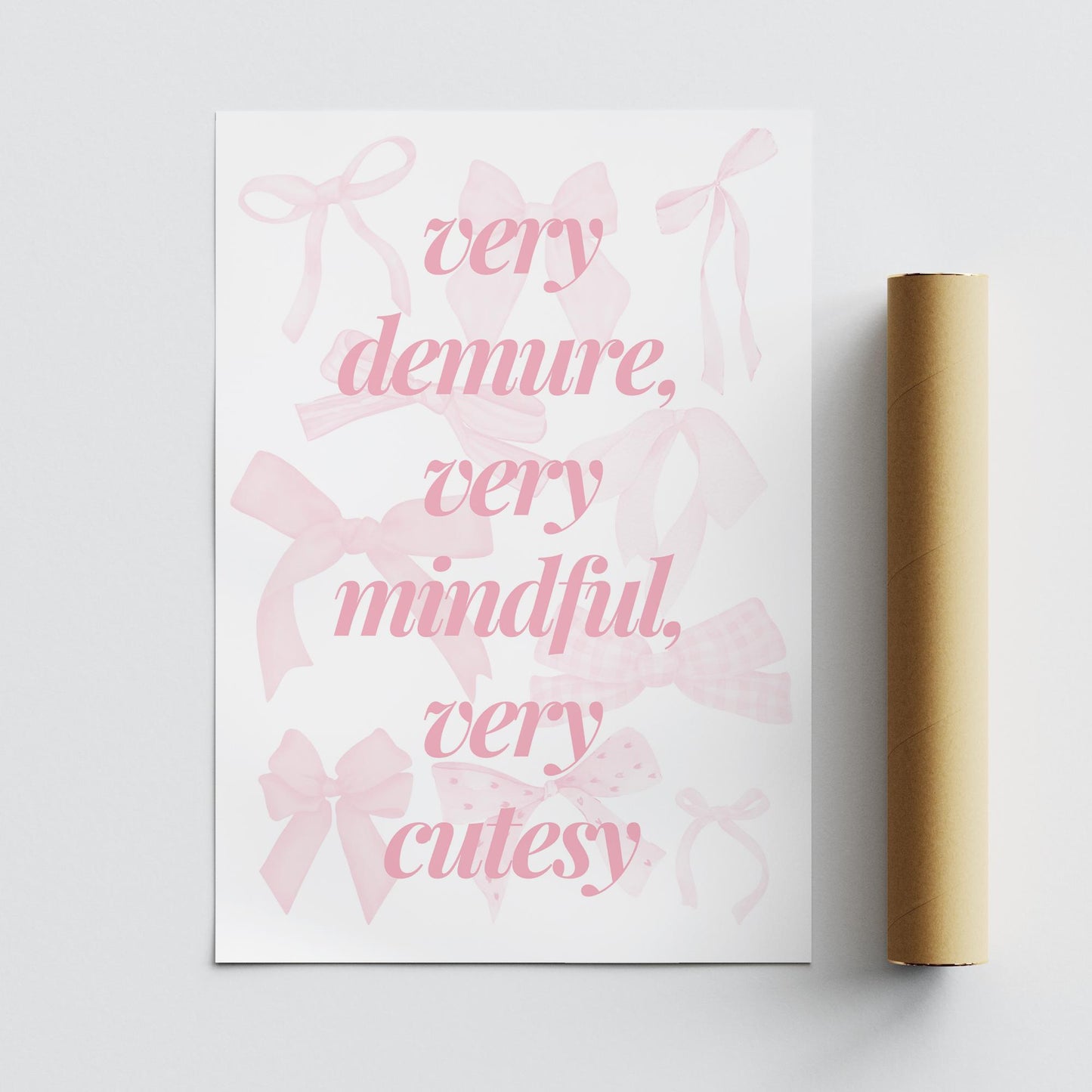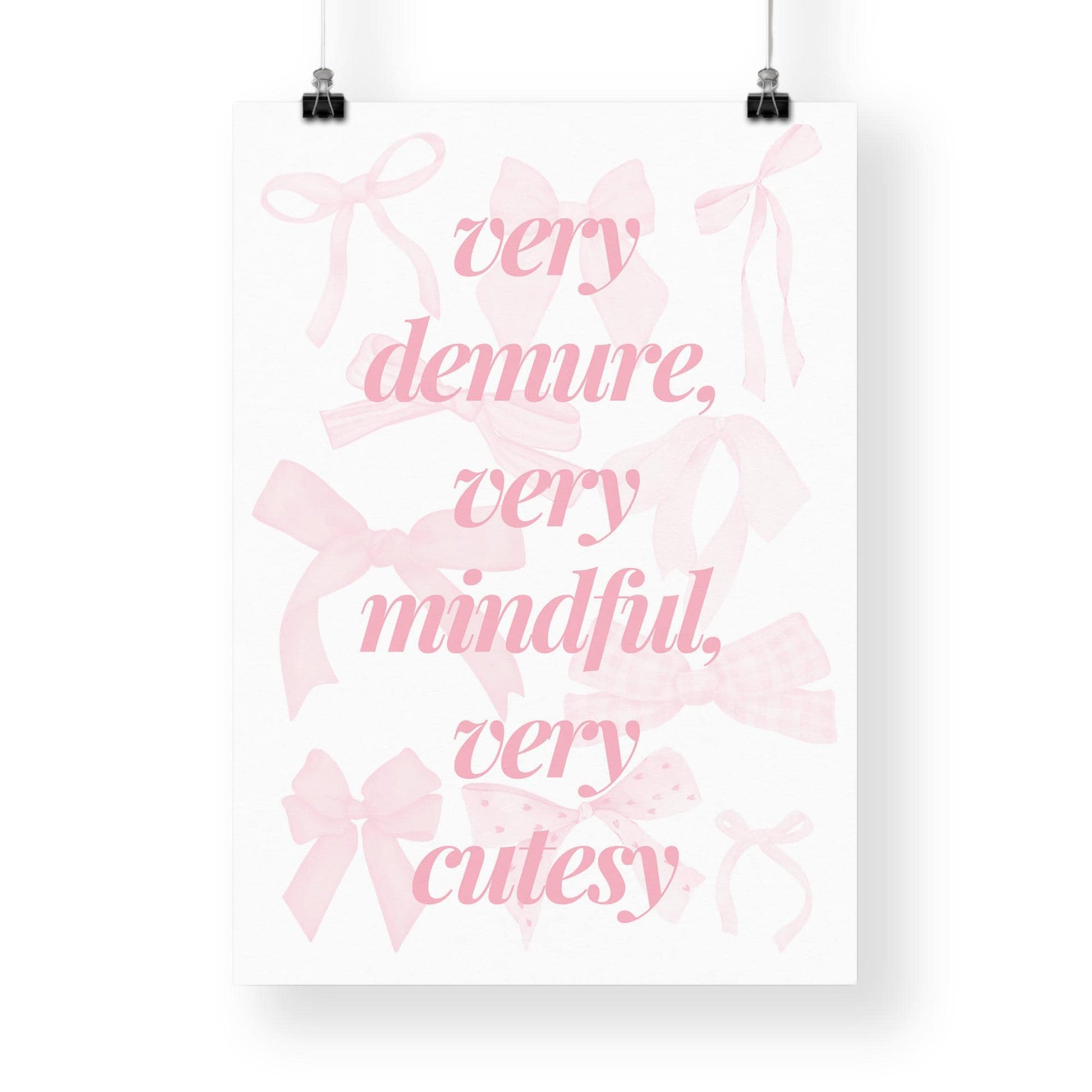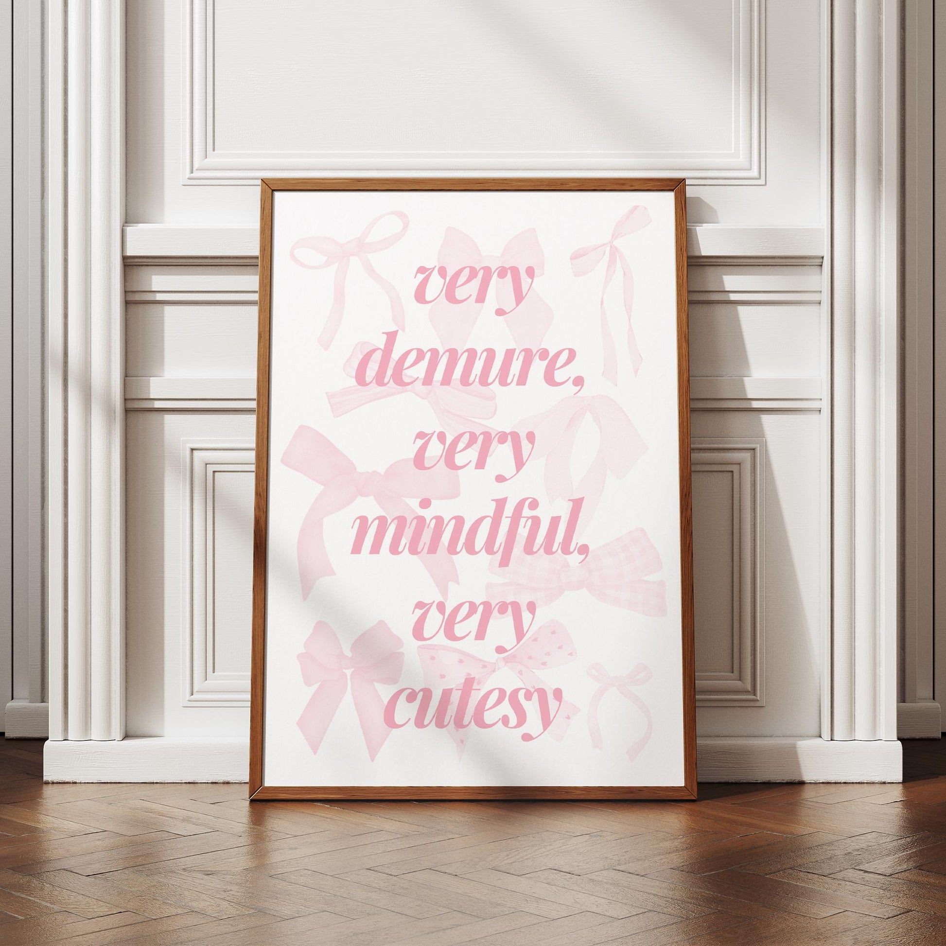 Very Demure, Very Mindful, Very Cutesy - 09 Poster: Trend Quote Print, Soft Girl Decor, Preppy Home Decor, Coquette Aesthetic, Modern Art