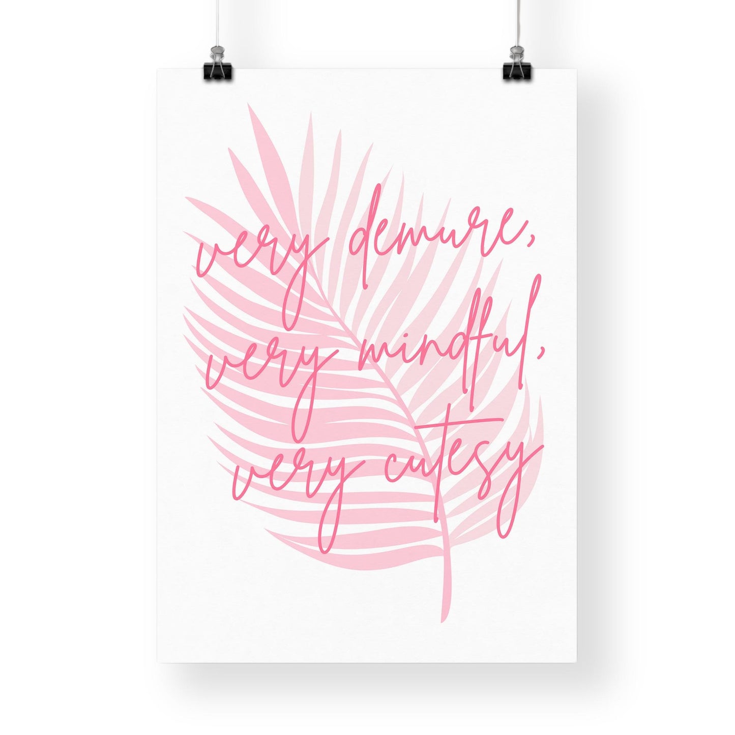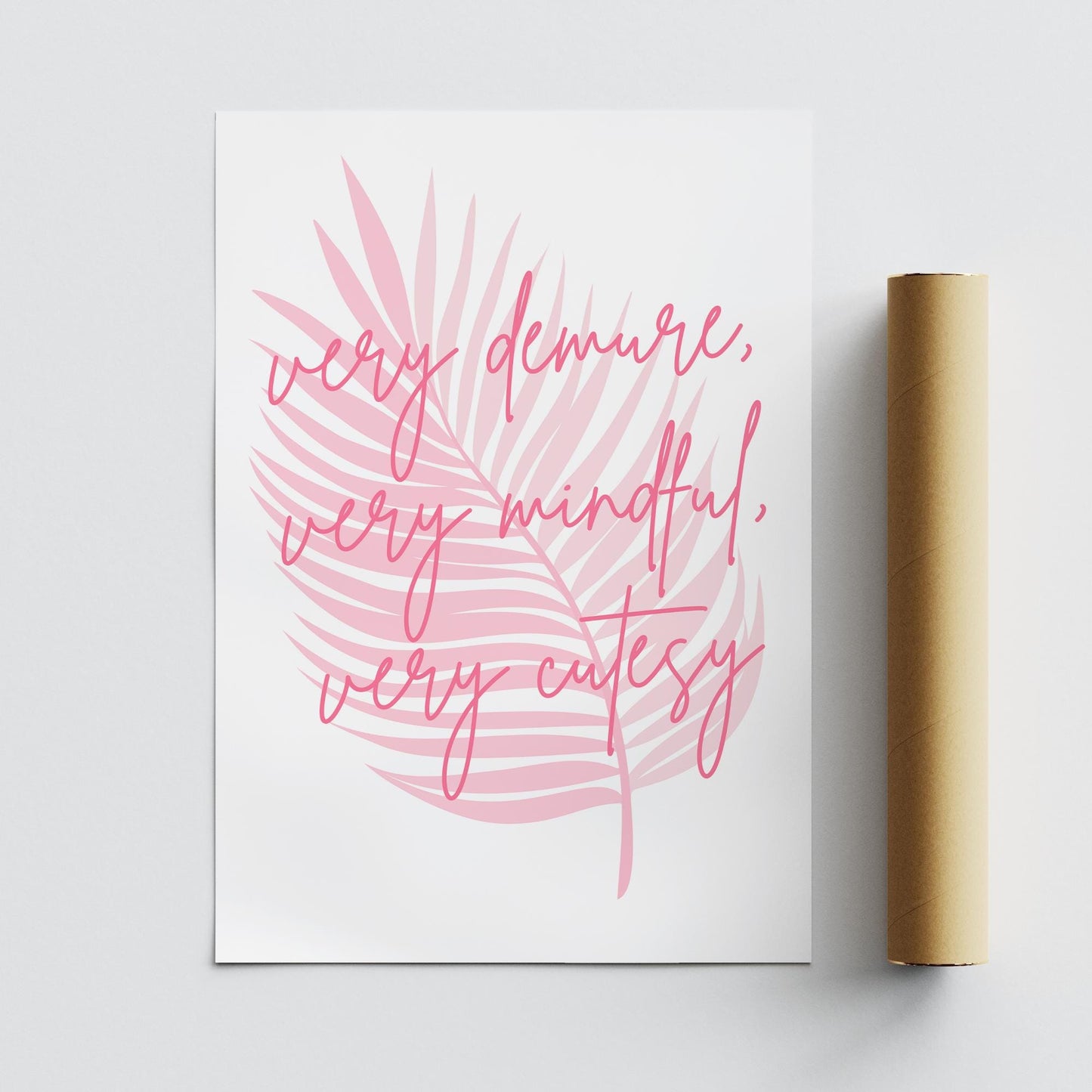 Add a touch of charm and mindfulness to your space with this beautifully designed wall art poster featuring the uplifting phrase "Very Demure, Very Mindful, Very Cutesy." Perfect for those who appreciate elegance with a playful twist, this poster blends gentle aesthetics with a meaningful message. Ideal for home offices, bedrooms, or cosy nooks, it serves as a daily reminder to stay poised, thoughtful, and endearing. Printed on high-quality, durable paper, this poster is ready to inspire and brighten any room. Perfect gift for loved ones who cherish positivity and style in their decor.