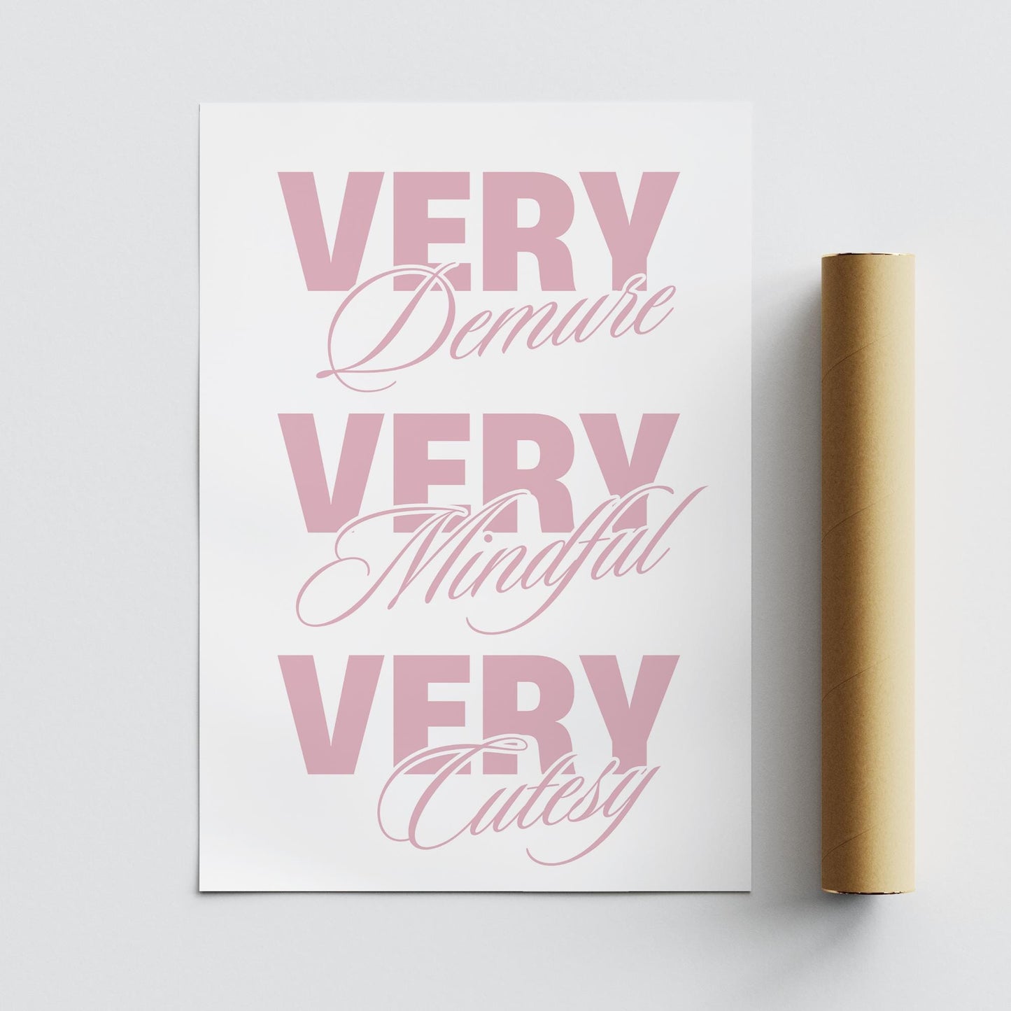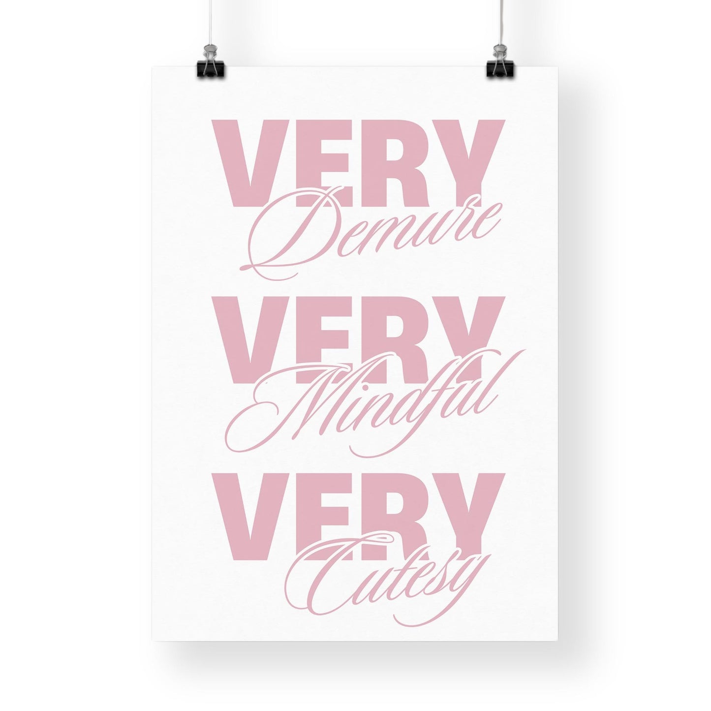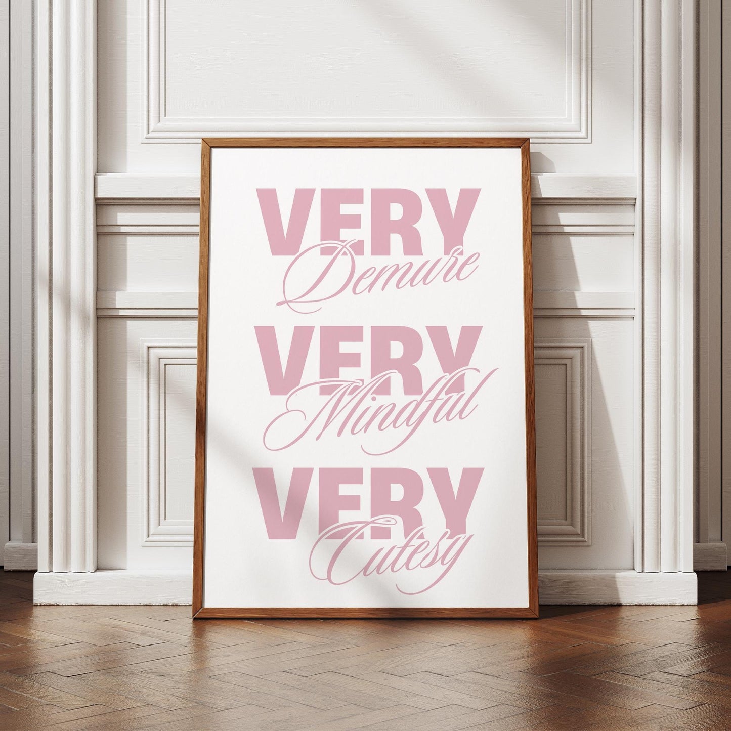 Very Demure, Very Mindful, Very Cutesy - 17 Poster: Trend Quote Print, Soft Girl Decor, Preppy Home Decor, Coquette Aesthetic, Modern Art