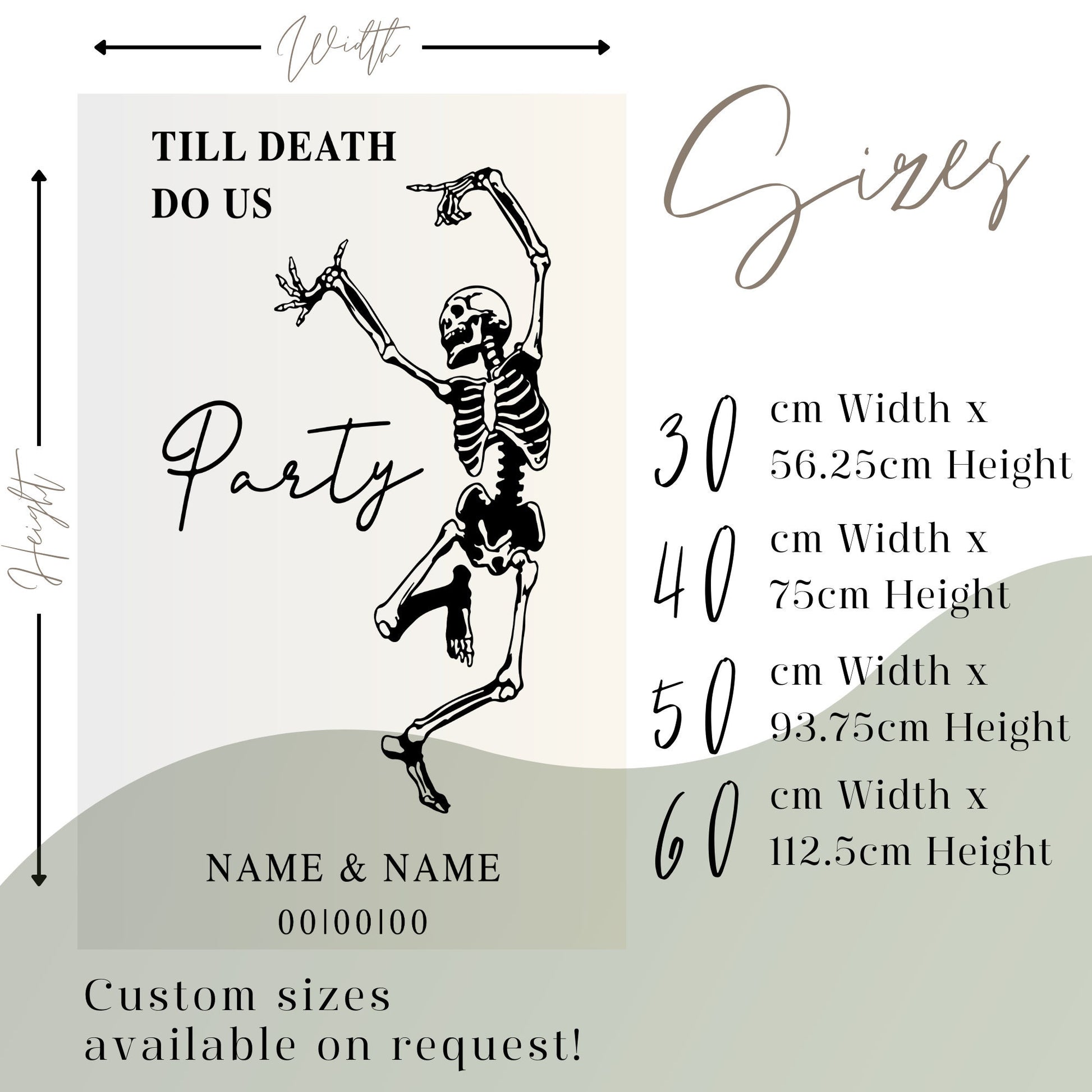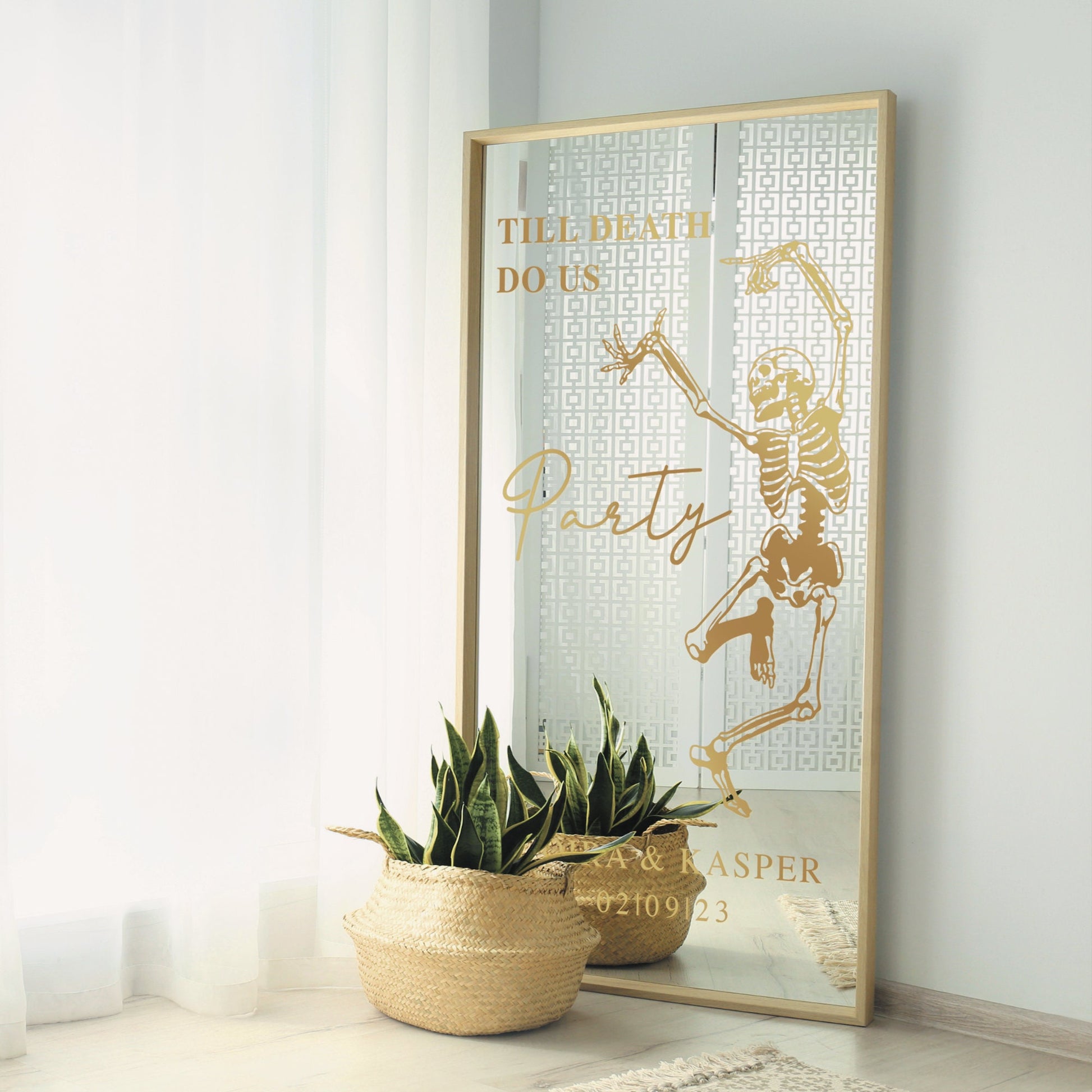 Wedding Mirror Sticker - Till Death Do Us Party Dancing Skeleton, Personalised With Name & Date DIY Wedding Decor Mirror Decal, Guest Photos