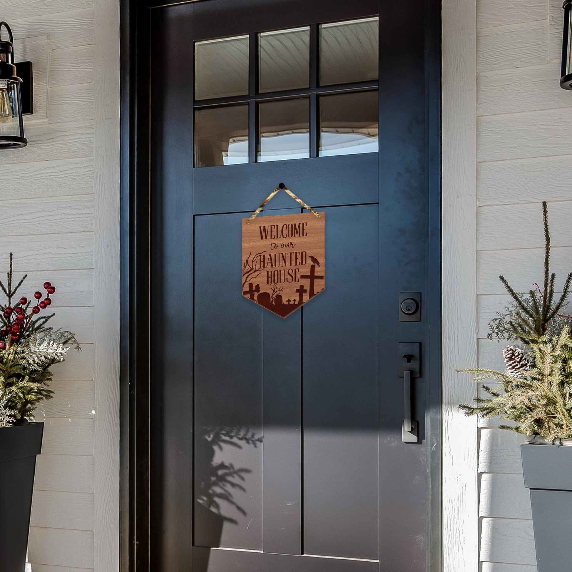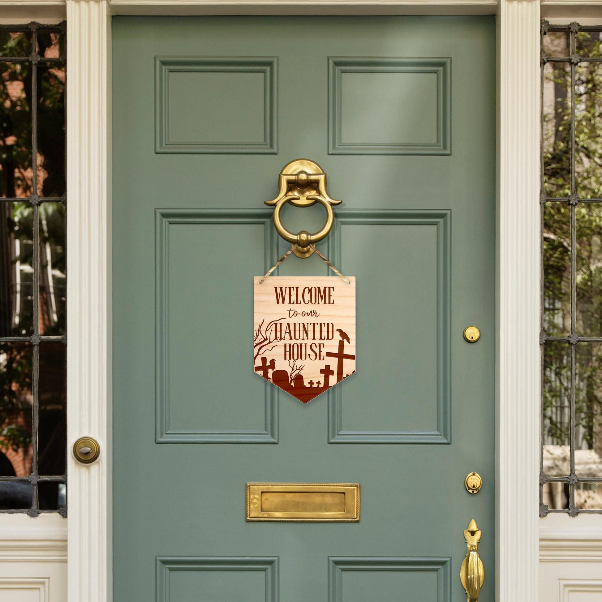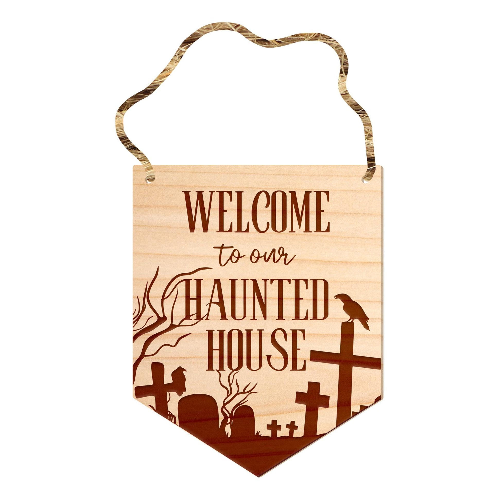 Welcome To Our Haunted House - Grave Front Door Halloween Sign, Wooden Door Plaque, Spooky Sign, Halloween Decor, Reusable Halloween Decor