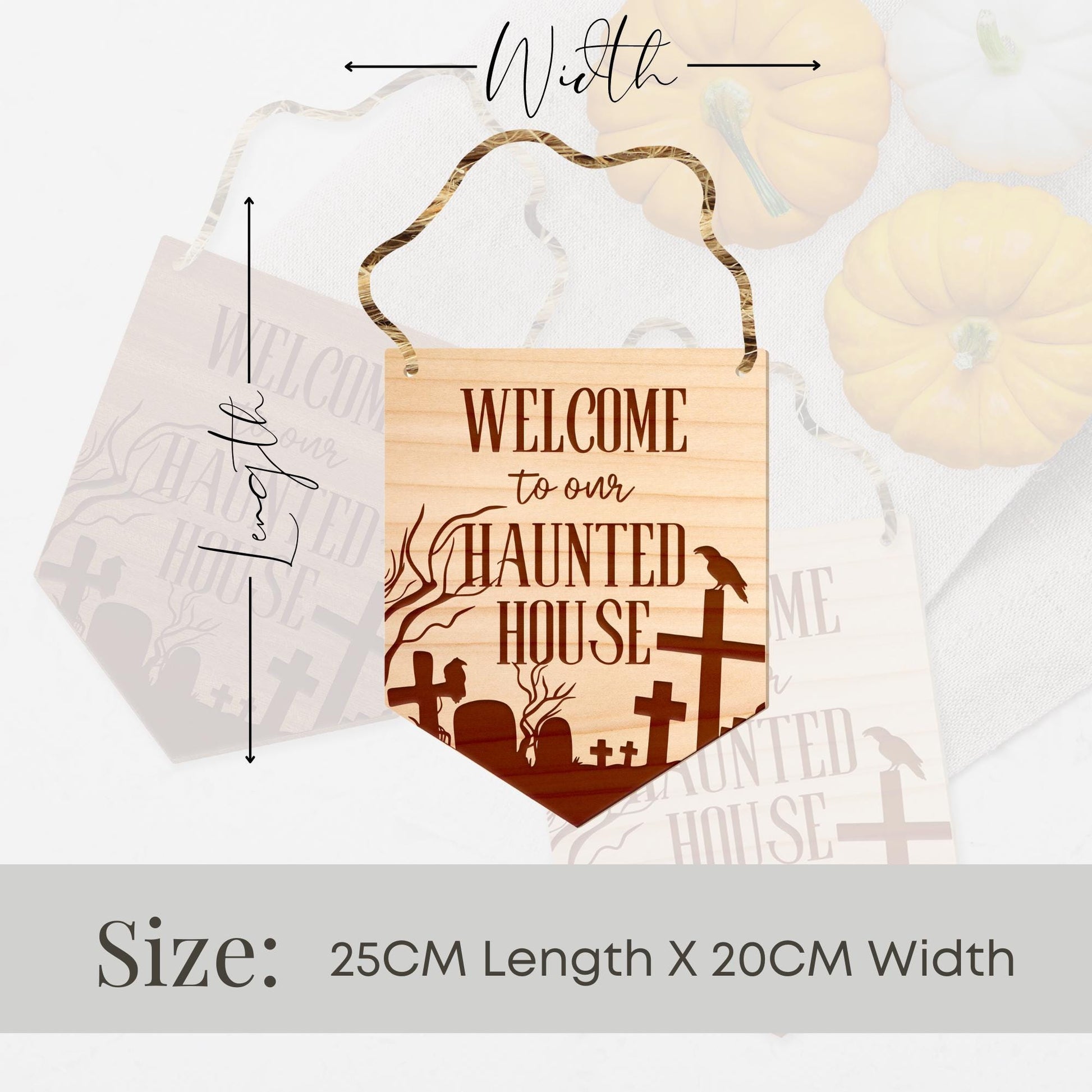 Add a spooky touch to your Halloween décor with our handcrafted wooden "Welcome to Our Haunted House" door sign! Perfect for greeting guests with a mix of charm and chills, this rustic sign is designed to set the mood for your haunted festivities.