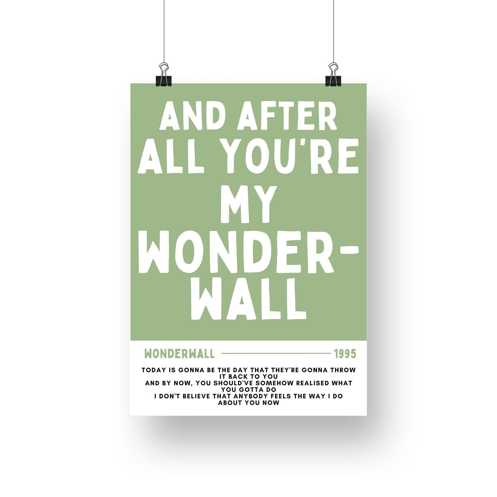 Wonderwall - 04 Music Poster: Oasis Print, Song-Inspired Print, Iconic Quote Wall Art, Britpop Home Decor, Music Lover, Typography Poster
