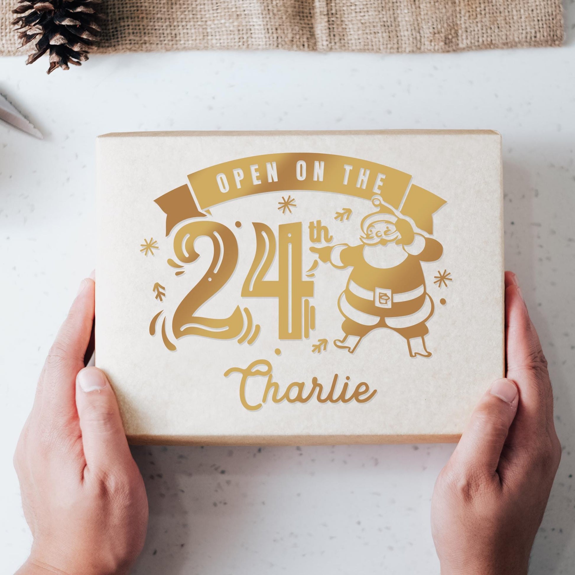 Xmas Eve Box - Open On The 24th: Personalised Christmas Eve Box Sticker, Custom Name Gift Box Decal, Christmas Eve Gift Idea, Gift Box Label
