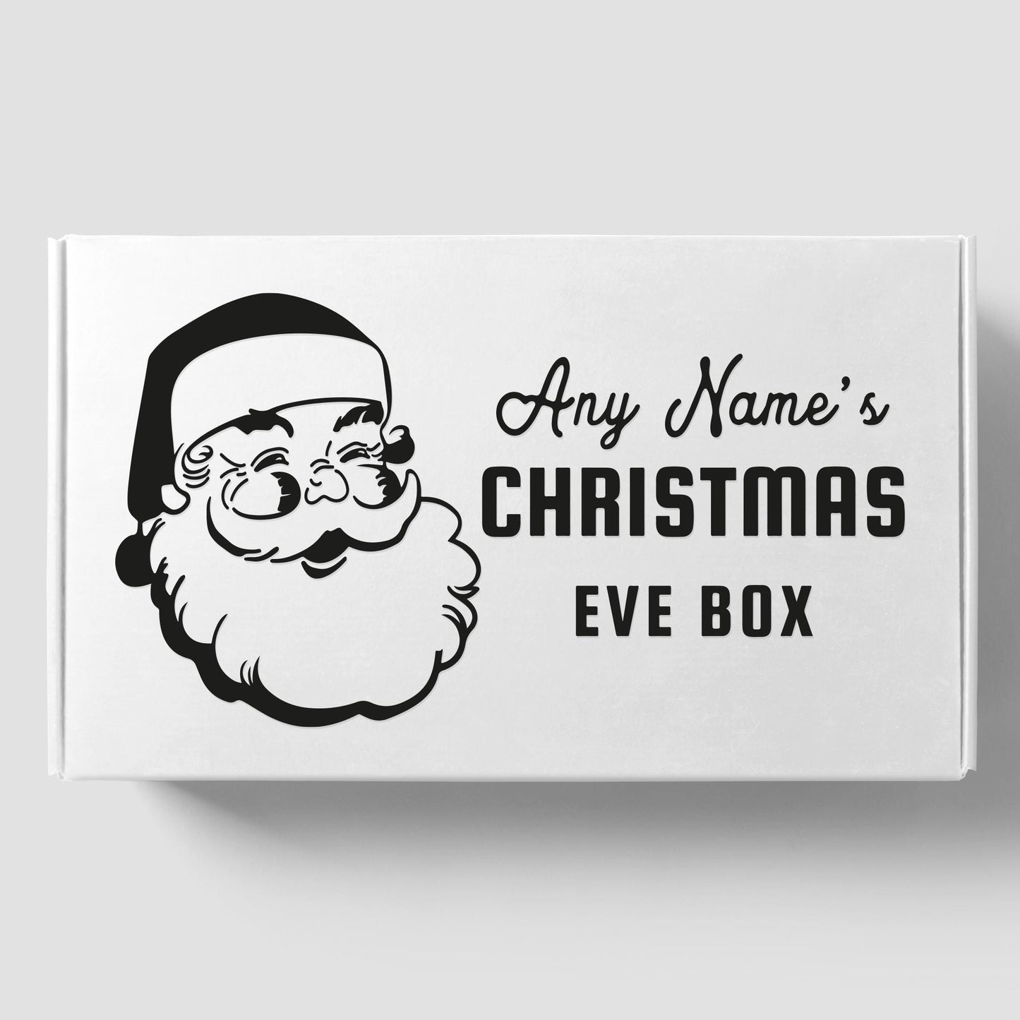 Xmas Eve Box - Retro Santa: Personalised Christmas Eve Box Sticker, Custom Name Gift Box Decal, Christmas Eve Gift Idea, Xmas Gift Box Label