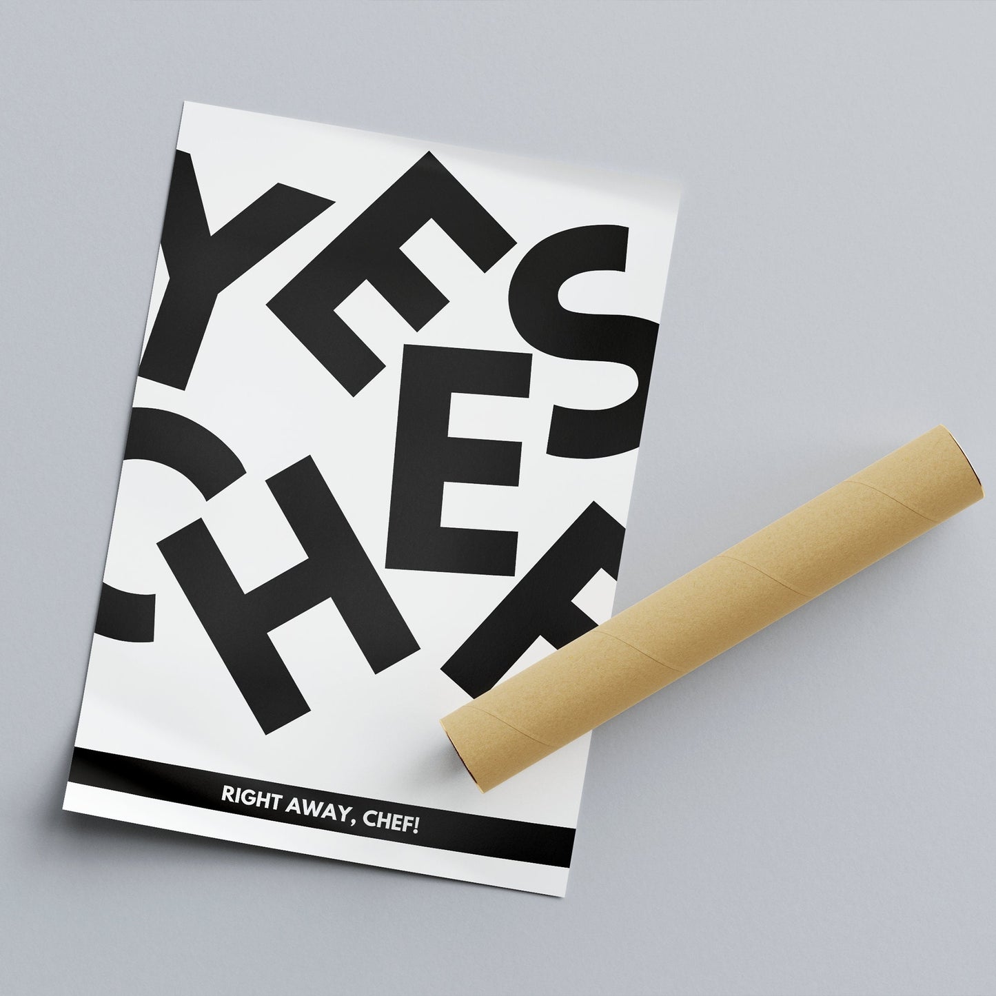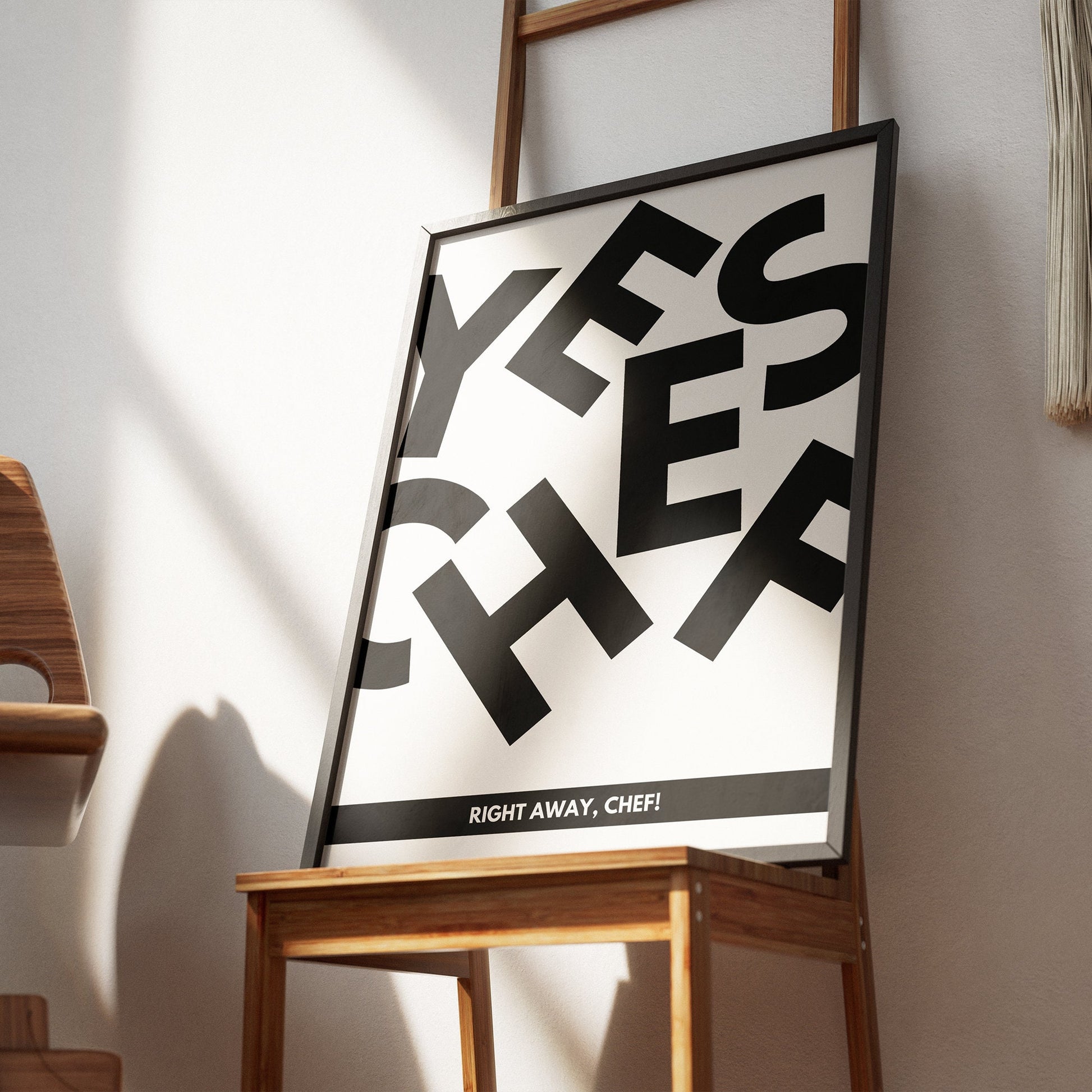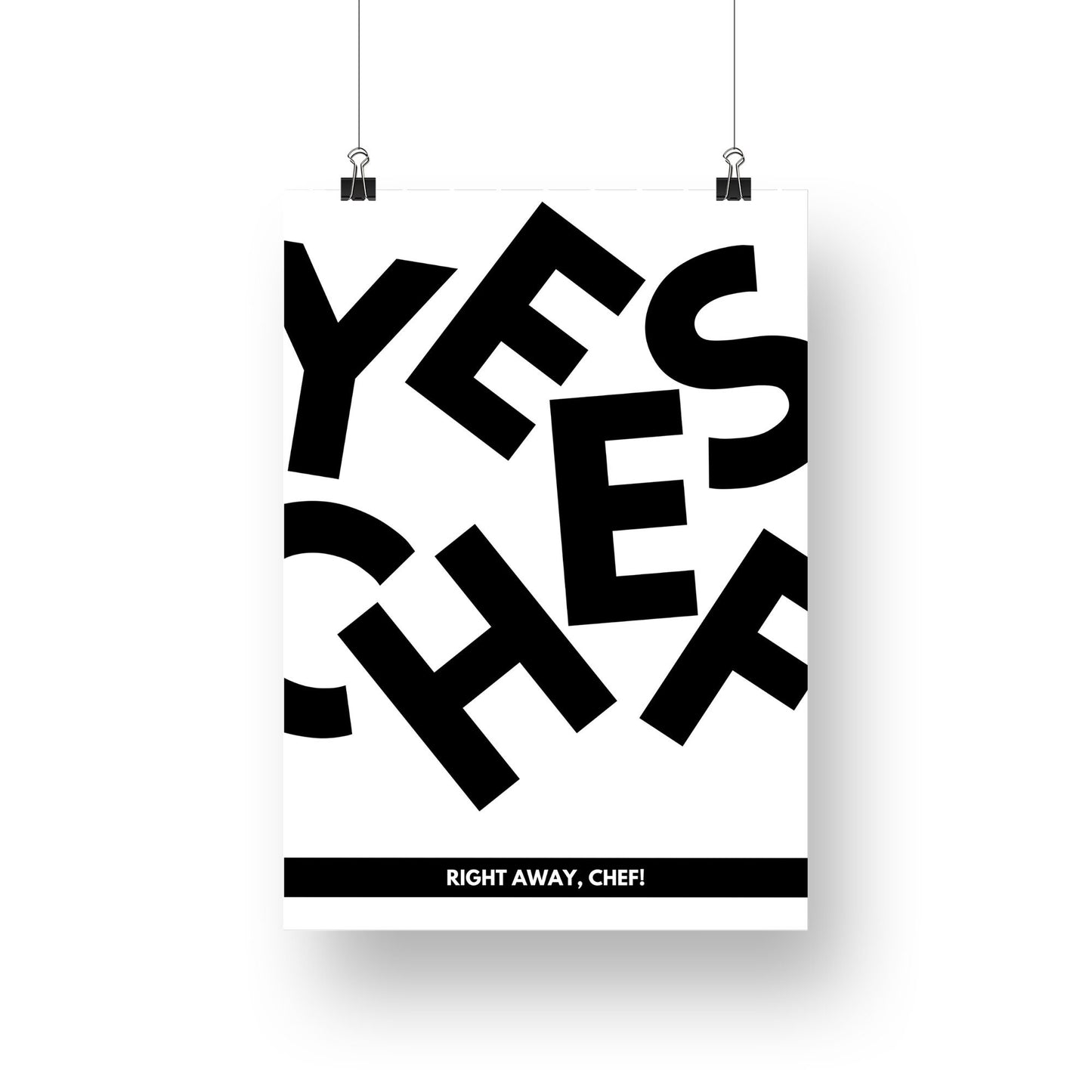 Yes Chef, Abstract Text Kitchen Poster,Kitchen Print, Unique Home Decor, Wall Art, High-Quality Print, Chef Quote Poster, Fun Kitchen Prints